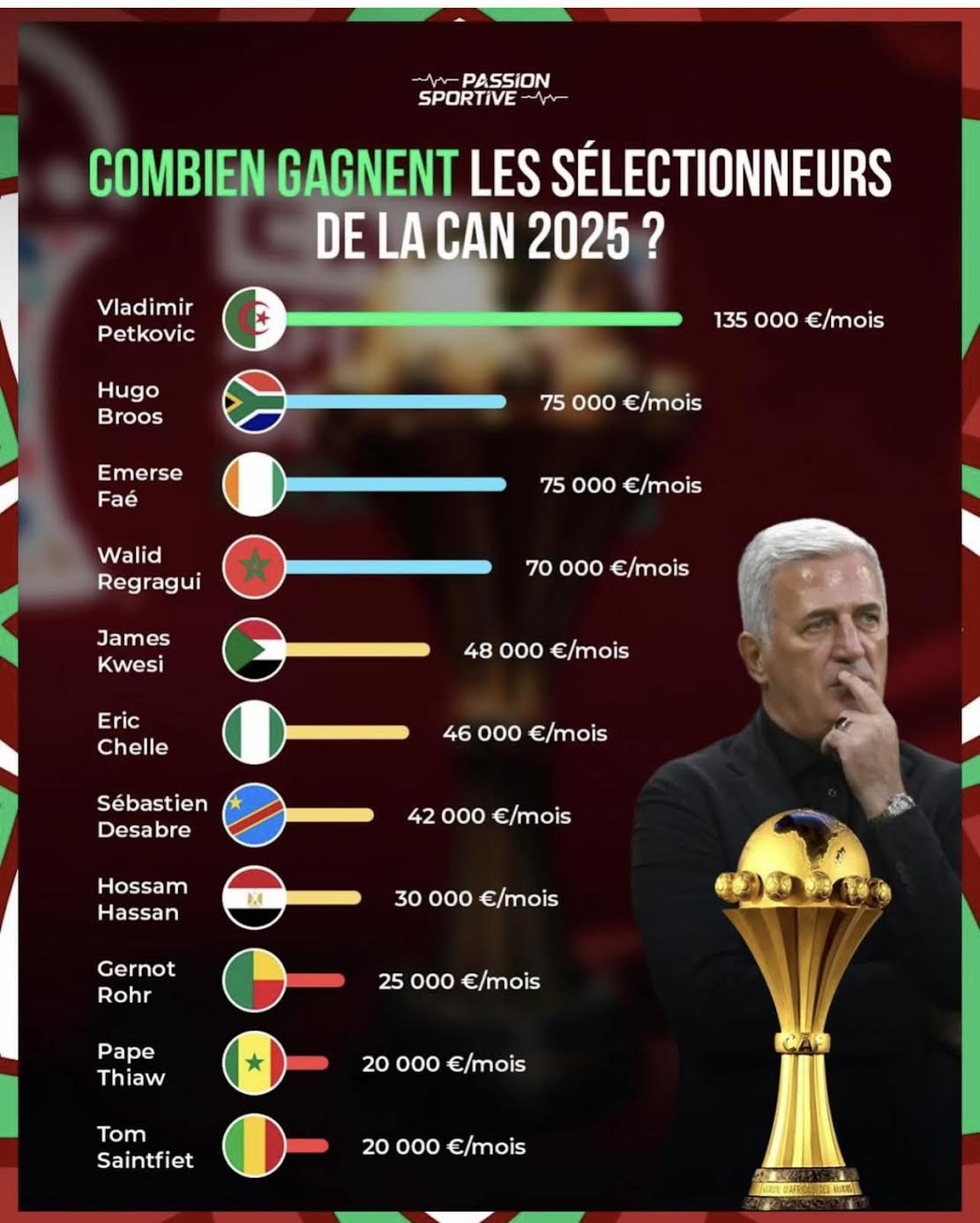Last but not least, les coachs 1/2 finalistes de la CAN 2025 sont dans le Top 11 des techniciens parmi les 24 en lice au début de la compétition.