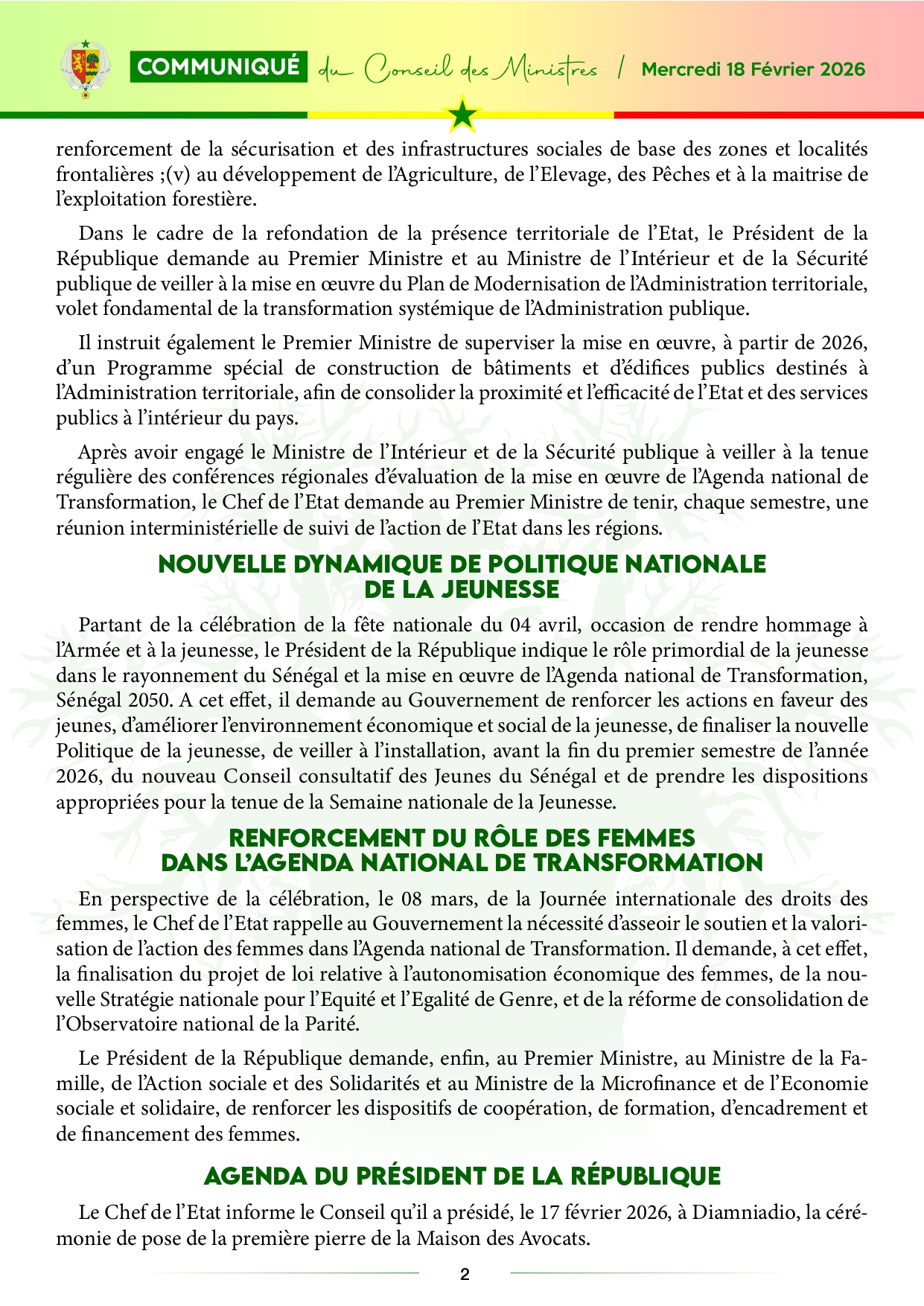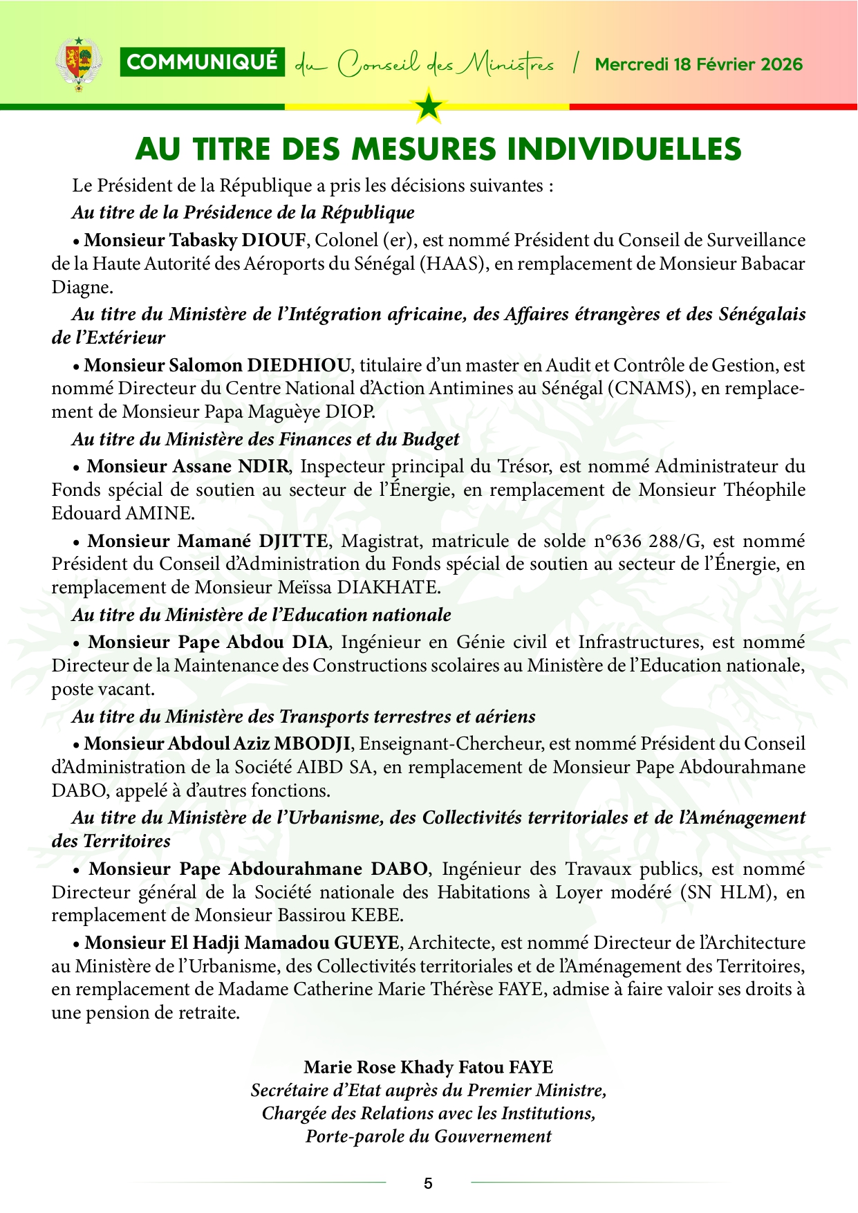 Plusieurs nominations au Conseil des ministres, ce mercredi 18 février