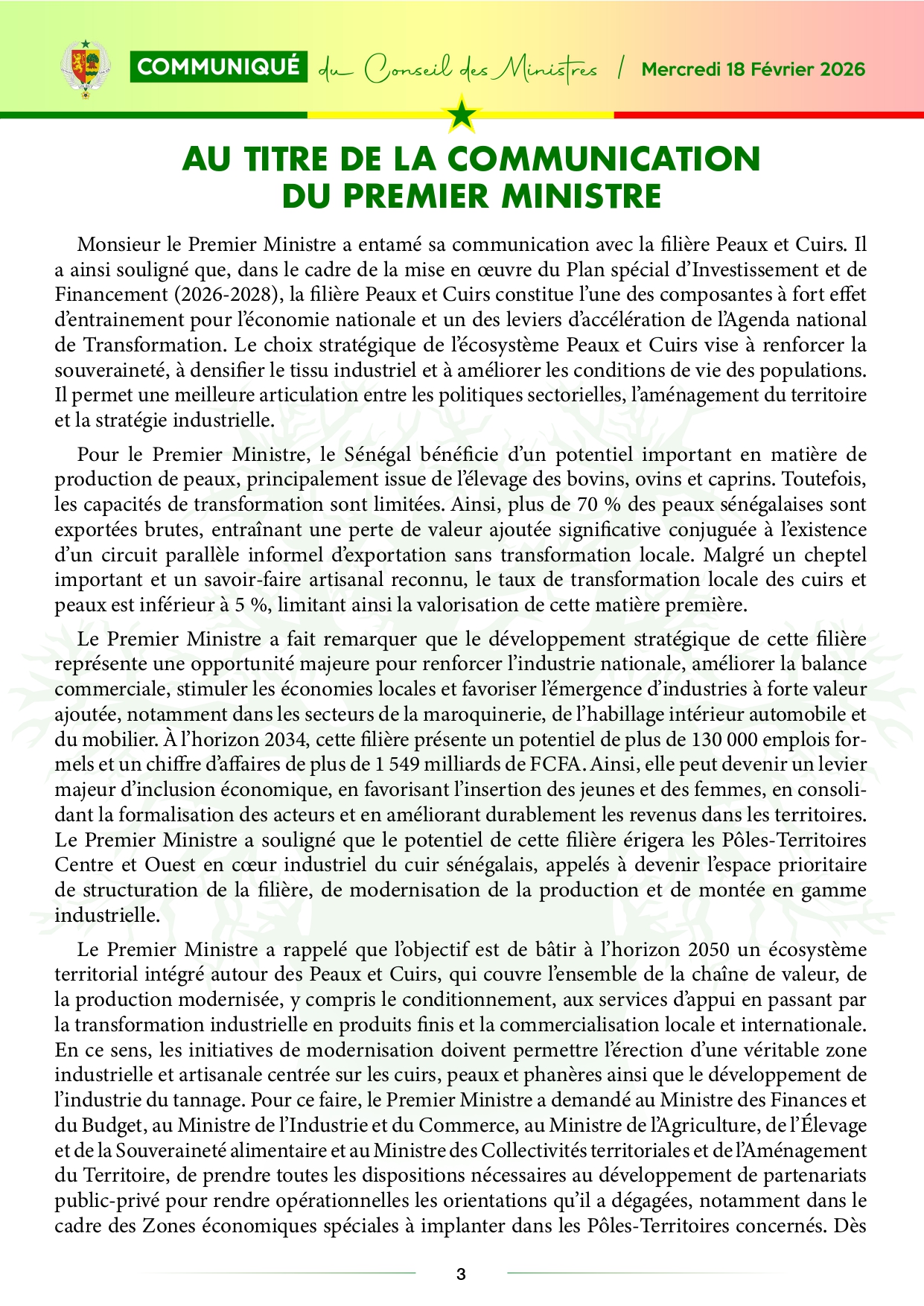 Conseil des ministres : la réunion hebdomadaire du gouvernement s’est tenue sous la conduite du Président de la République, Son Excellence Bassirou Diomaye Faye.