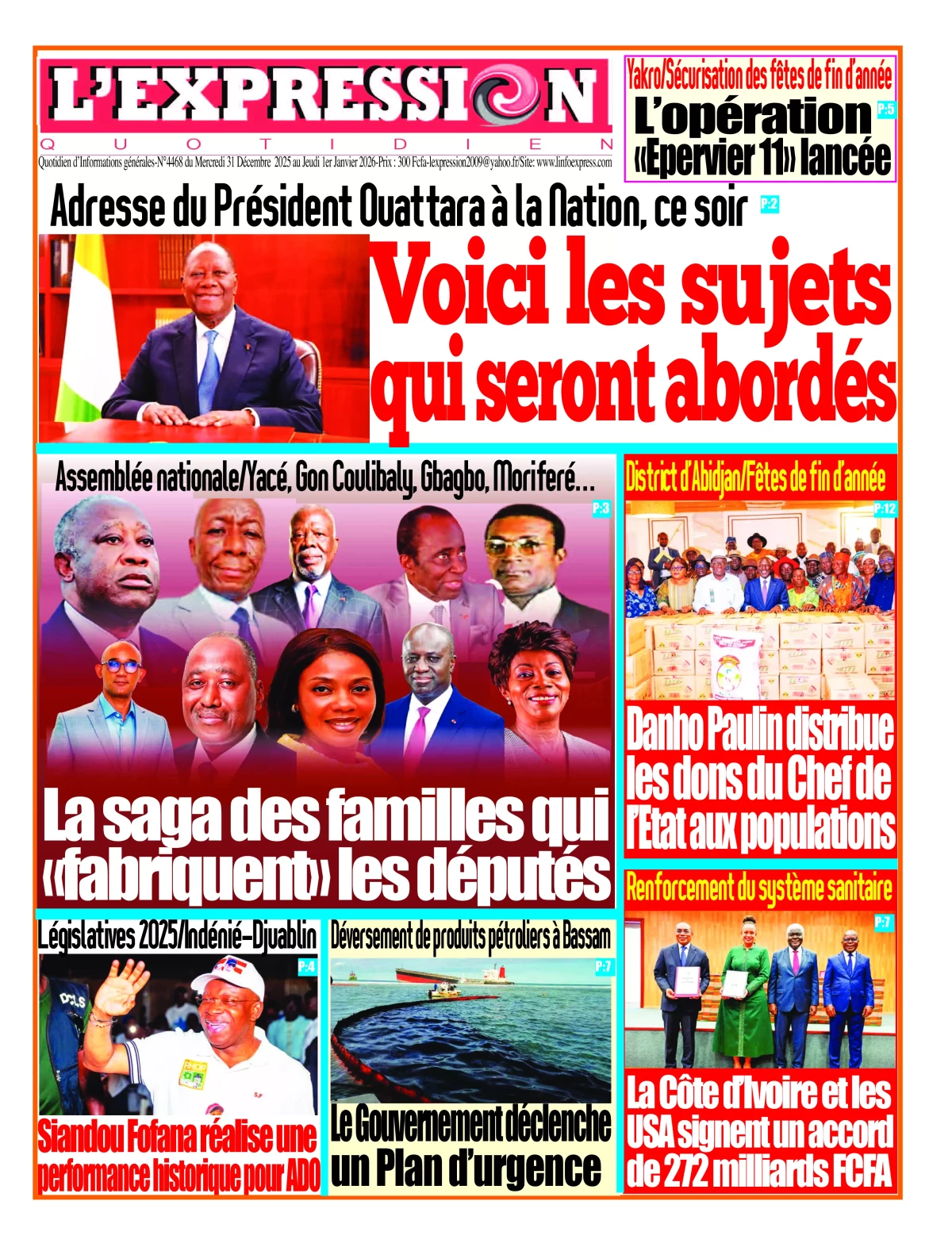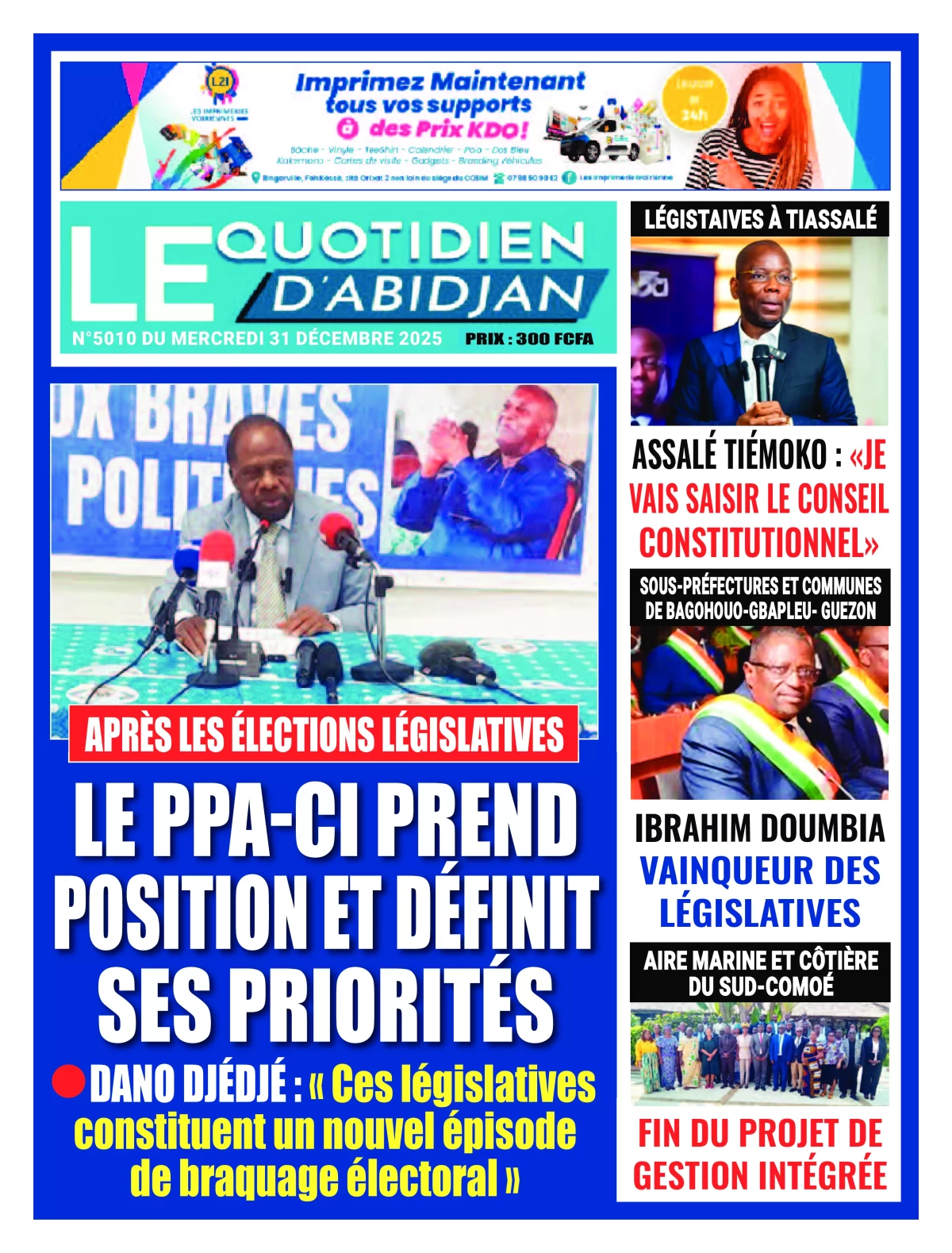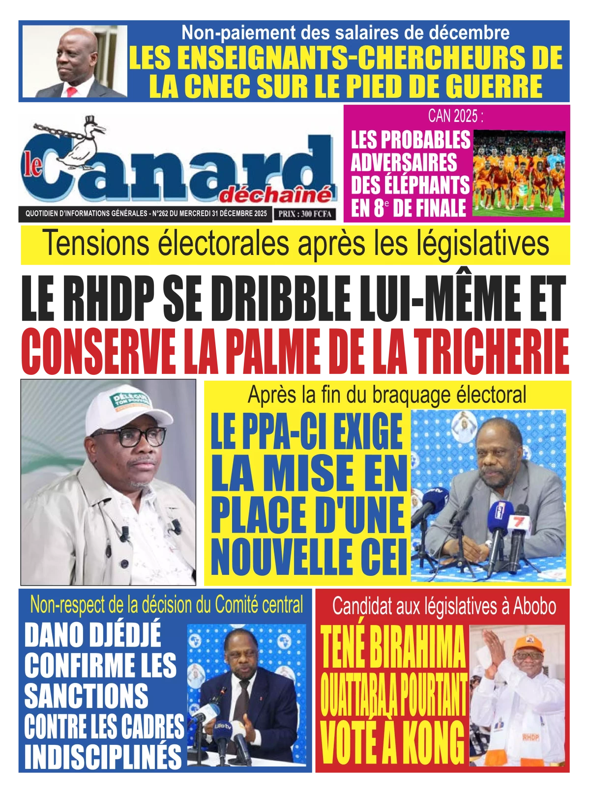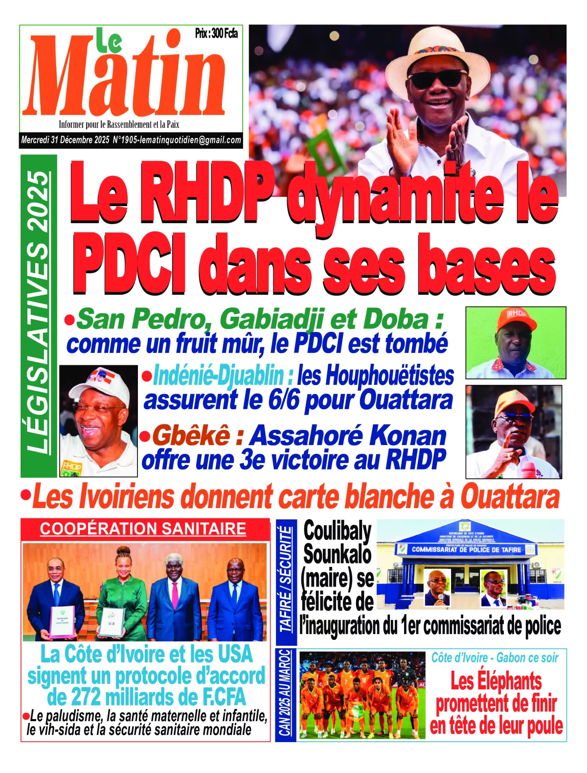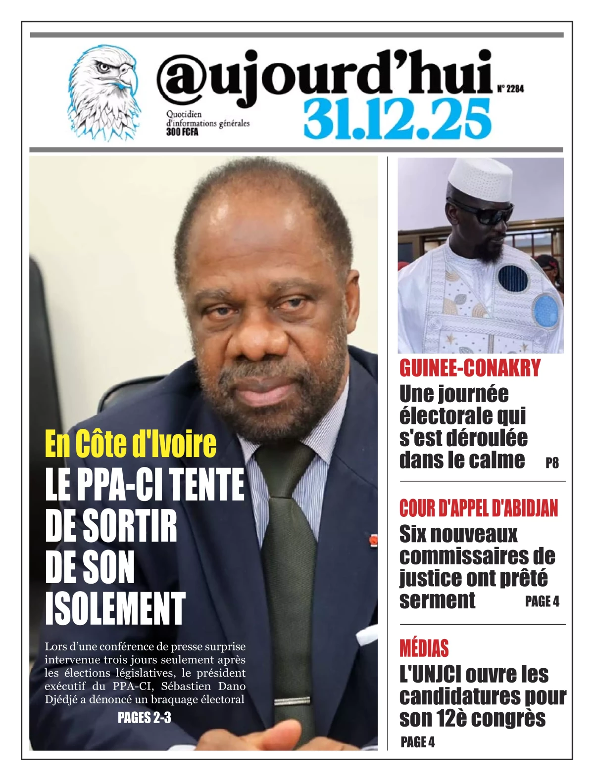 Côte d’Ivoire : les journaux du mercredi 31 décembre 2025 restent dominés par les résultats des élections législatives remportées par le RHDP du Président Alassane Ouattara. Le discours de fin d’année de ce dernier est aussi l’objet de beaucoup d’intérêt.