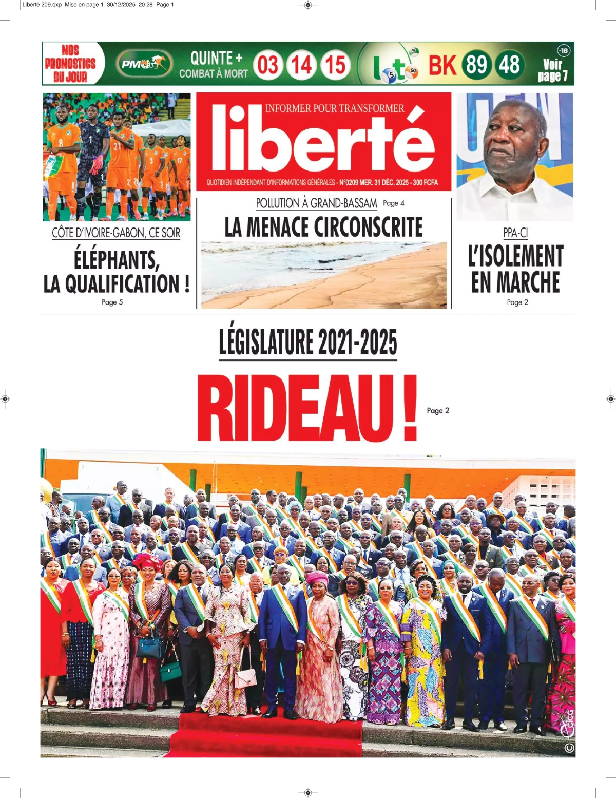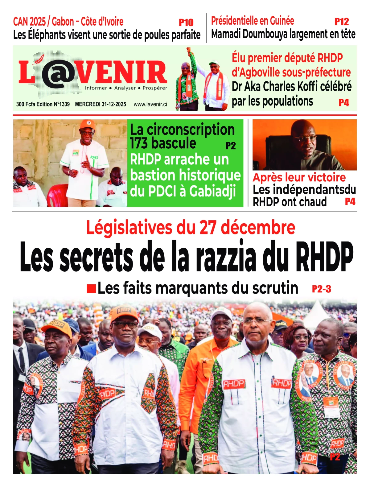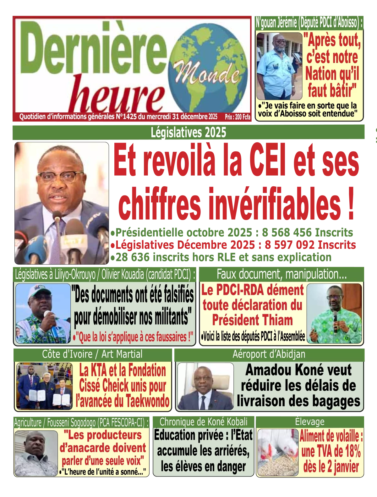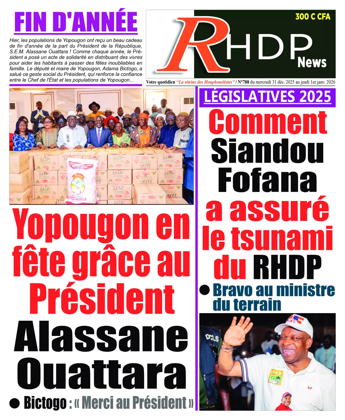 Côte d’Ivoire : les journaux du mercredi 31 décembre 2025 restent dominés par les résultats des élections législatives remportées par le RHDP du Président Alassane Ouattara. Le discours de fin d’année de ce dernier est aussi l’objet de beaucoup d’intérêt.