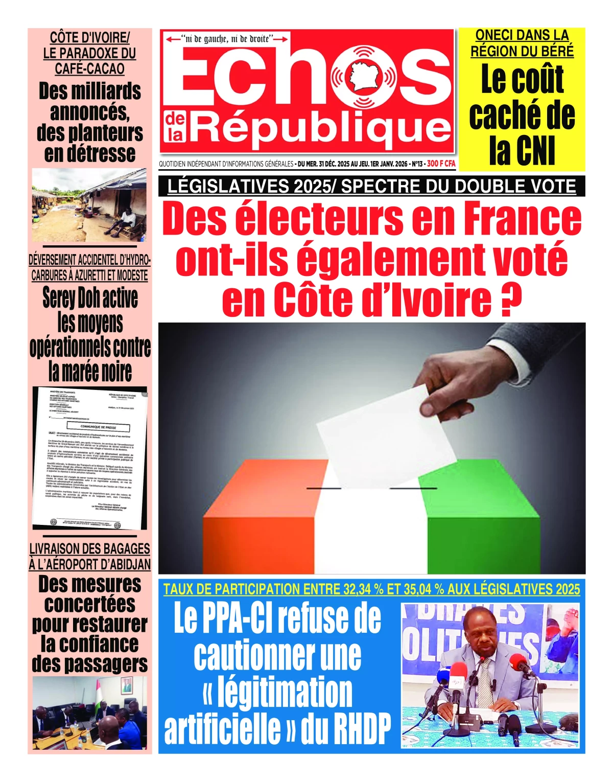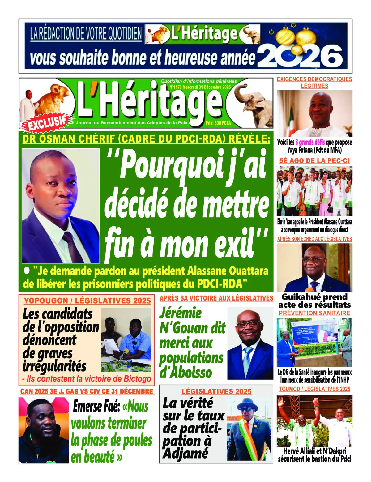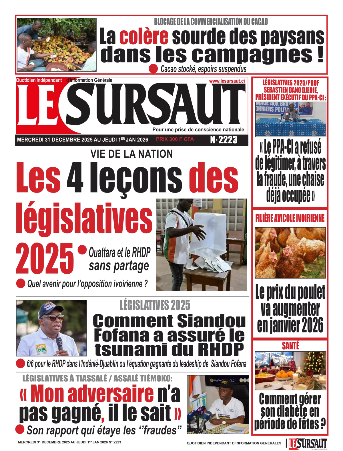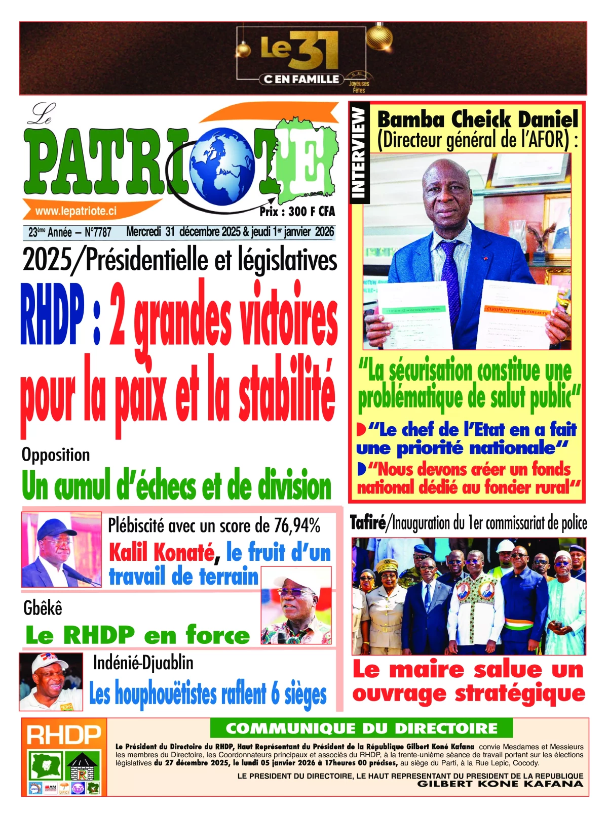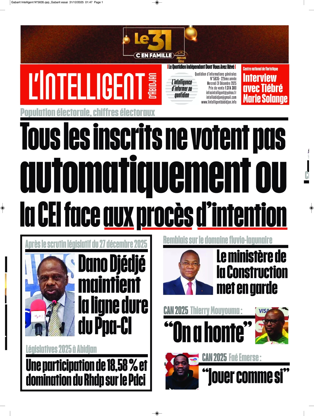 Côte d’Ivoire : les journaux du mercredi 31 décembre 2025 restent dominés par les résultats des élections législatives remportées par le RHDP du Président Alassane Ouattara. Le discours de fin d’année de ce dernier est aussi l’objet de beaucoup d’intérêt.