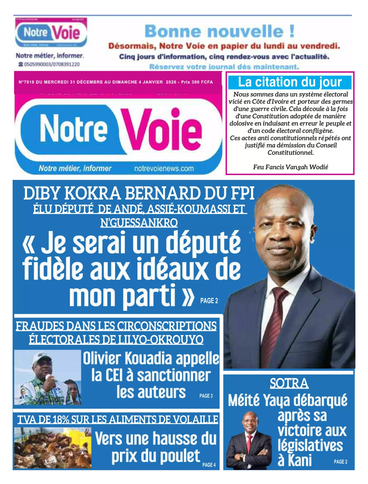 Côte d'Ivoire : Les journaux du mercredi 31 décembre 2025