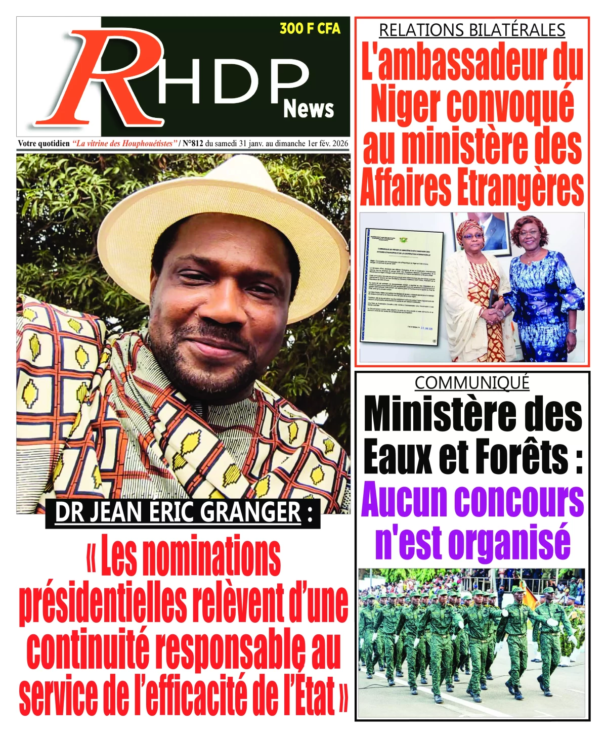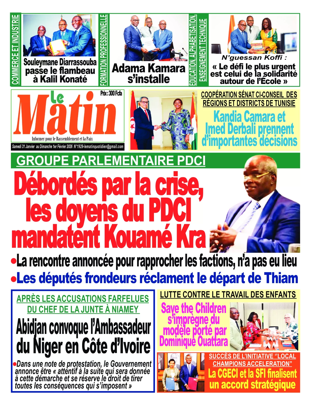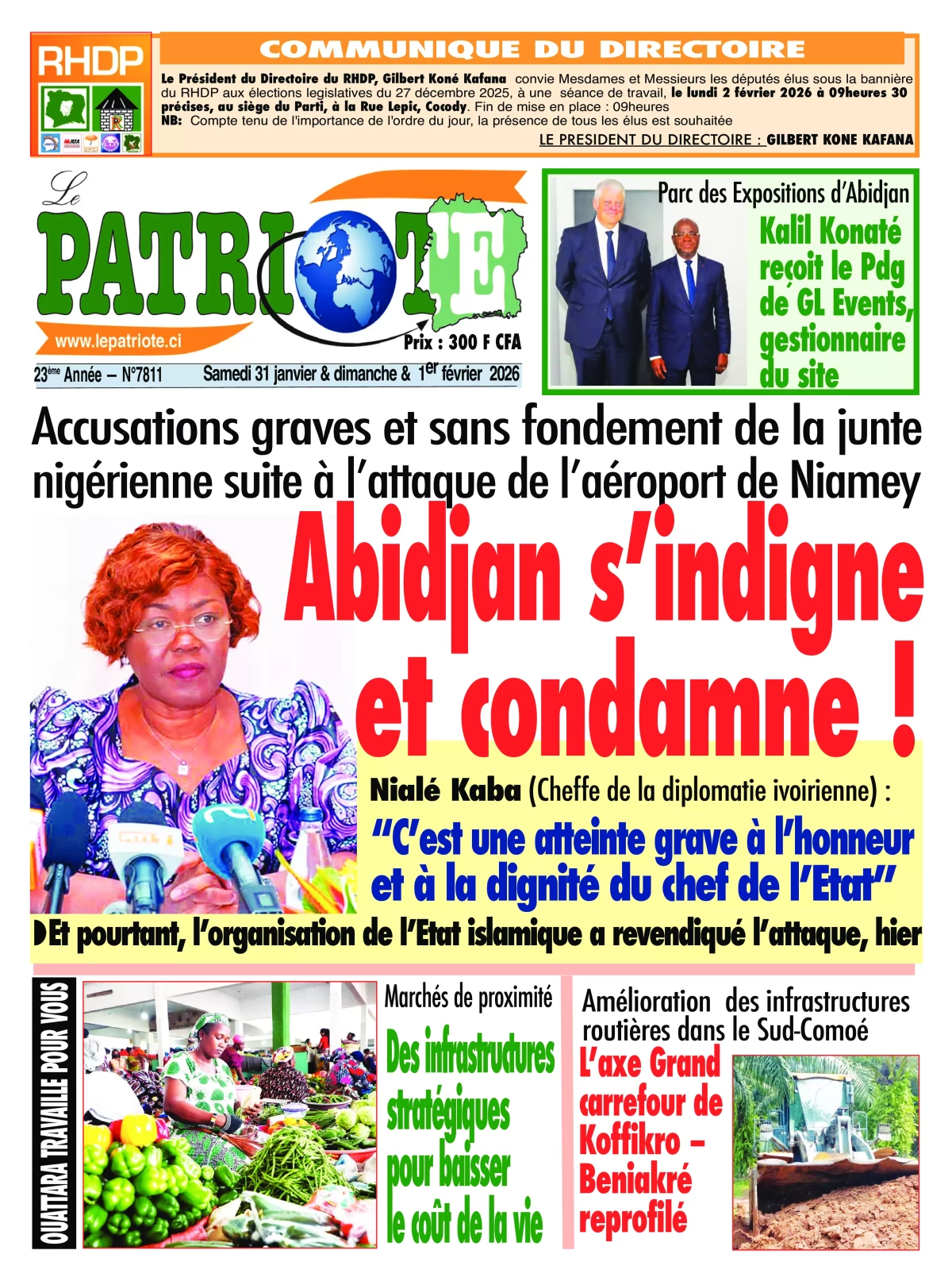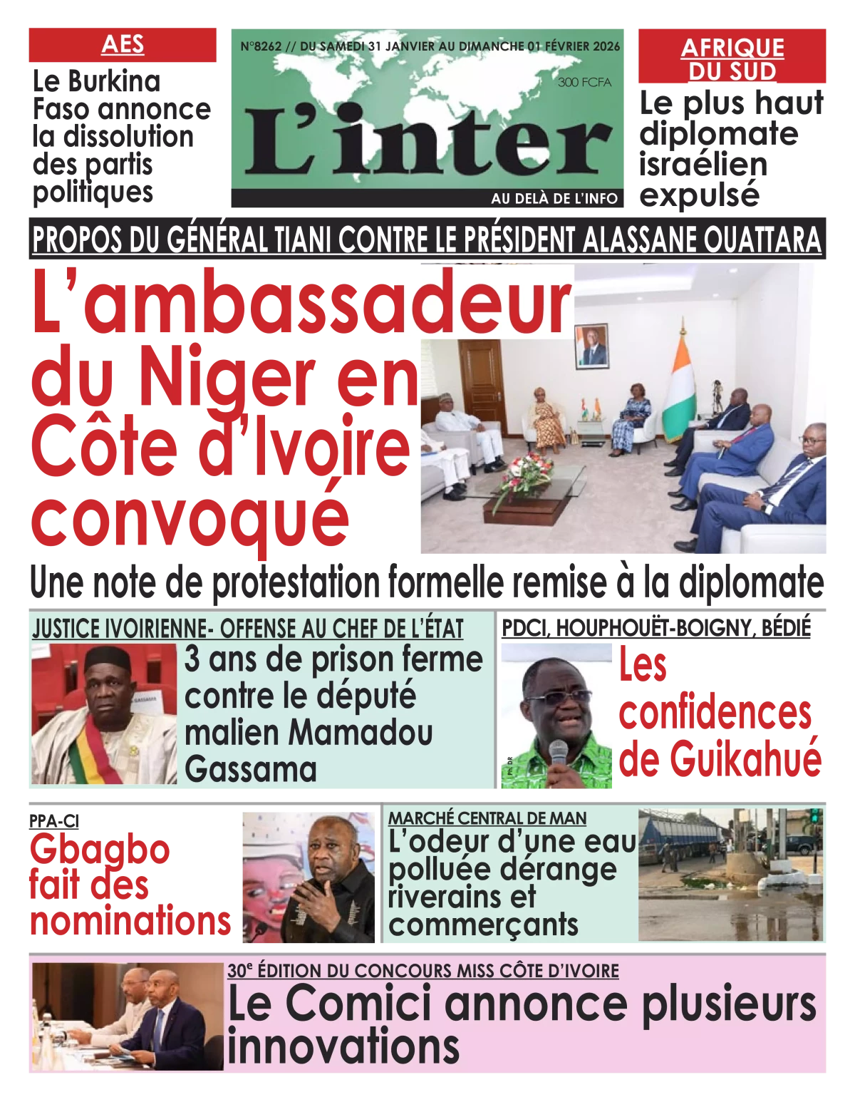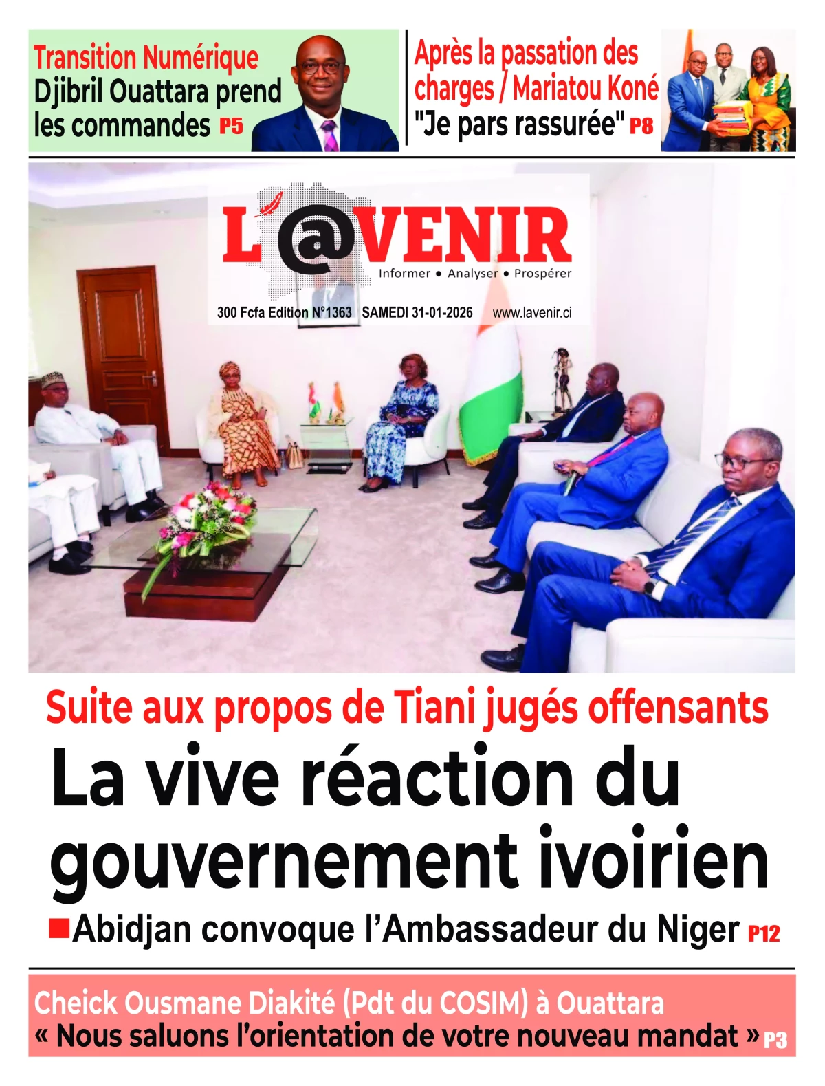 Côte d’Ivoire : les journaux du samedi 31 janvier mettent notamment en exergue la protestation d’Abidjan en convoquant l’Ambassadeur du Niger, suite aux accusations du Président Tiani sur l’attaque de l’aéroport de Niamey.