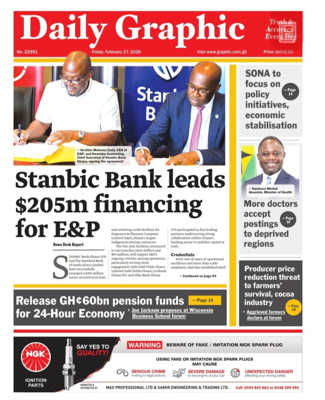 Ghana Newspapers Frontpages-Friday, 27 February, 2026