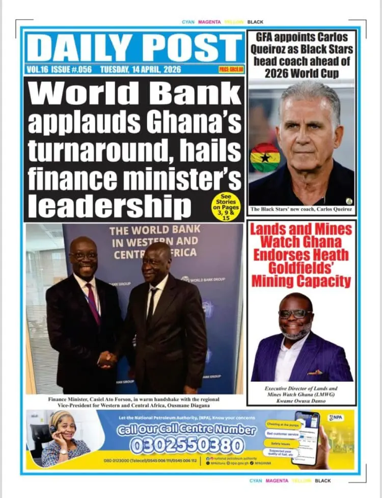Ghana Newspapers Frontpages-Tuesday, 14 April, 2026 Read GhanaNews