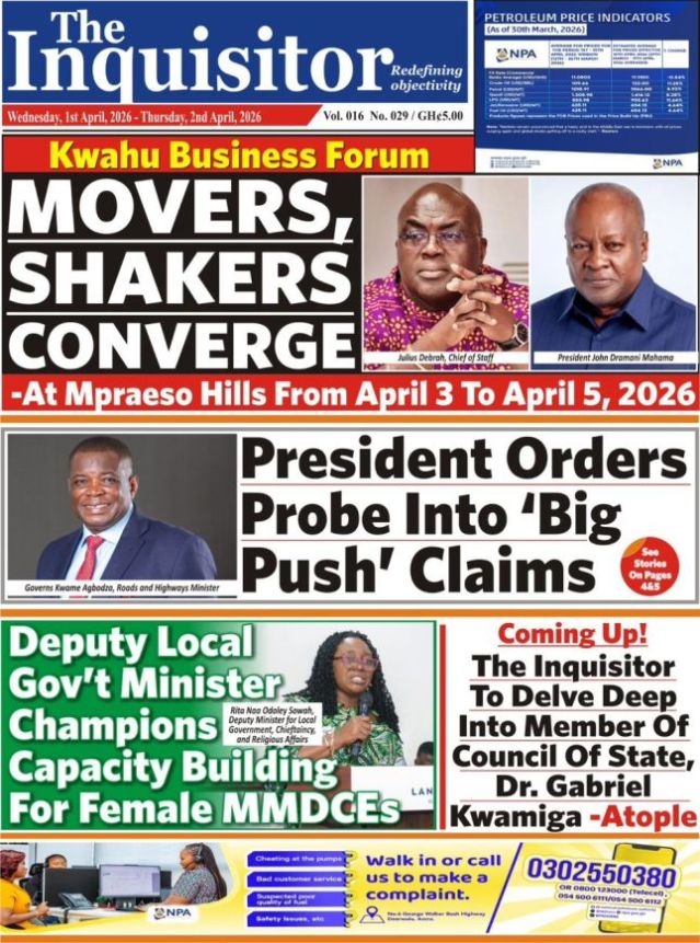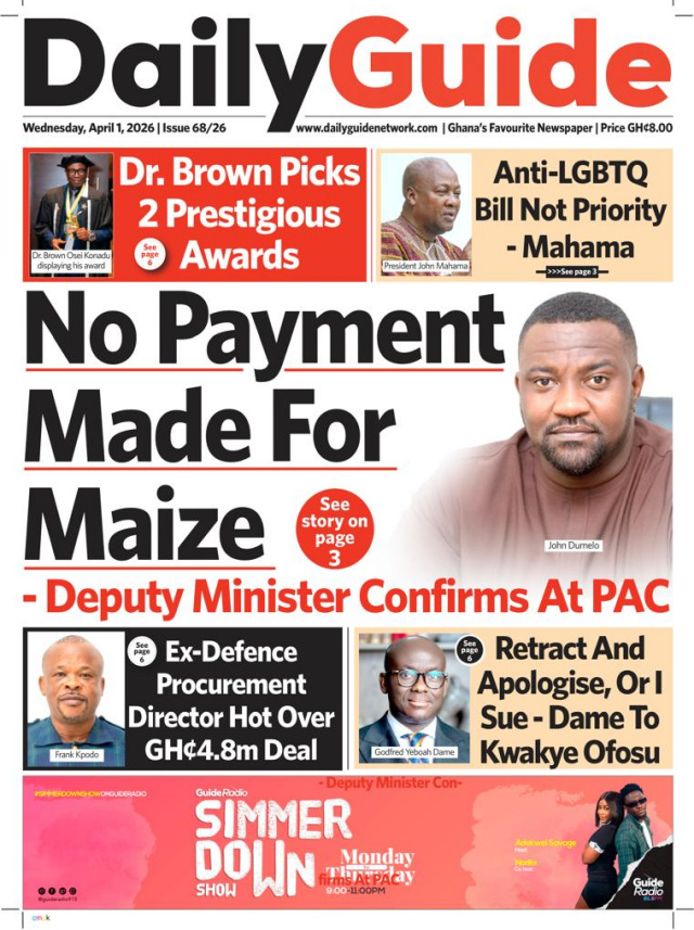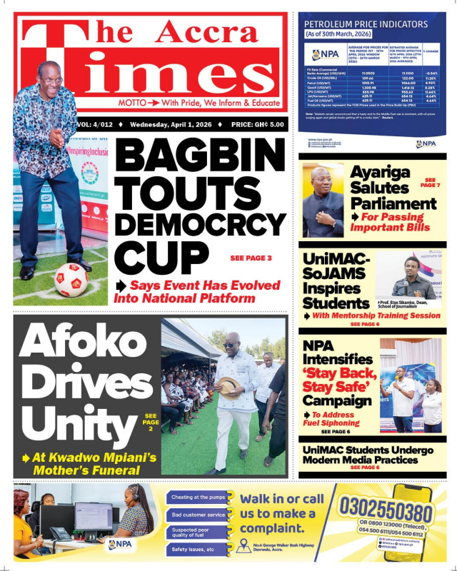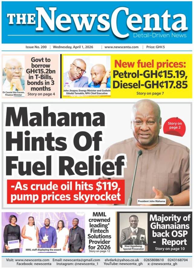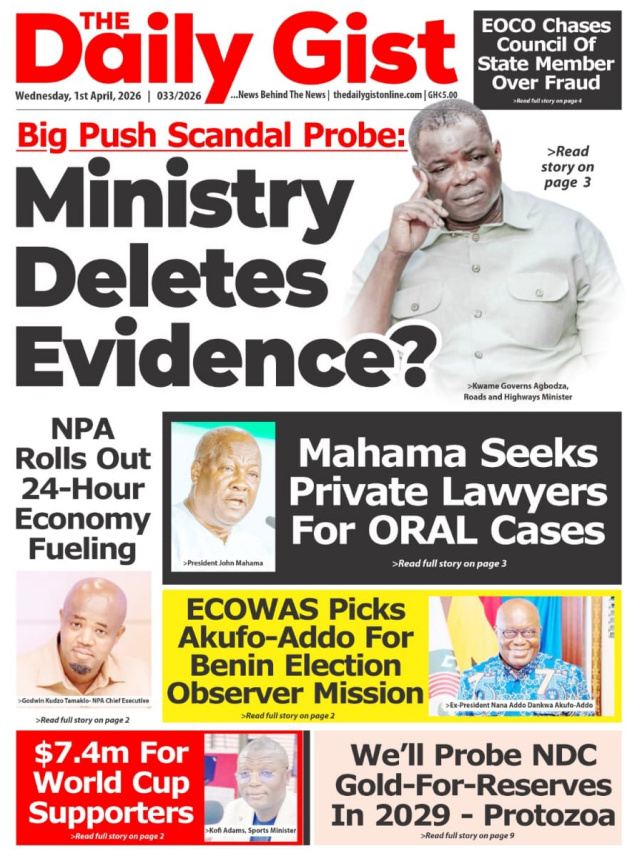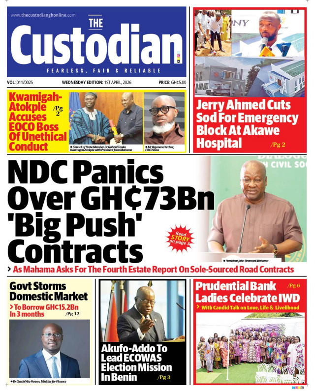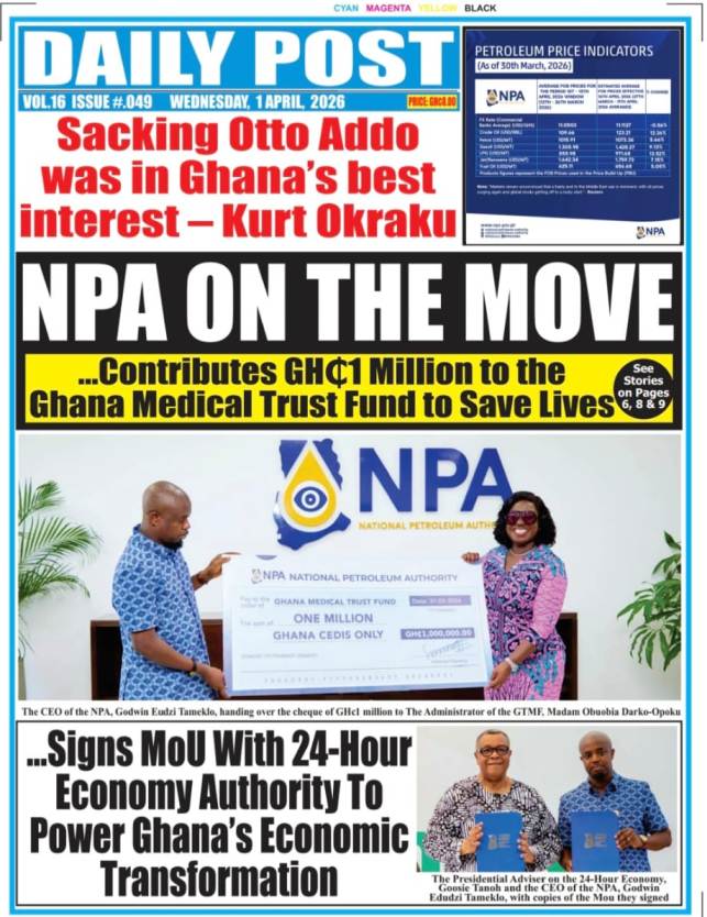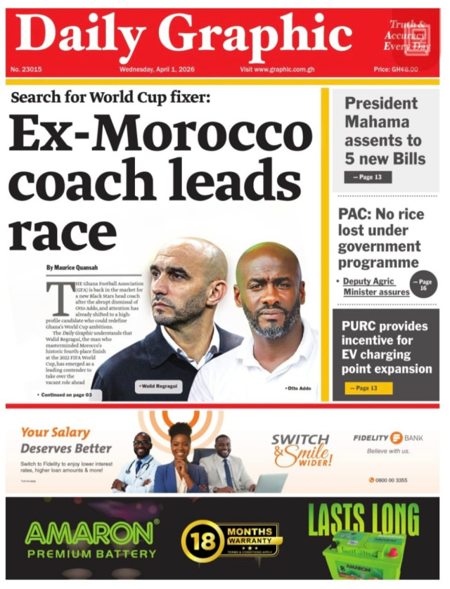 Ghana Newspapers Frontpages-Wednesday, 01 April, 2026 Read GhanaNews