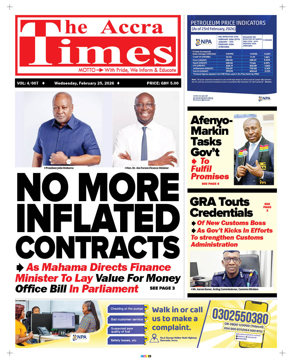 Ghana Newspapers Frontpages-Wednesday, 25 February, 2026 More GhanaNews