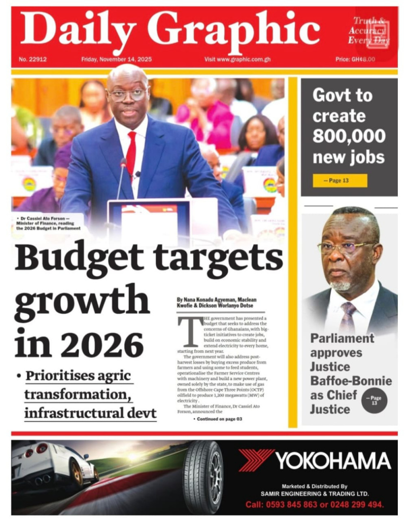 Ghana : Headlines this Friday, November 14, 2025 Read more GhanaNews
