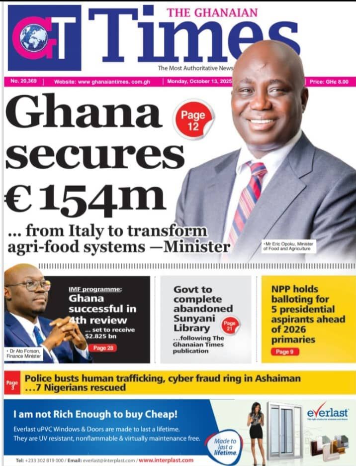 Ghana : Headlines this Monday, October 13, 2025 Read more GhanaNews
