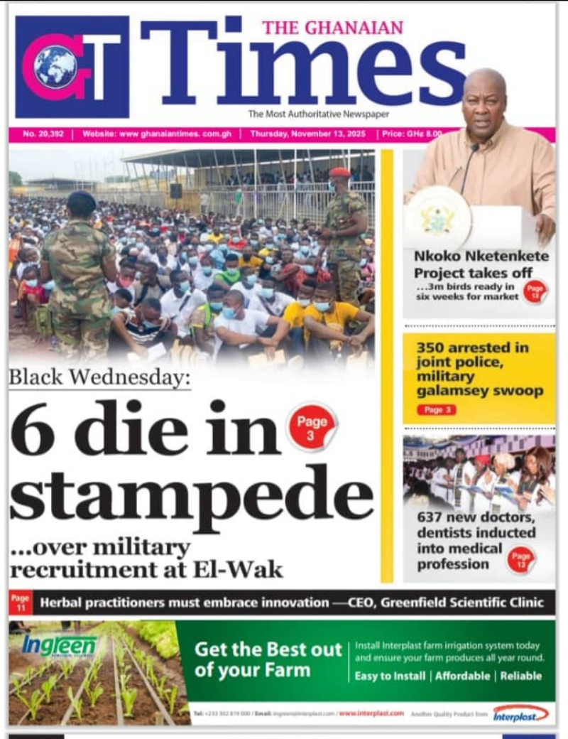 Ghana : Headlines this Thursday, November 13, 2025 Read more GhanaNews