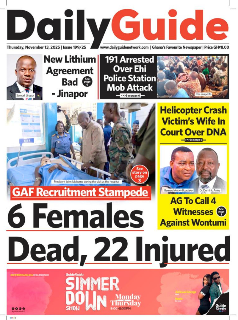 Accueil/actualites/Photos. Headlines from Ghana, this Thursday, November 13, 2025 actualitesPOLITIQUERevue de presseSOCIETE Photos. Headlines from Ghana, this Thursday, November 13, 2025 Ghana : Headlines this Thursday, November 13, 2025 Juloil y a 2 heures0 93 Moins d’une minute Ghana : Headlines this Thursday, November 13, 2025 Read more GhanaNews Tags6 killed Headlines from Ghana John Dramani Mahama journaux médias military recruitment newspapers NPP Photos Photos. Headlines from Ghana politique revue de presse Thursday November 13 2025 Juloil y a 2 heures0 93 Moins d’une minute Facebook X Linkedin Tumblr Pinterest Reddit VKontakte Partager par email Imprimer