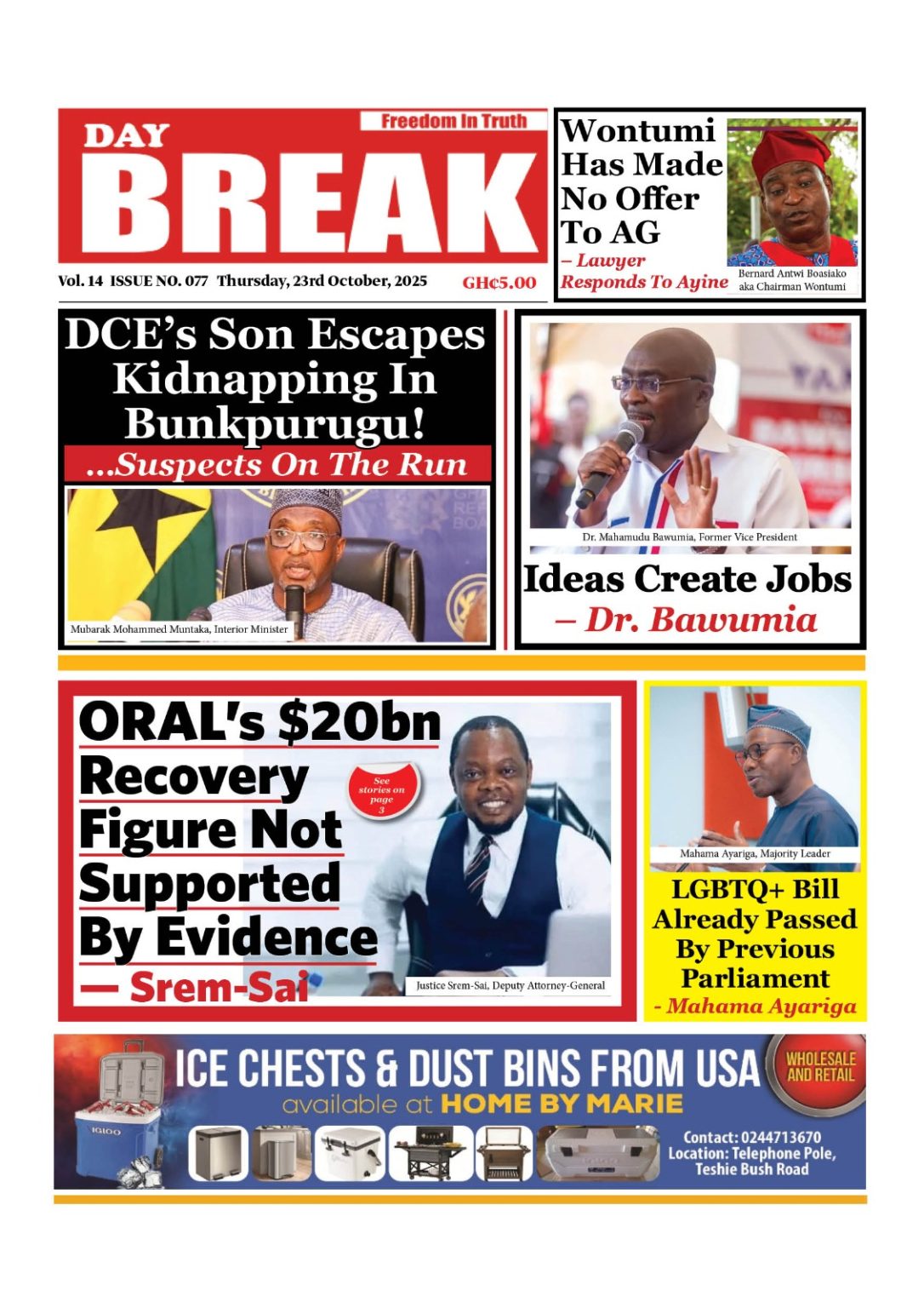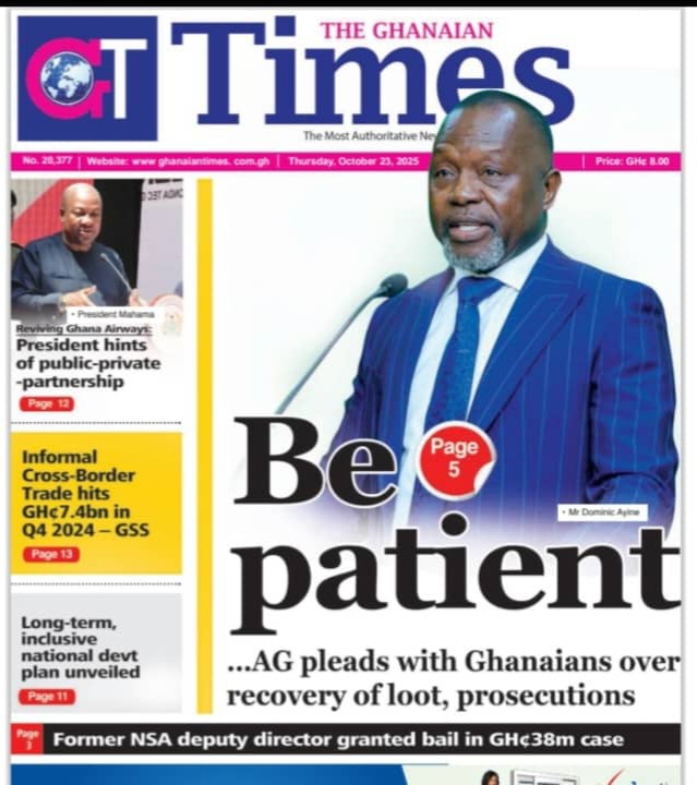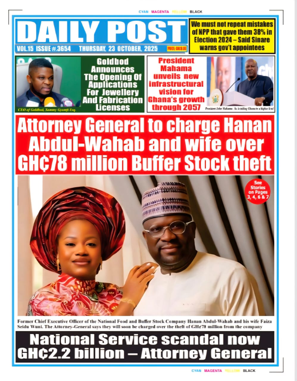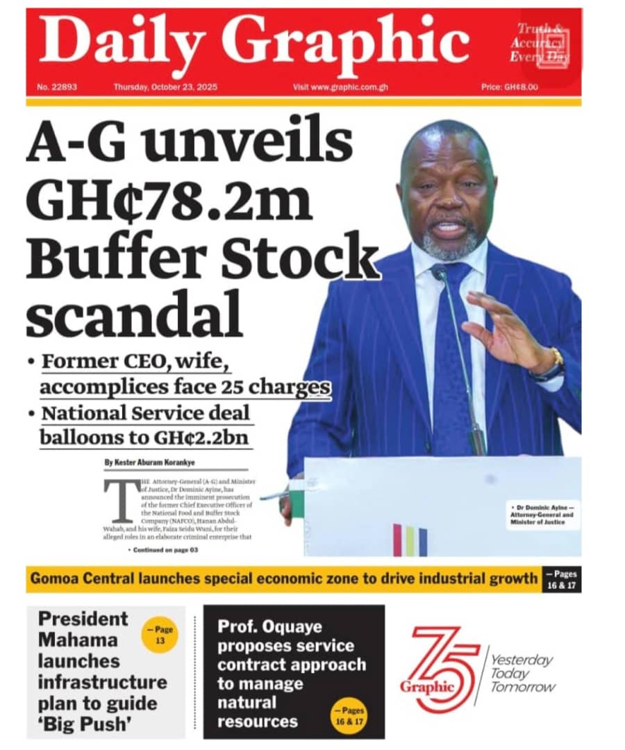 Ghana : Headlines this Thursday, October 23, 2025 Read More GhanaNews