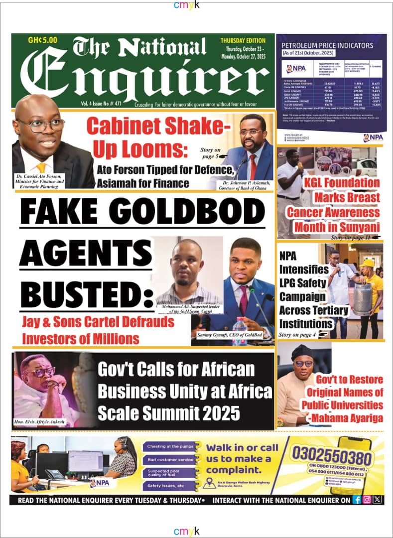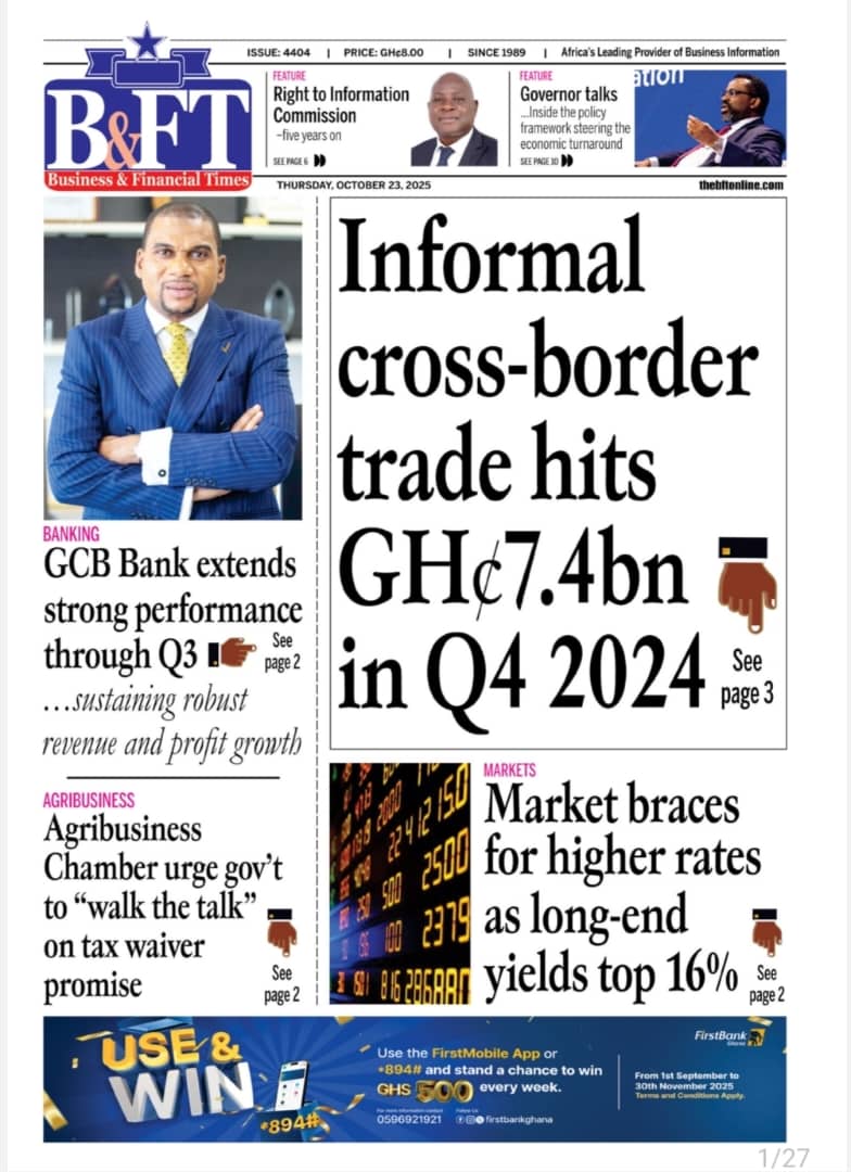 Accueil/actualites/Photos. Headlines from Ghana, this Thursday, October 23, 2025 actualitesPOLITIQUERevue de presseSOCIETE Photos. Headlines from Ghana, this Thursday, October 23, 2025 Ghana : Headlines this Thursday, October 23, 2025 Juloil y a 4 heures0 106 Moins d’une minute Ghana : Headlines this Thursday, October 23, 2025 Read More GhanaNews Tags2025 actualités Buwamia Cheikh Touré kidnapped and killed GhanaNews headlines Headlines from Ghana John Dramani Mahama journaux médias Monday newspapers October 23 Photos politique revue de presse this Thursday Young senegalese football player Juloil y a 4 heures0 106 Moins d’une minute Facebook X Linkedin Tumblr Pinterest Reddit VKontakte Partager par email Imprimer