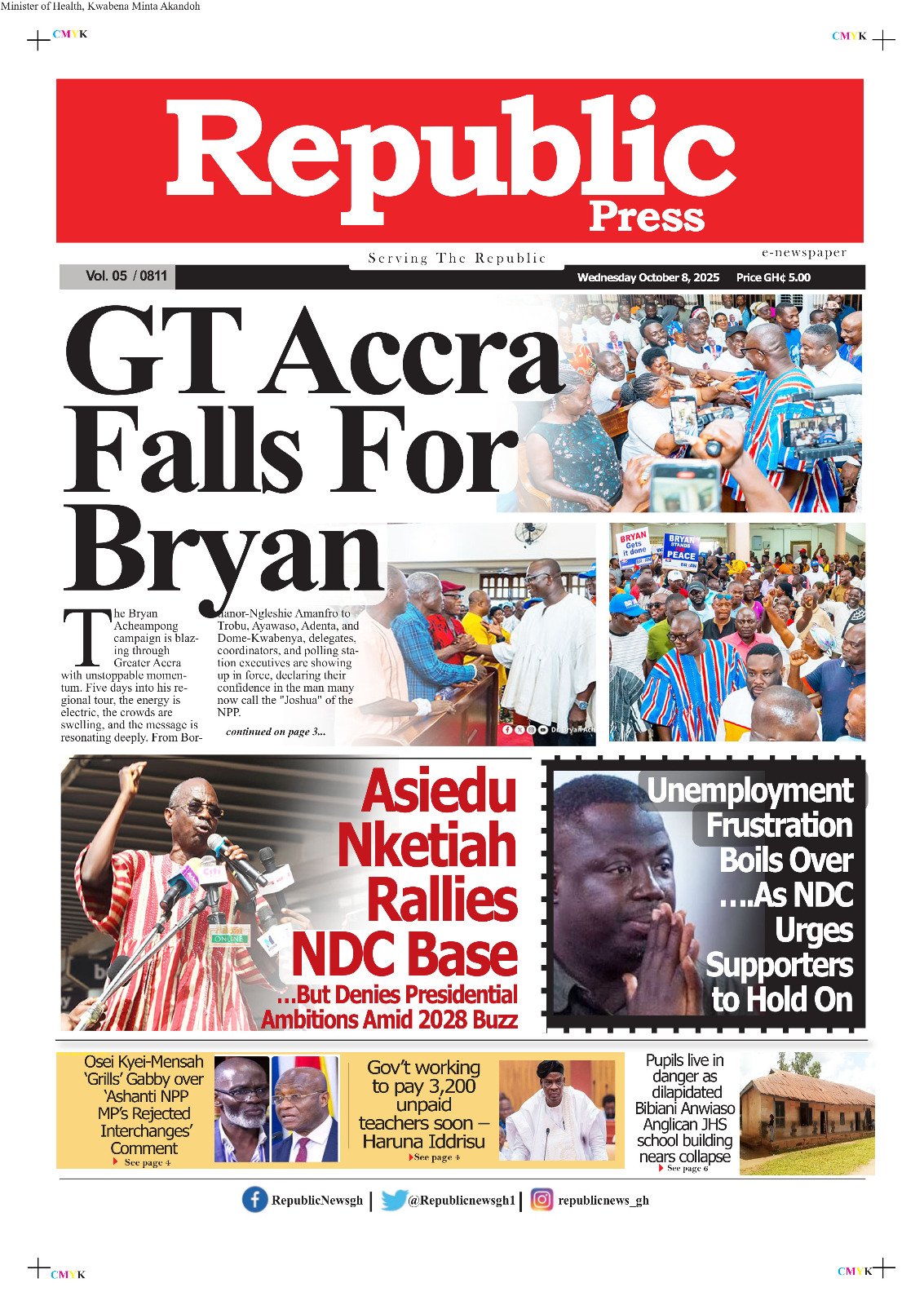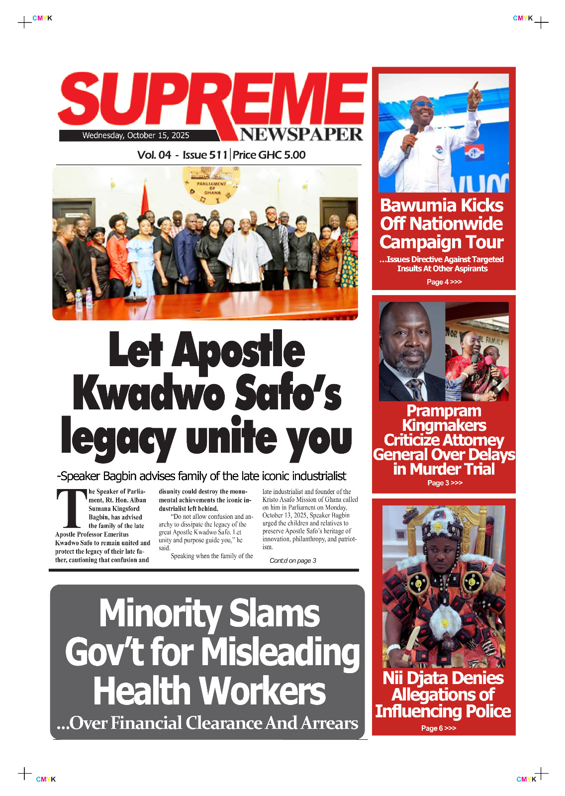 Accueil/actualites/Photos. Headlines from Ghana, this Wednesday, October 15, 2025 actualitesPOLITIQUERevue de presseSOCIETE Photos. Headlines from Ghana, this Wednesday, October 15, 2025 Ghana : Headlines this Wednesday, October 15, 2025 Juloil y a 3 heures0 96 Moins d’une minute Ghana : Headlines this Wednesday, October 15, 2025 Read more GhanaNews Tags2025 actualités ghanéennes GhanaNews headlines John Dramani Mahama trip in China journaux médias newspapers October 15 Photos politique revue de presse this Wednesday Juloil y a 3 heures0 96 Moins d’une minute Facebook X Linkedin Tumblr Pinterest Reddit VKontakte Partager par email Imprimer