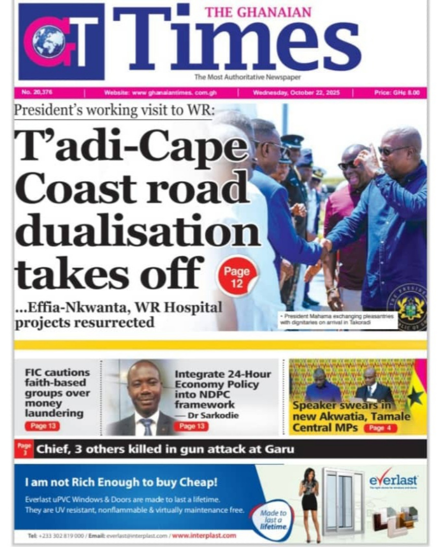 Ghana : Headlines this Wednesday, October 22, 2025 Read more GhanaNews
