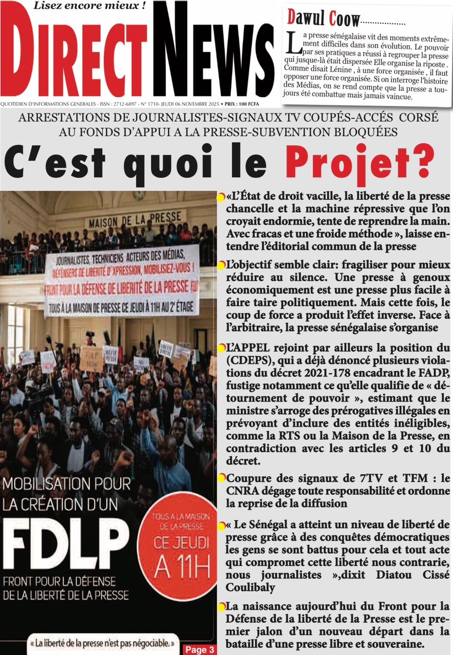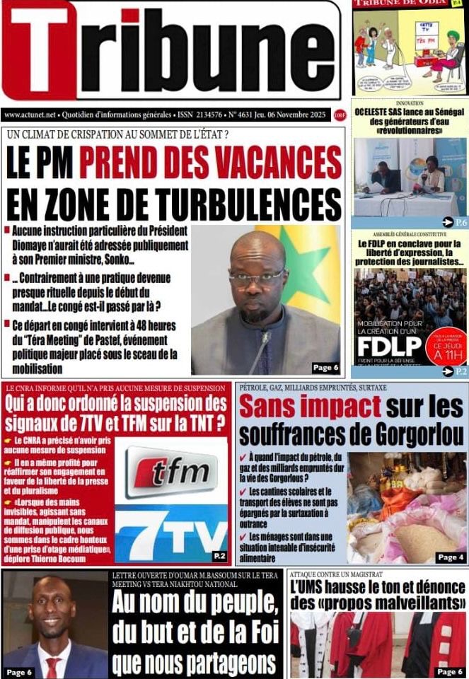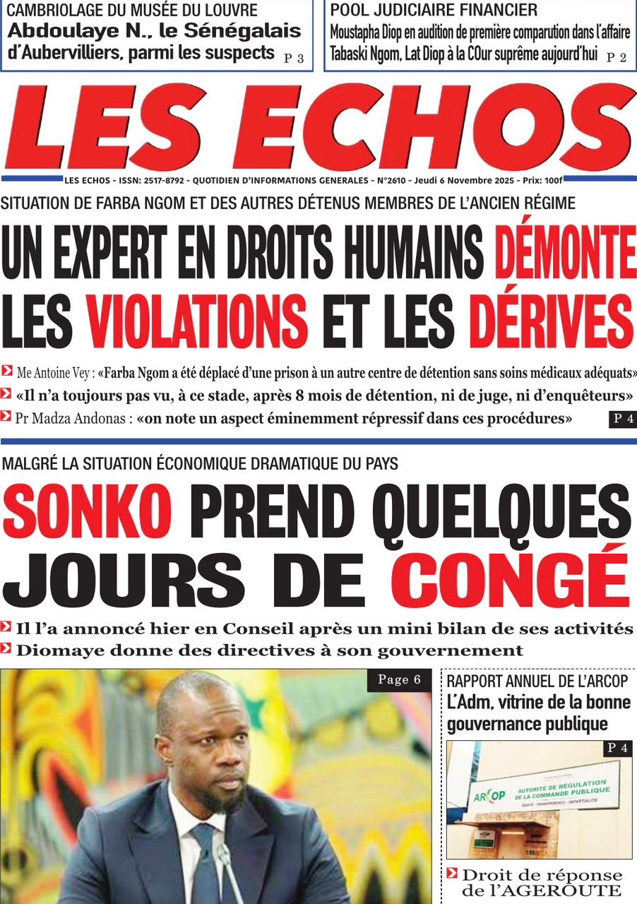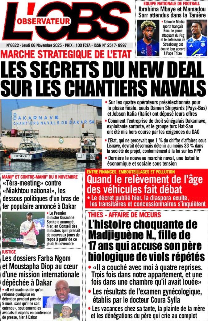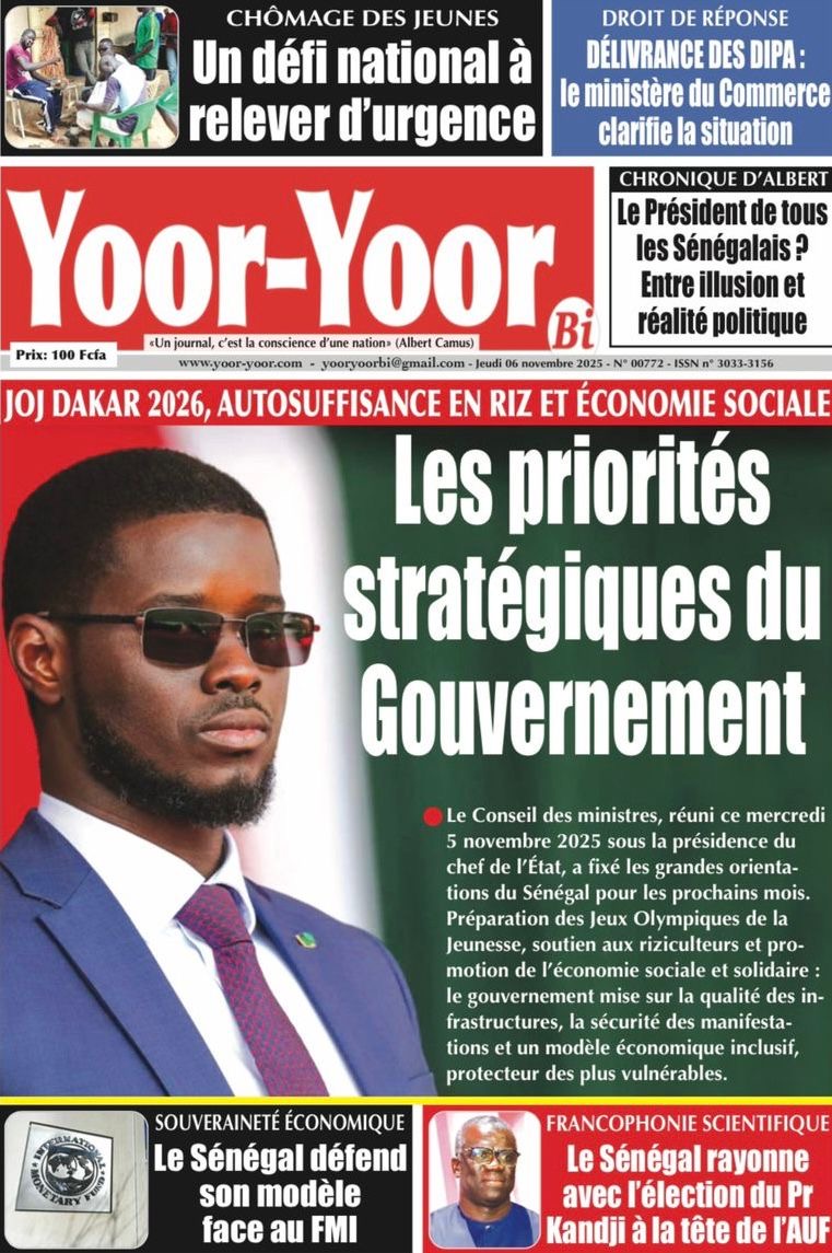 Jeudi 06 novembre 2025 : la revue de presse sénégalaise