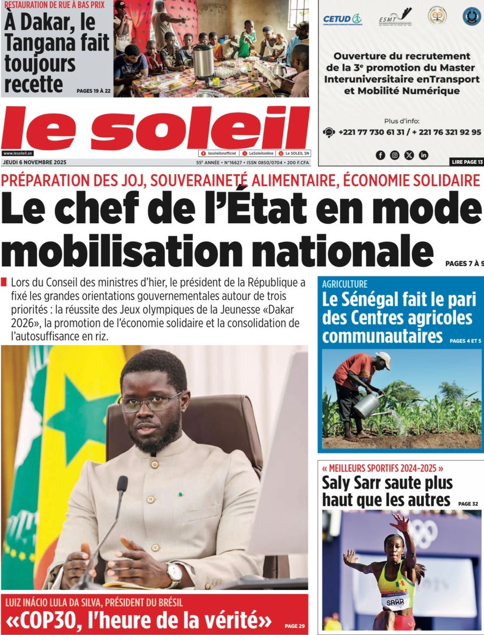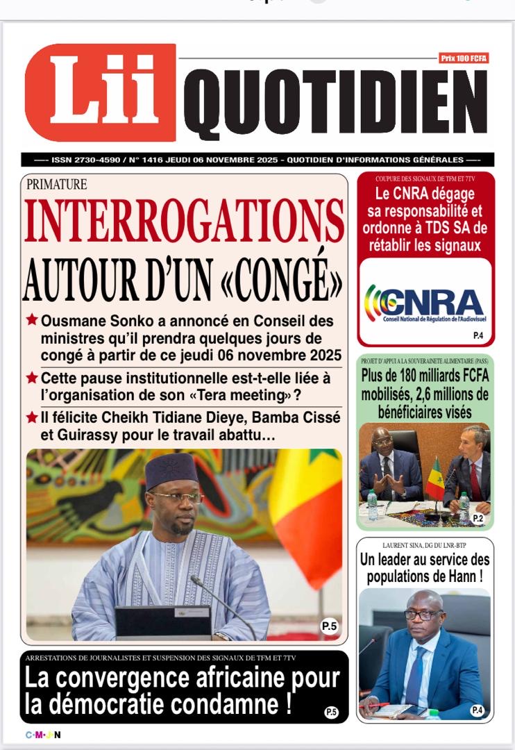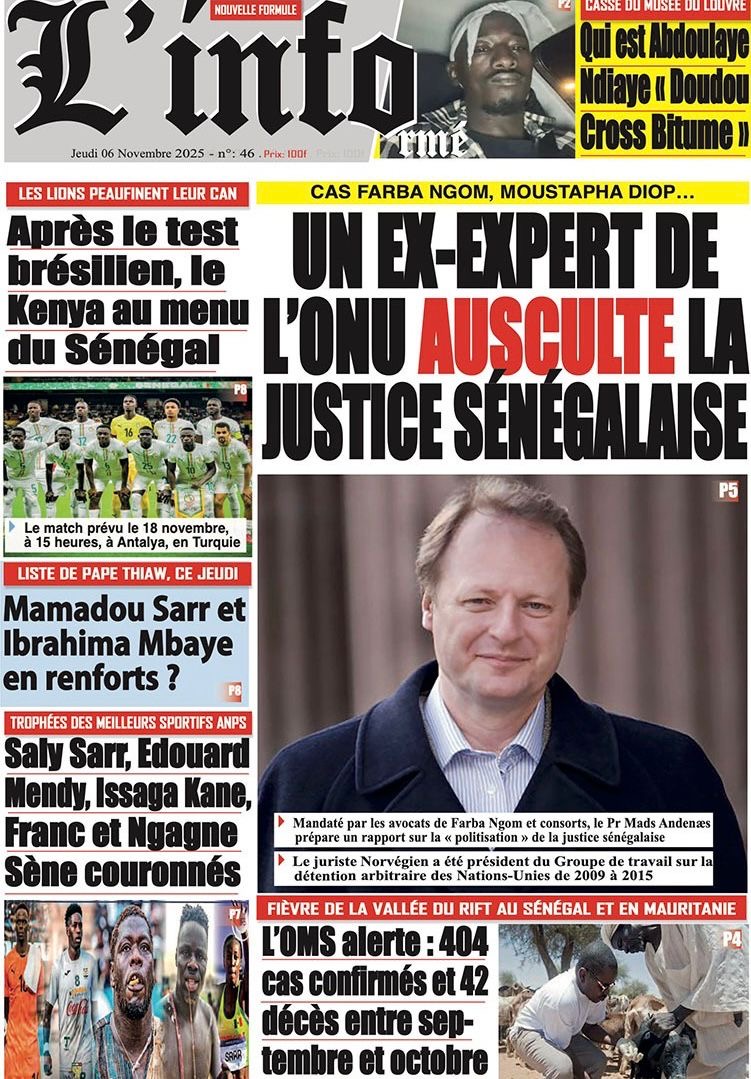 Photos. La revue de presse sénégalaise du jeudi 06 novembre 2025