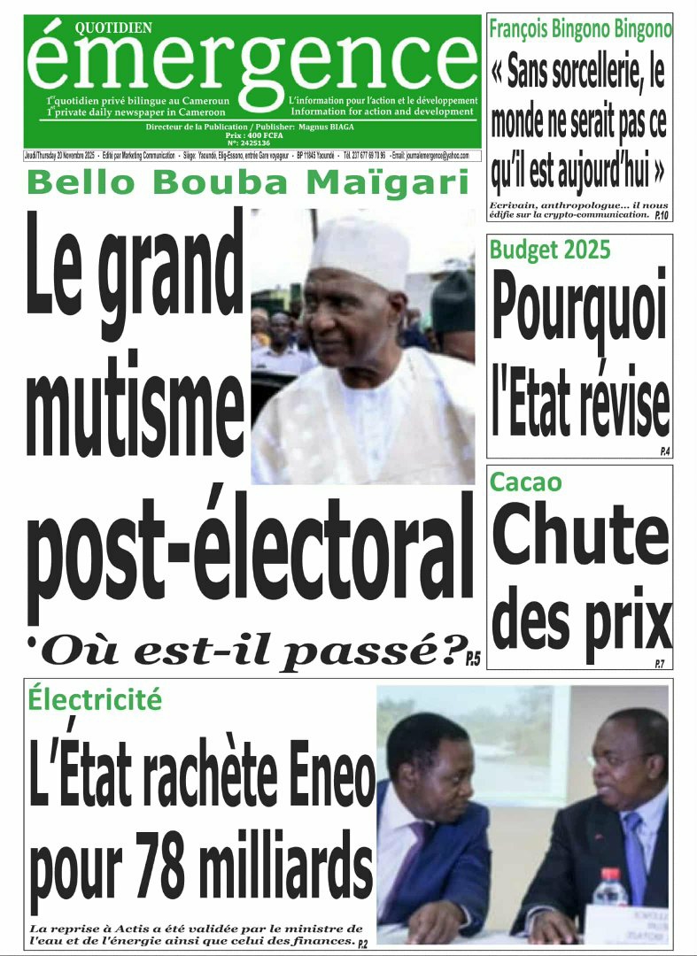 Photos. La revue de presse camerounaise du jeudi 20 novembre 2025