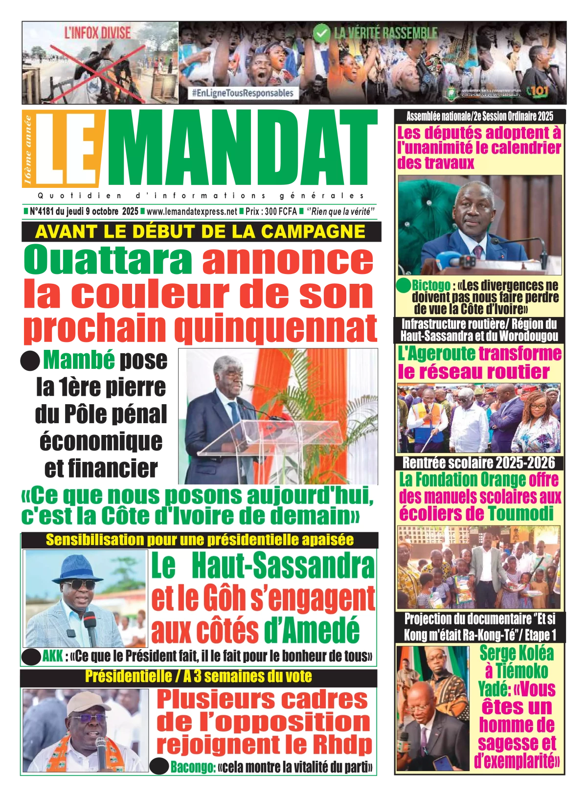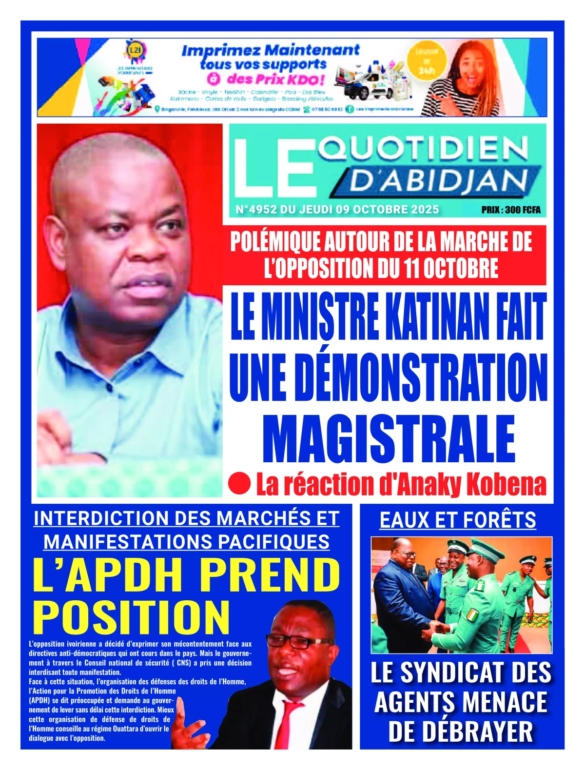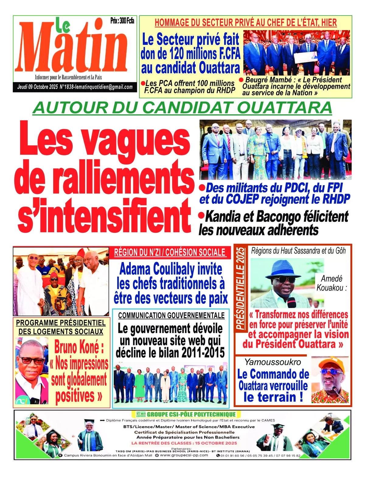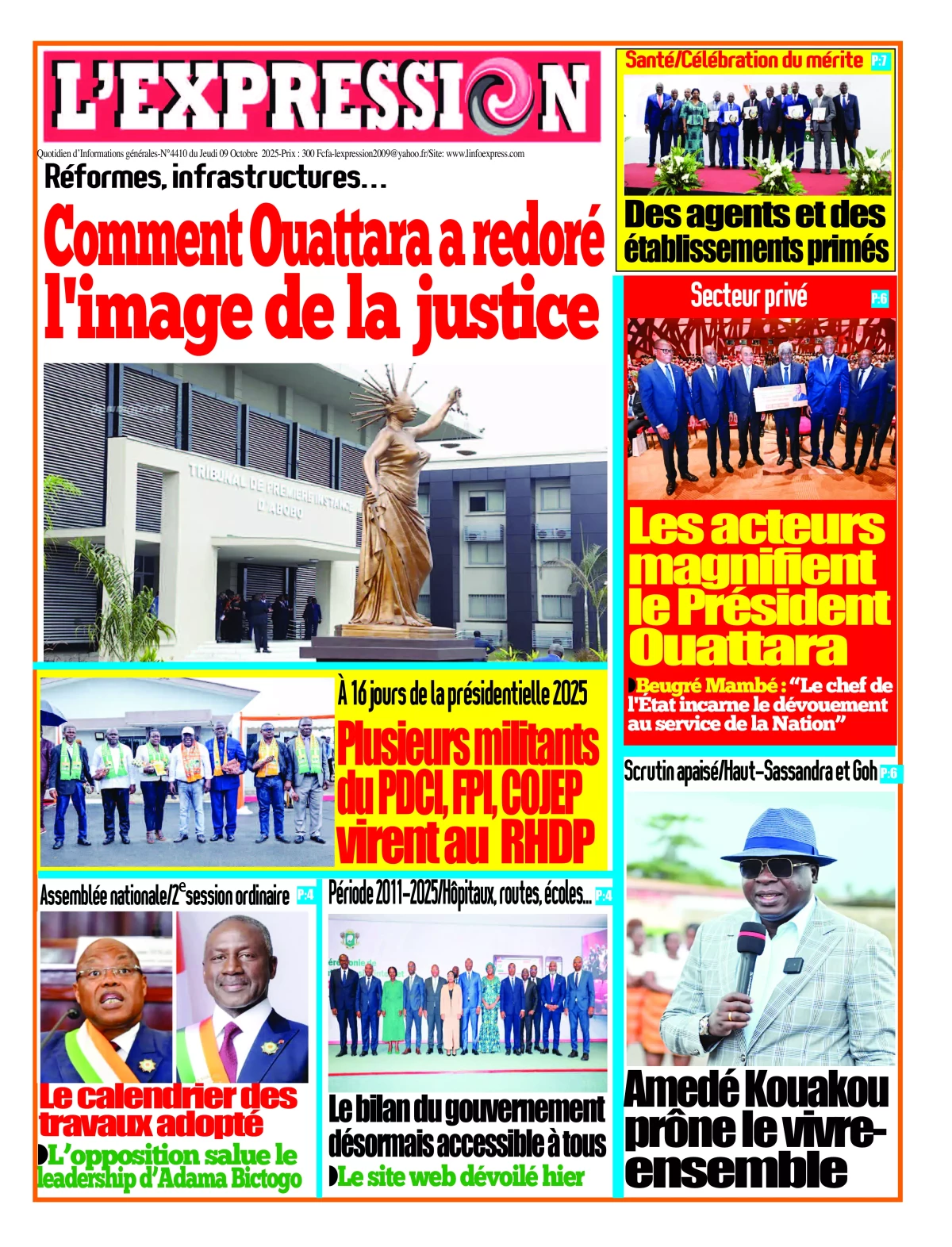 Côte d'Ivoire : la revue de presse du jeudi 09 octobre 2025 La revue des titres de Côte d'Ivoire