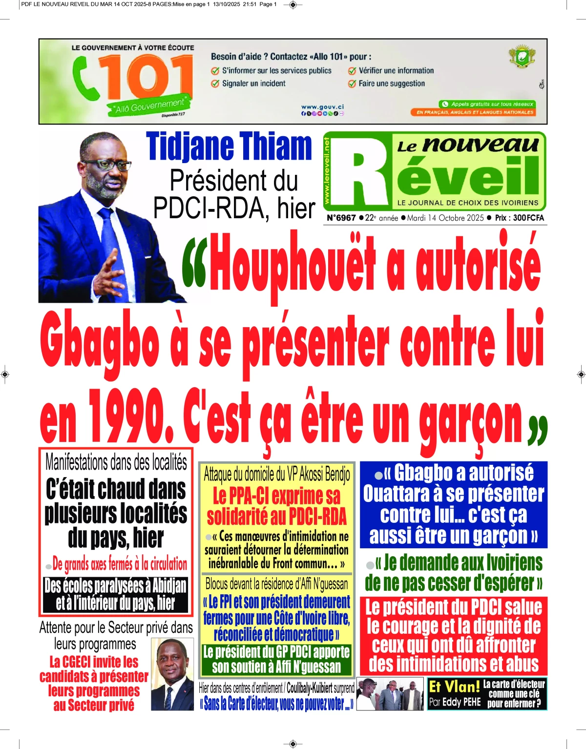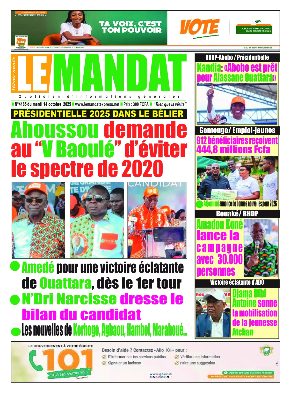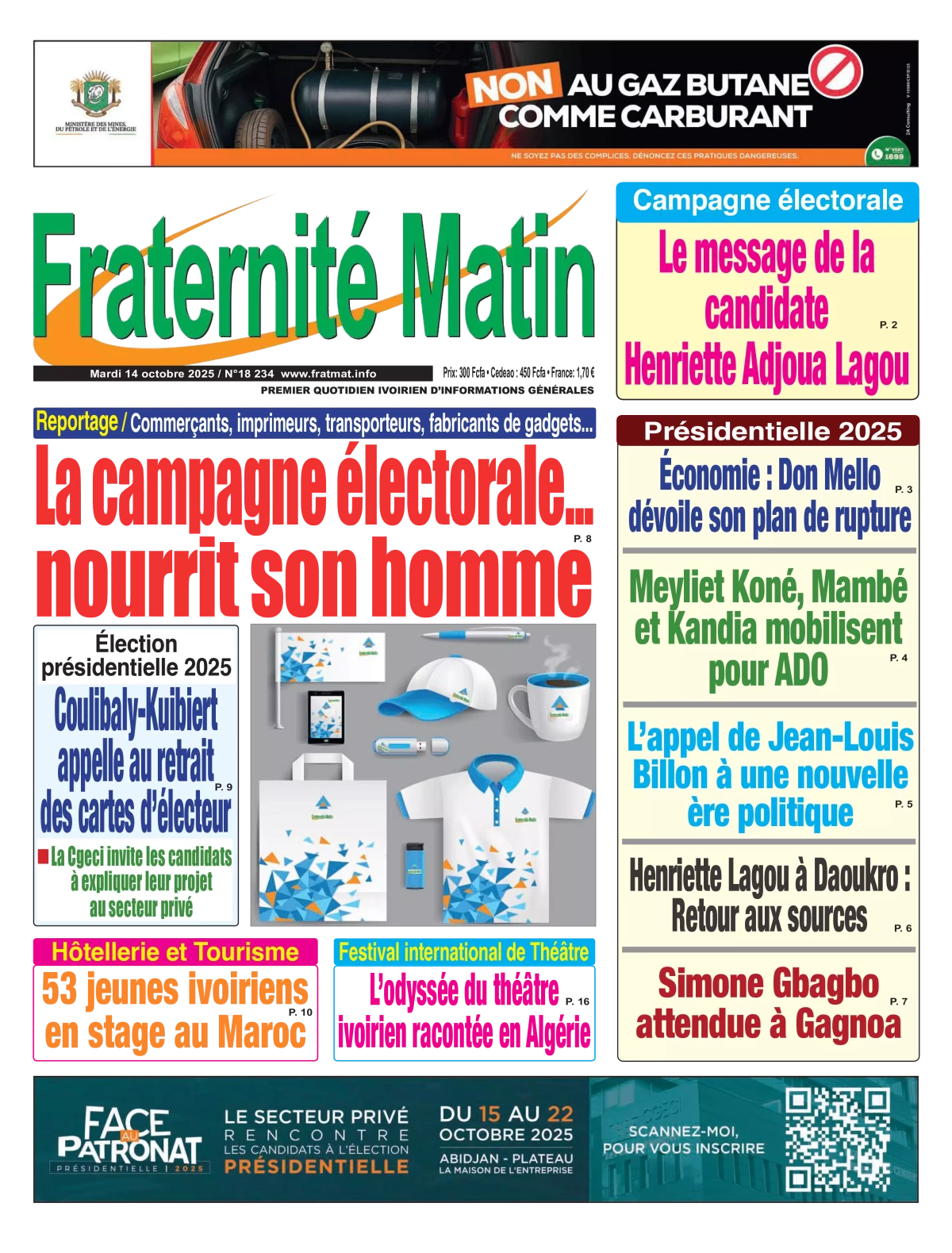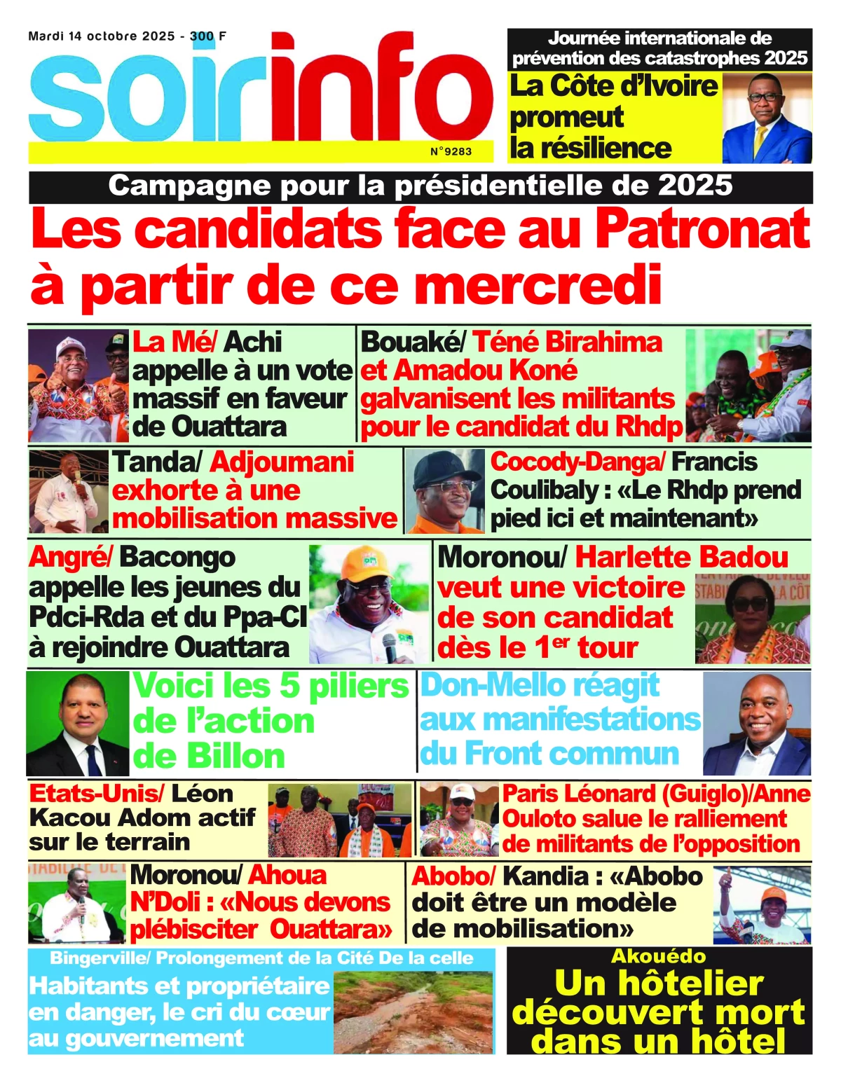 Côte d’Ivoire : la revue de presse du mardi 14 octobre 2025 La revue des titres de Côte d’Ivoire