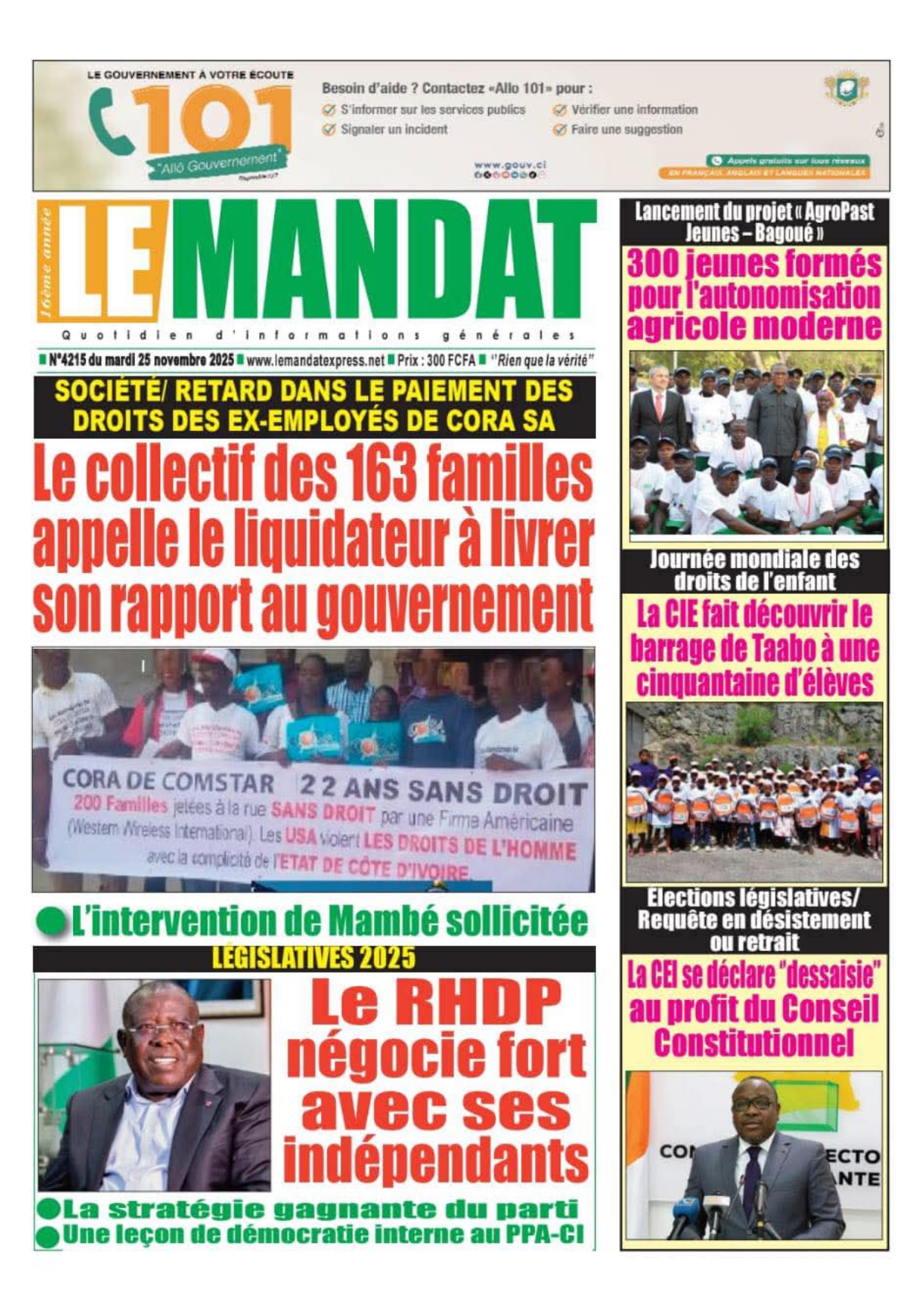 Photos. La revue de presse de Côte d’Ivoire du mardi 25 novembre 2025
