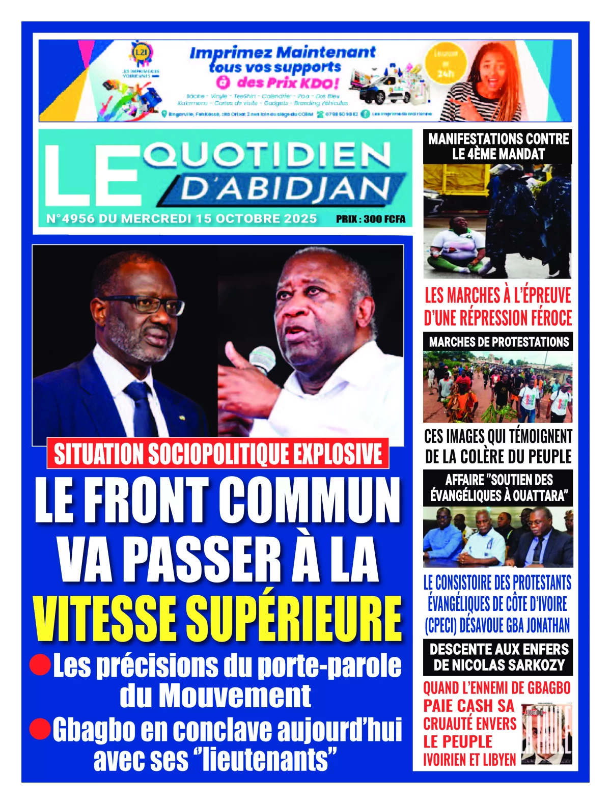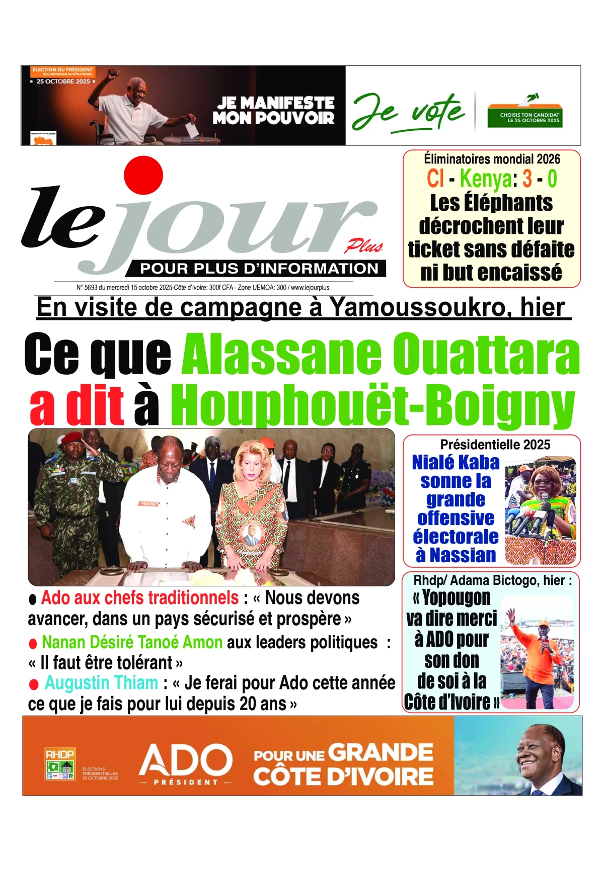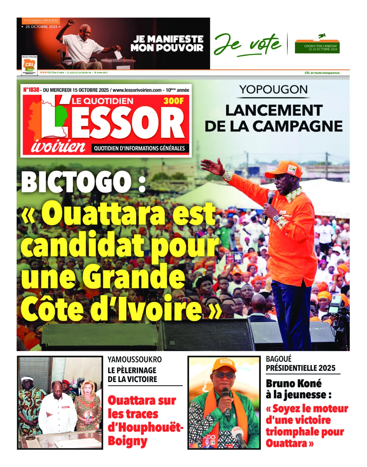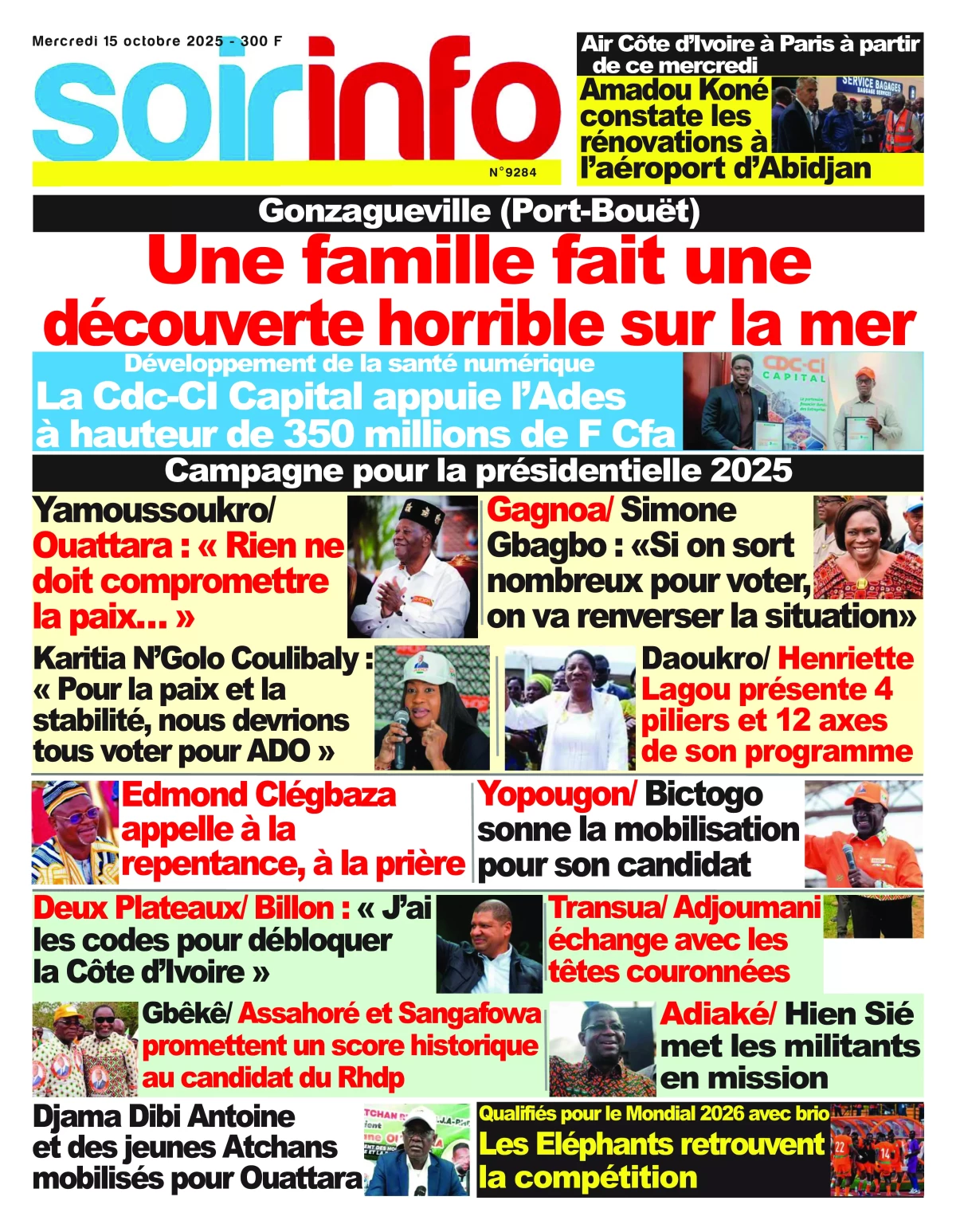 Photos. La revue de presse de Côte d’Ivoire du mercredi 15 octobre 2025
