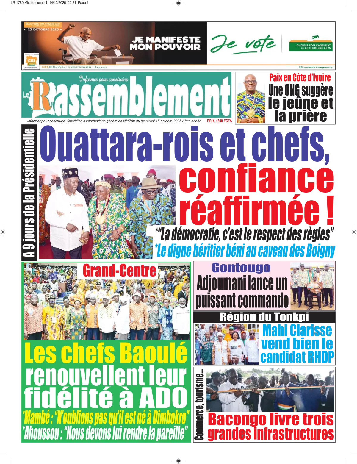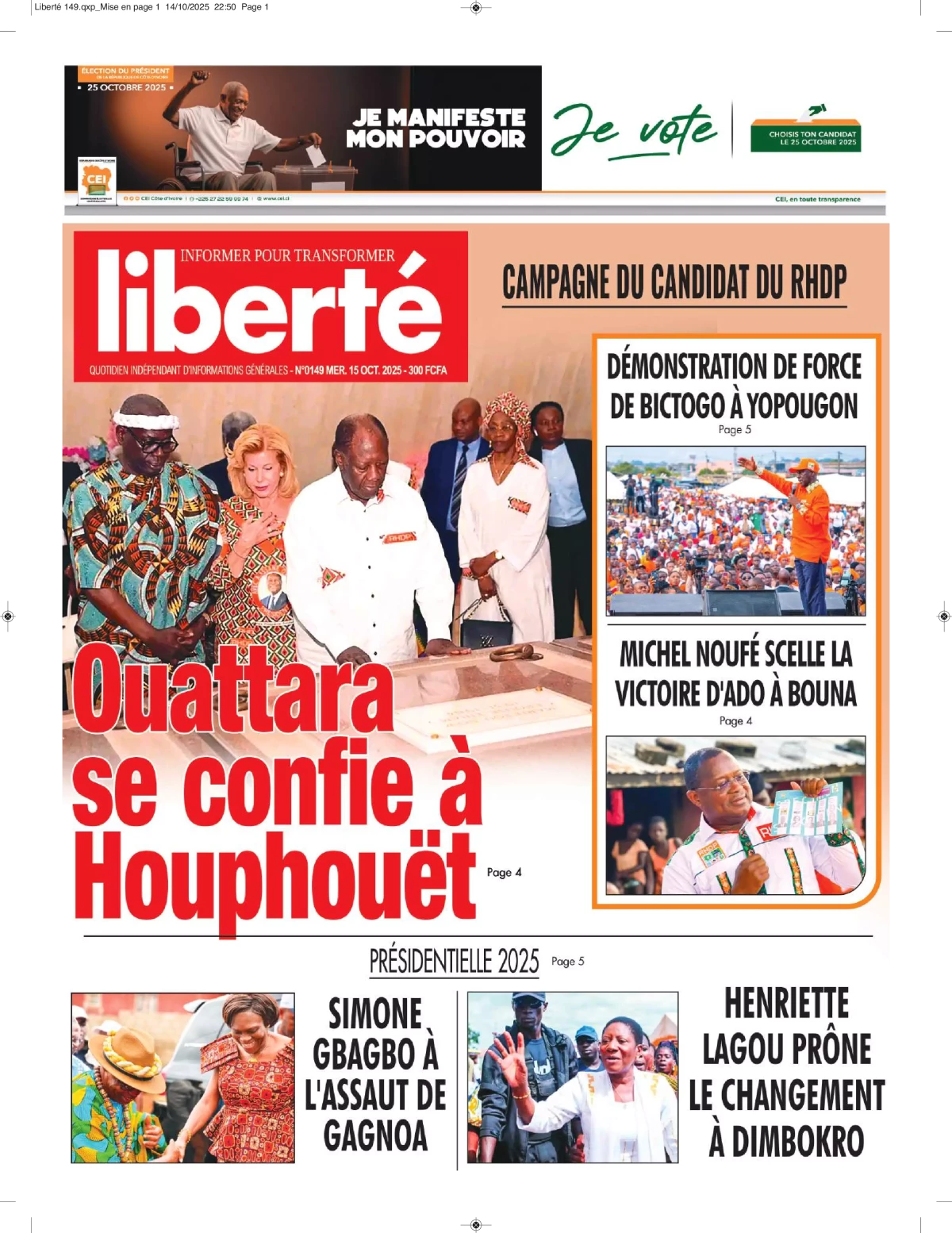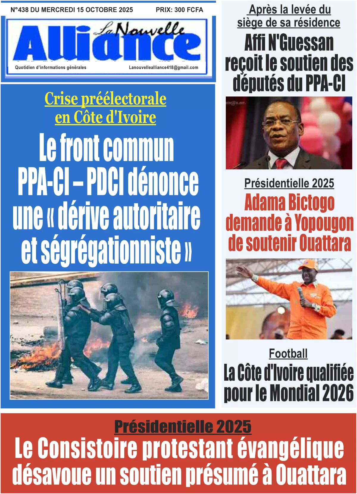 Photos. La revue de presse de Côte d’Ivoire du mercredi 15 octobre 2025