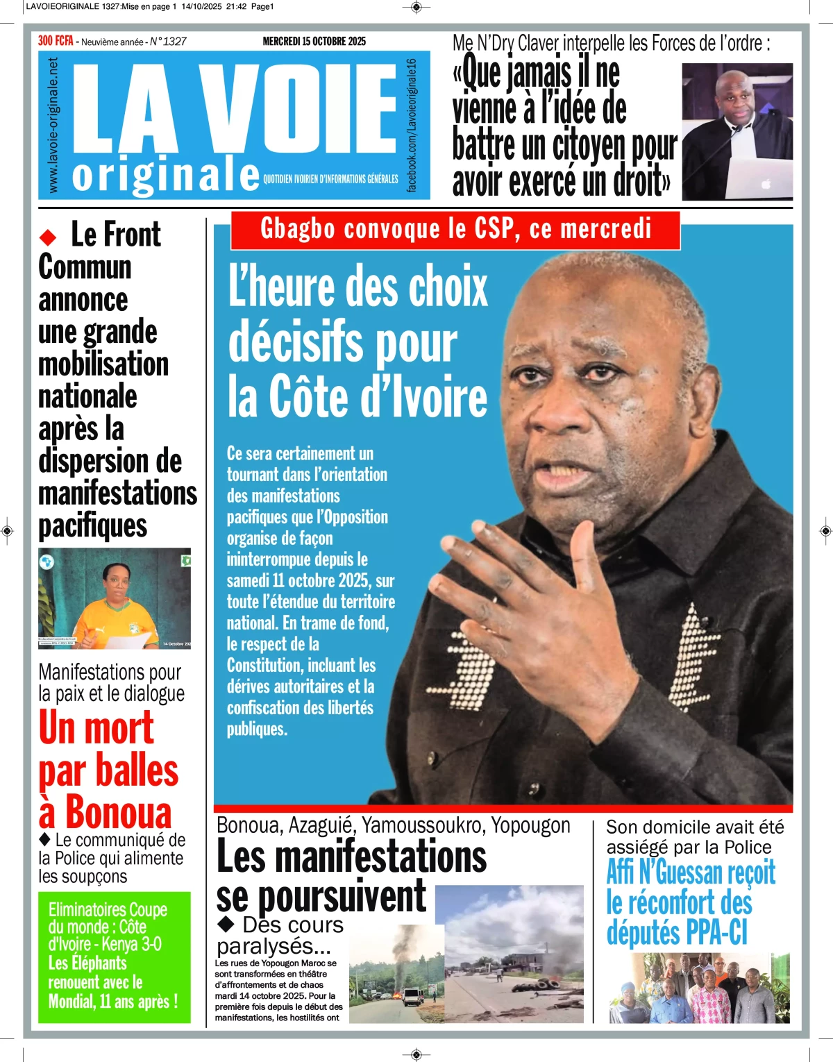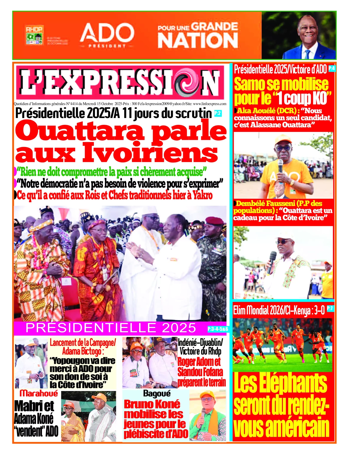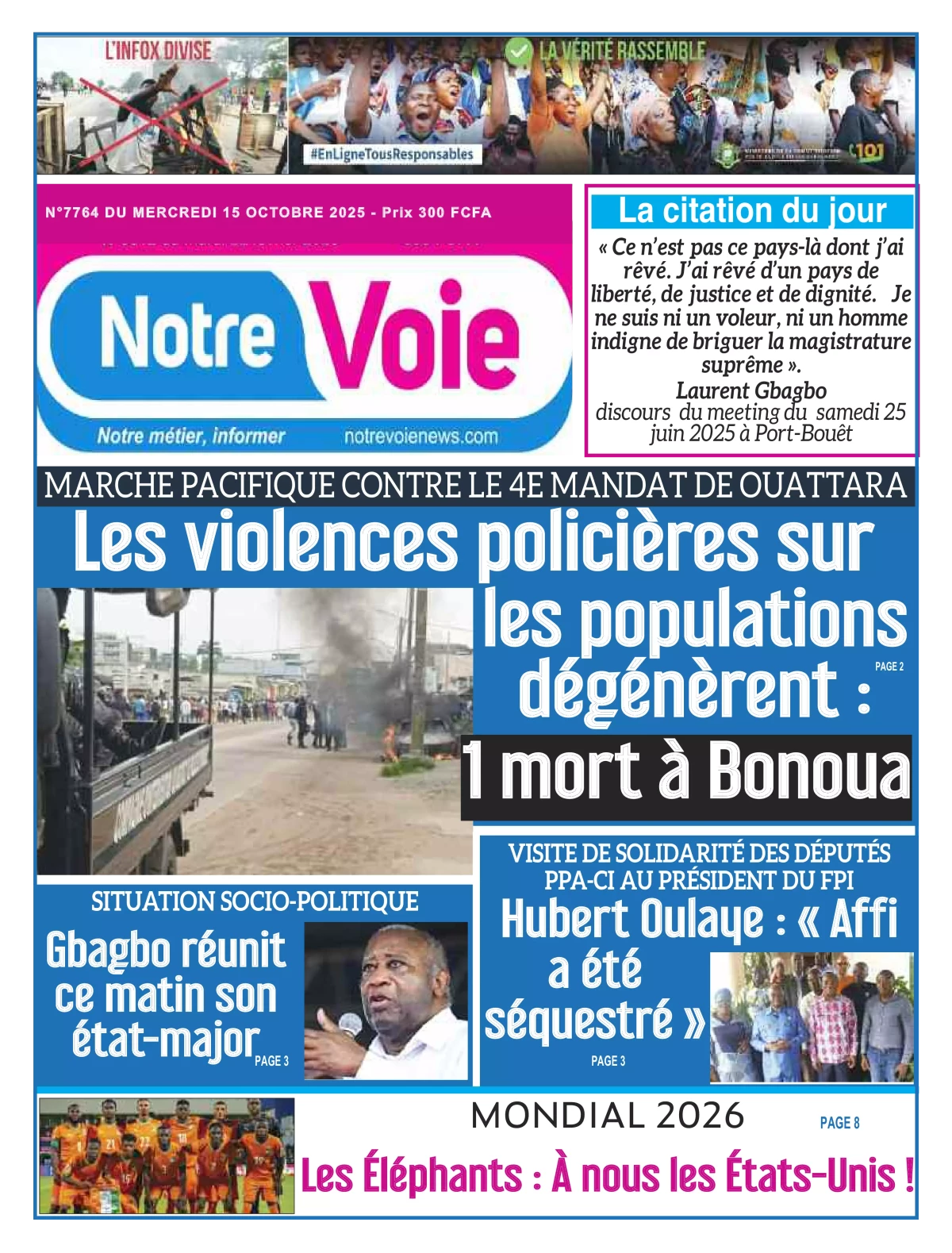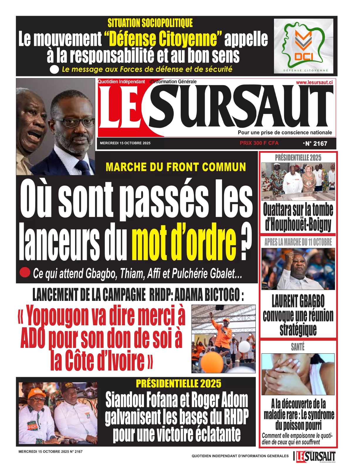 Photos. La revue de presse de Côte d’Ivoire du mercredi 15 octobre 2025