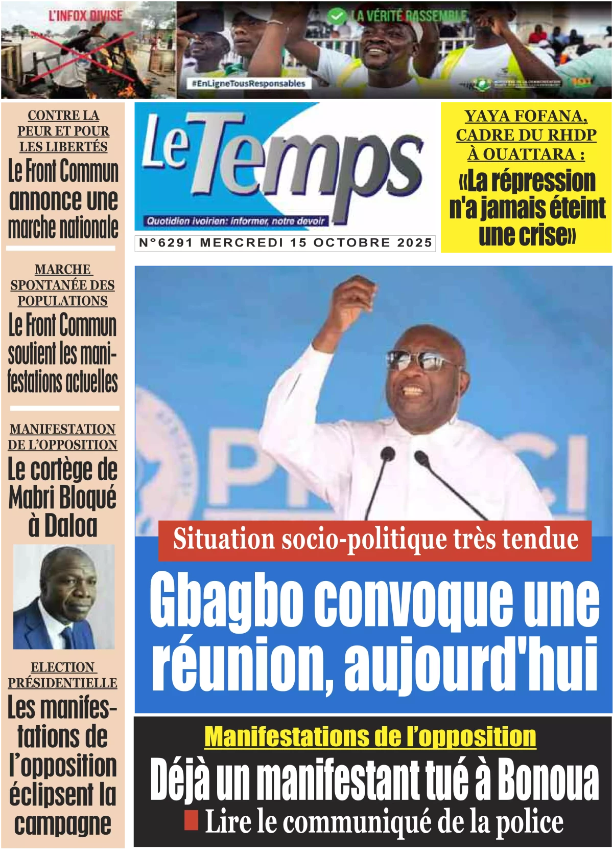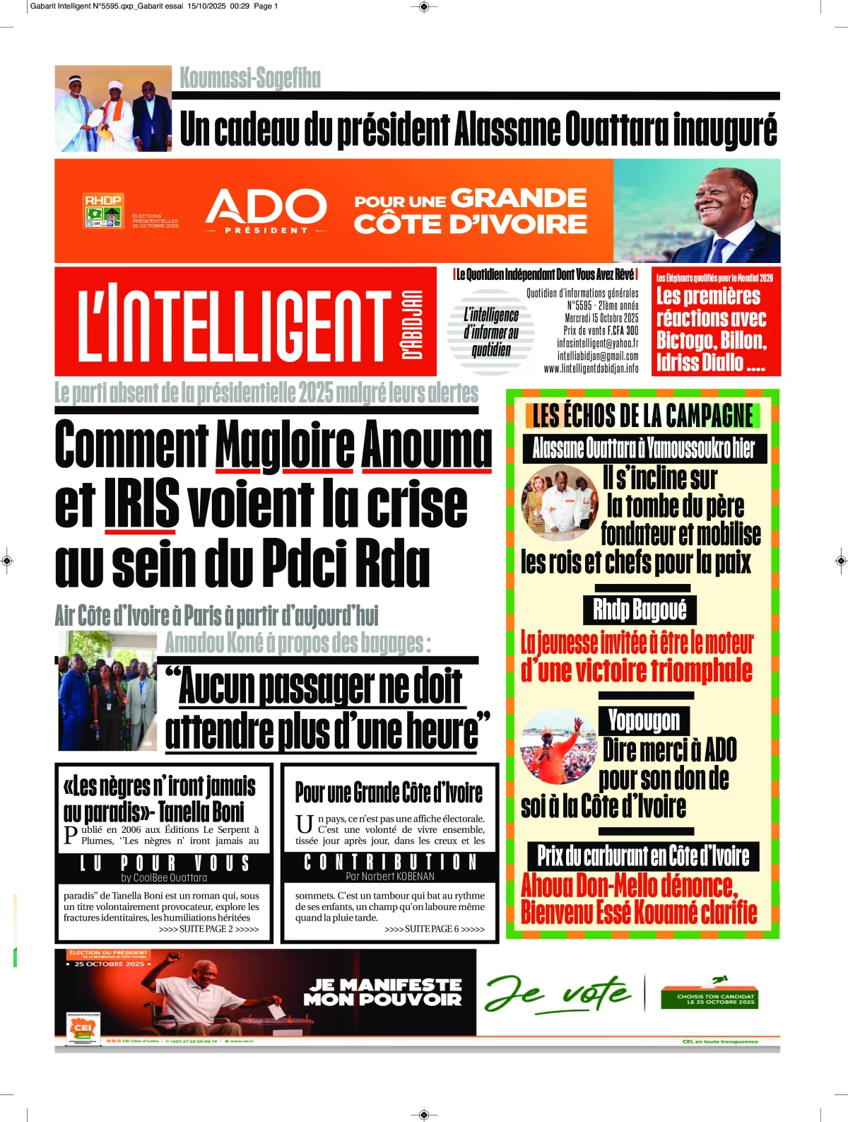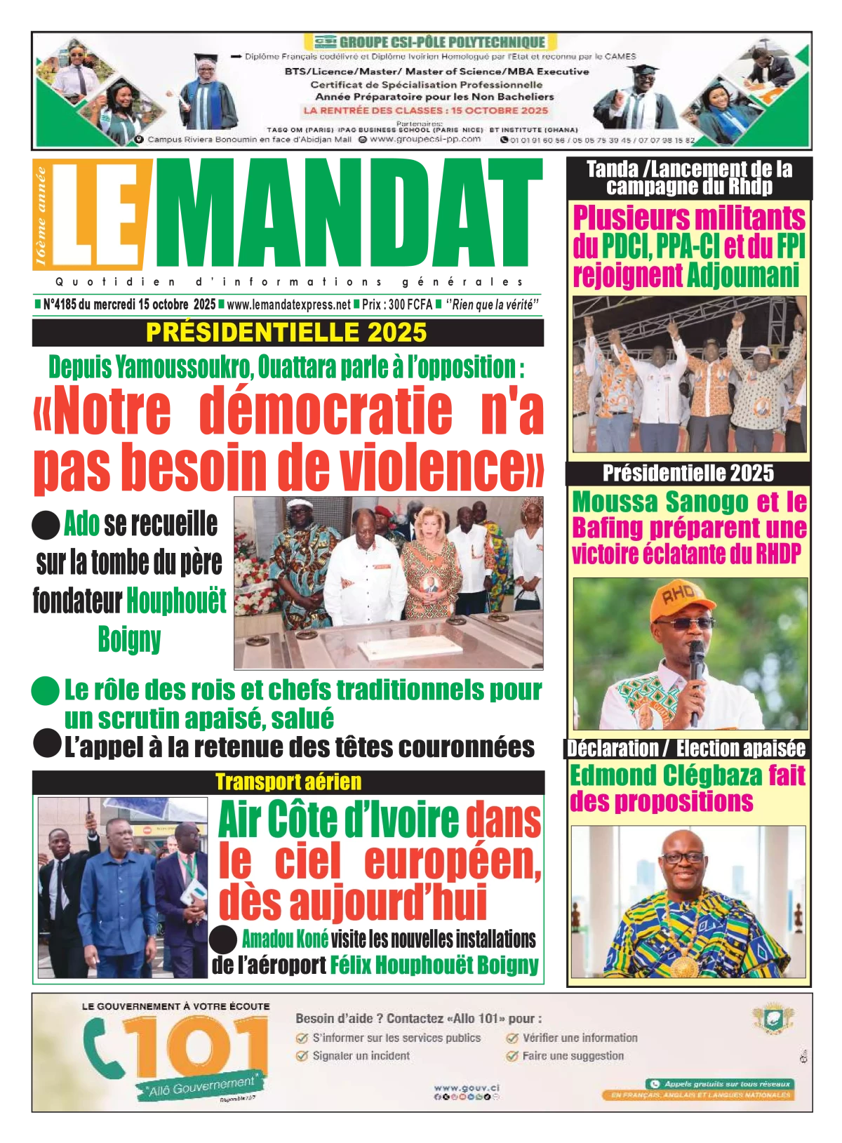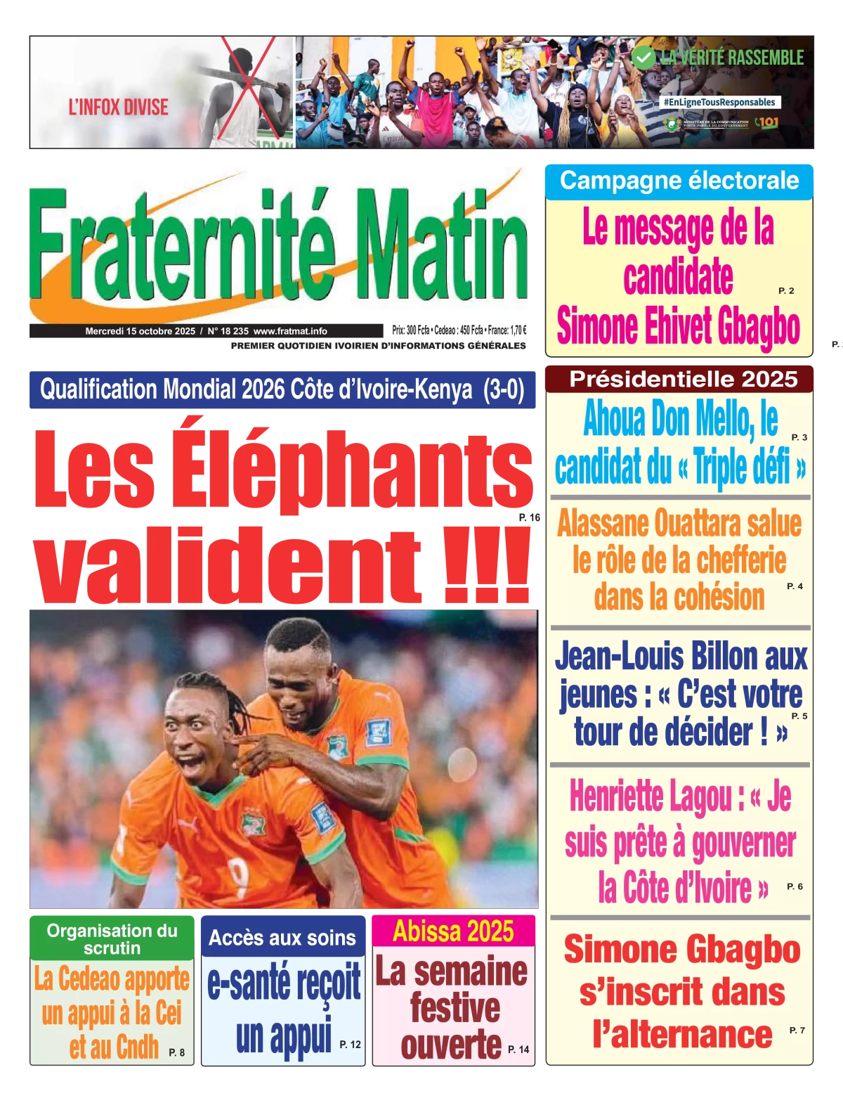 Côte d'Ivoire : la revue de presse du mercredi 15 octobre 2025