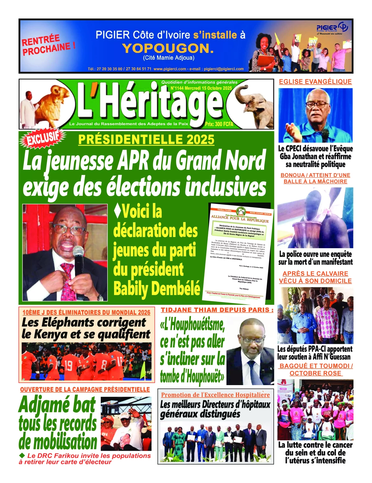 Côte d’Ivoire : la revue de presse du mercredi 15 octobre 2025