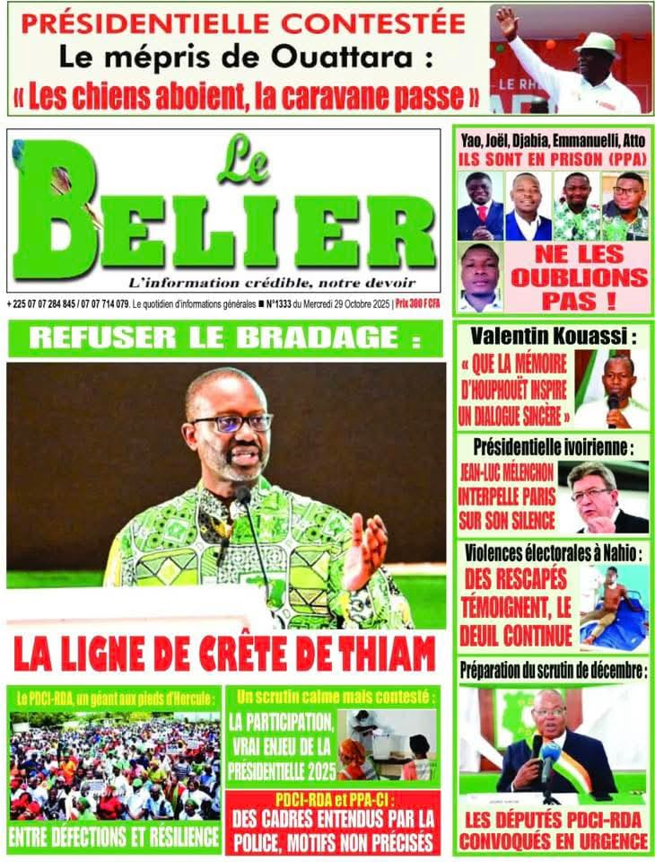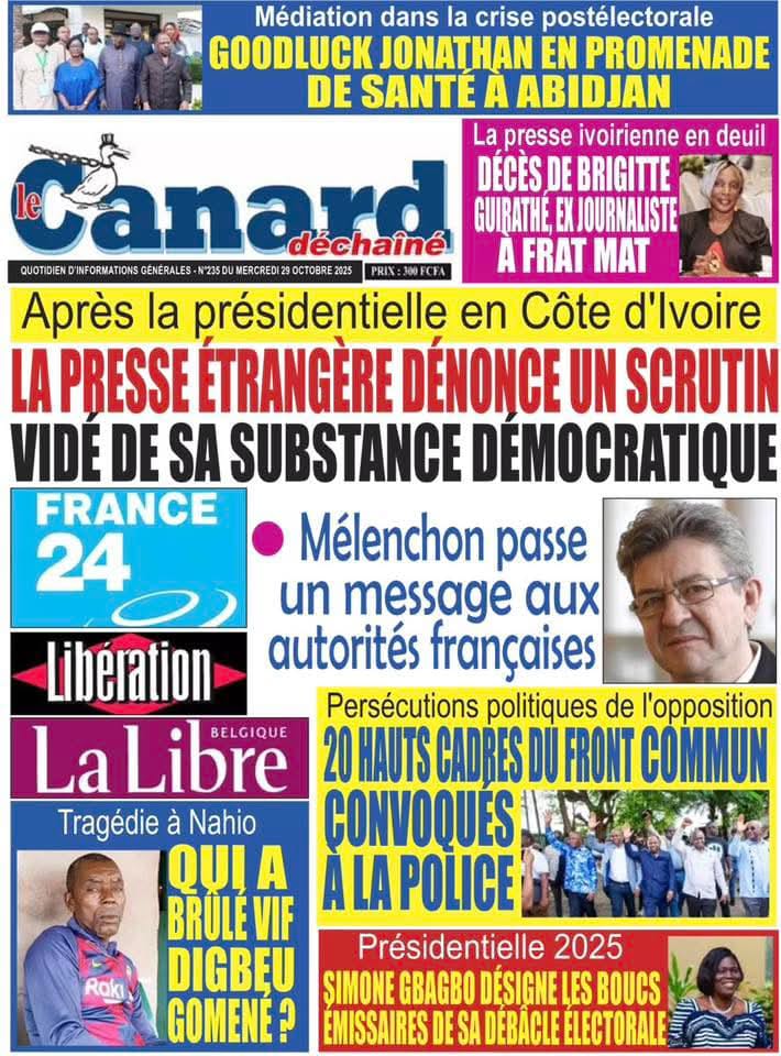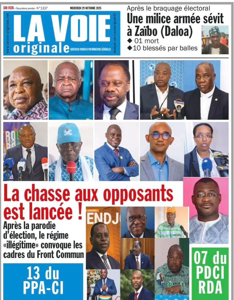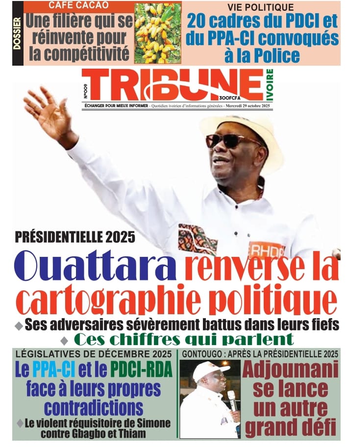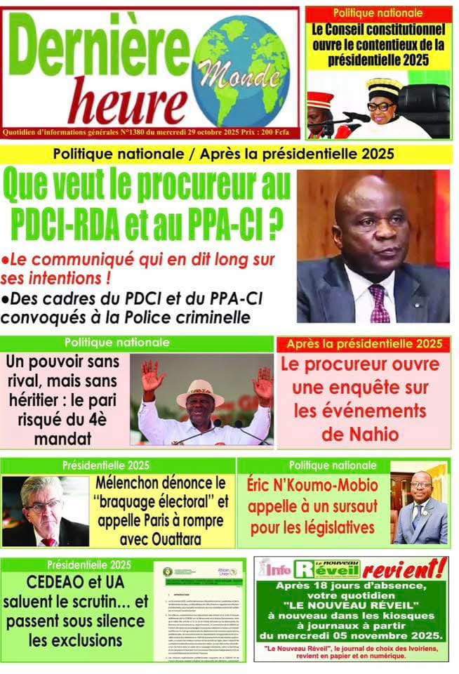 Côte d’Ivoire : la revue de presse du mercredi 29 octobre 2025 est aux couleurs des lendemains de la présidentielle du 25 octobre remportée largement par le Chef de l’Etat sortant Alassane Dramane Ouattara, avec l’arrestation de responsables de l’opposition.