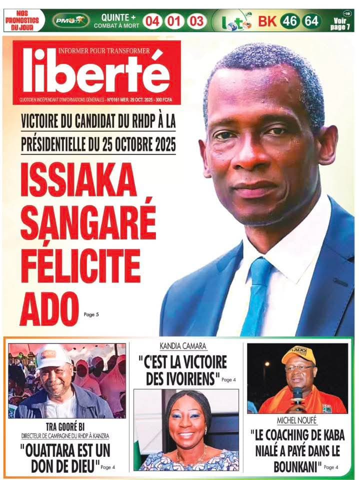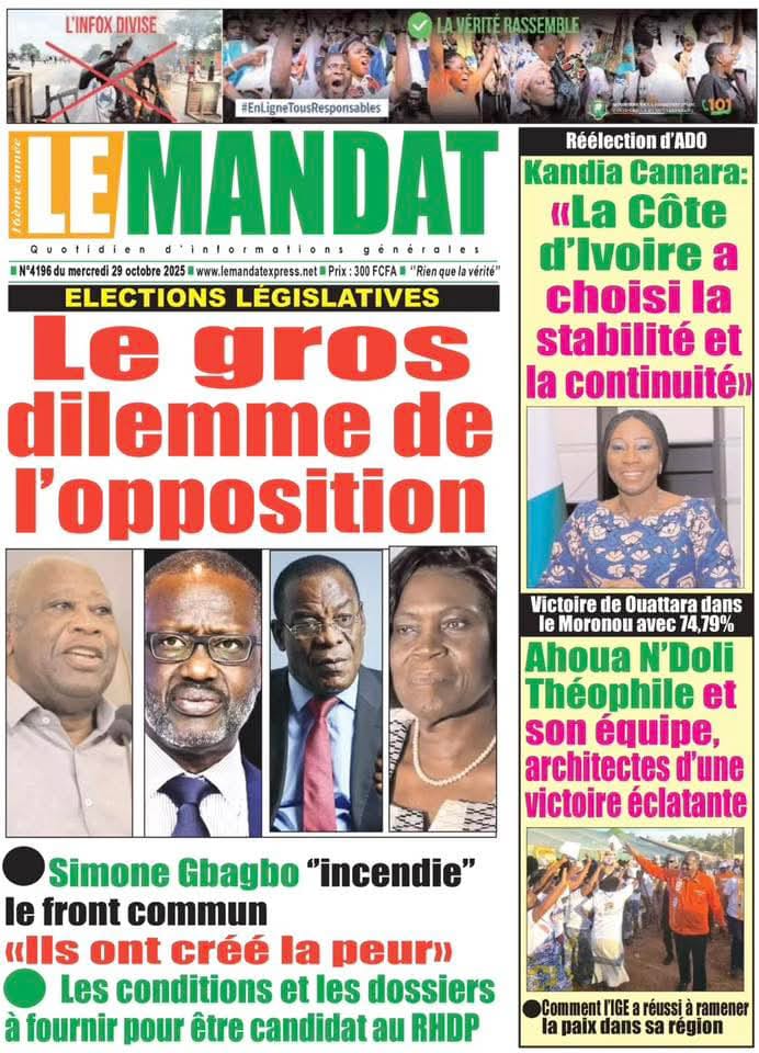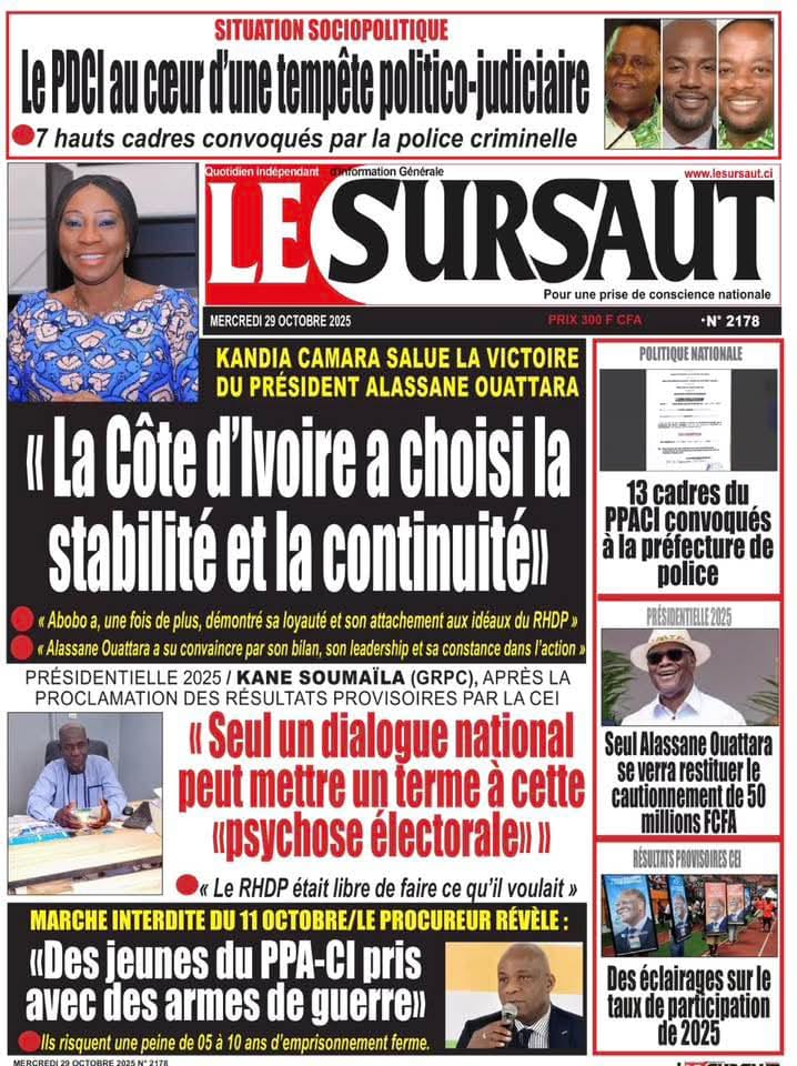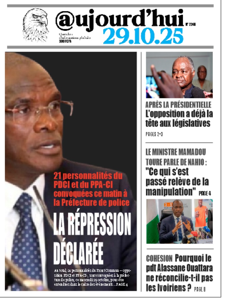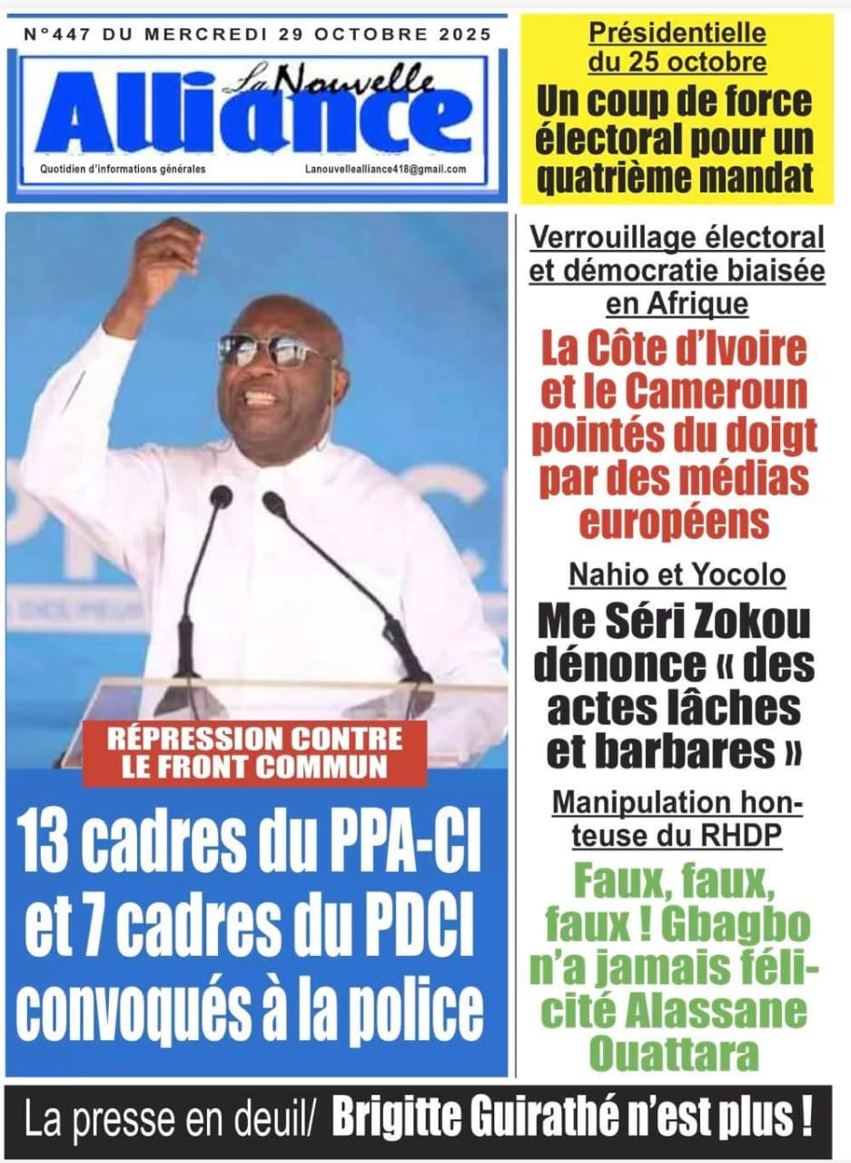 Côte d’Ivoire : la revue de presse du mercredi 29 octobre 2025 est aux couleurs des lendemains de la présidentielle du 25 octobre remportée largement par le Chef de l’Etat sortant Alassane Dramane Ouattara, avec l’arrestation de responsables de l’opposition.