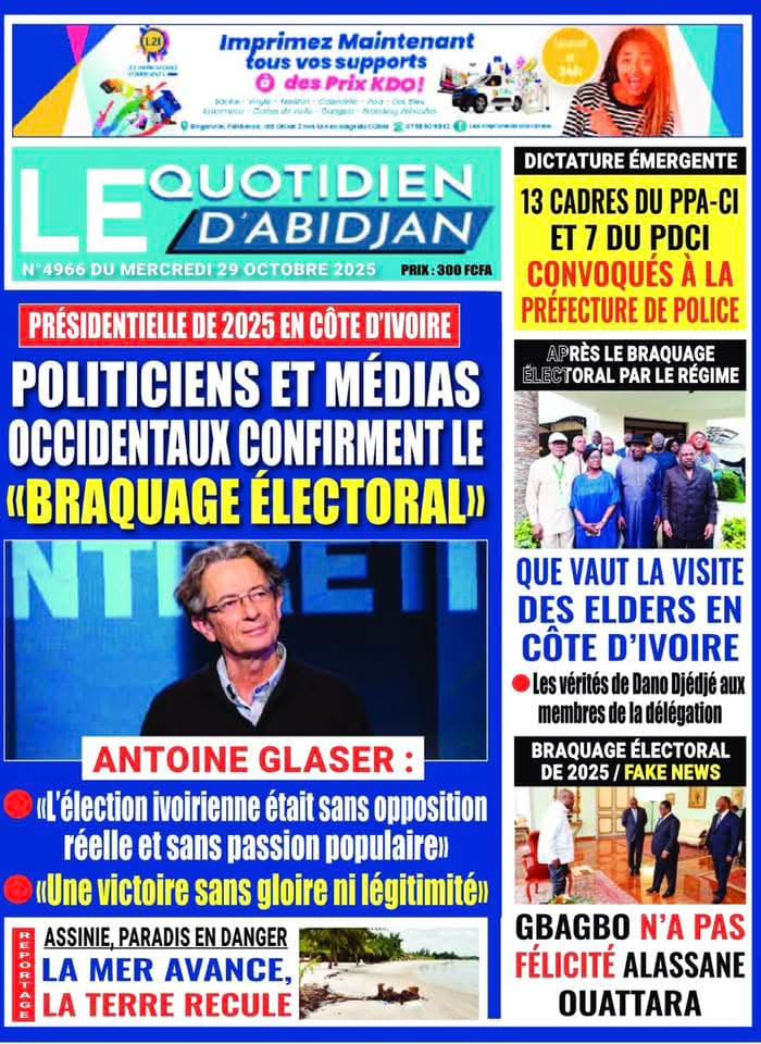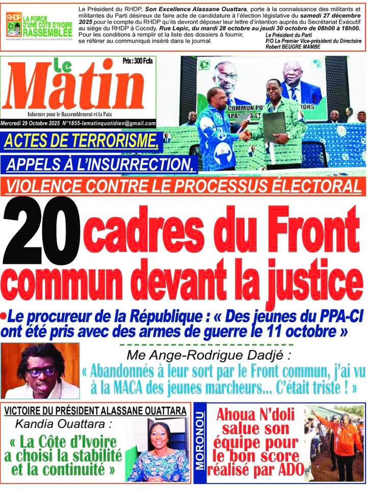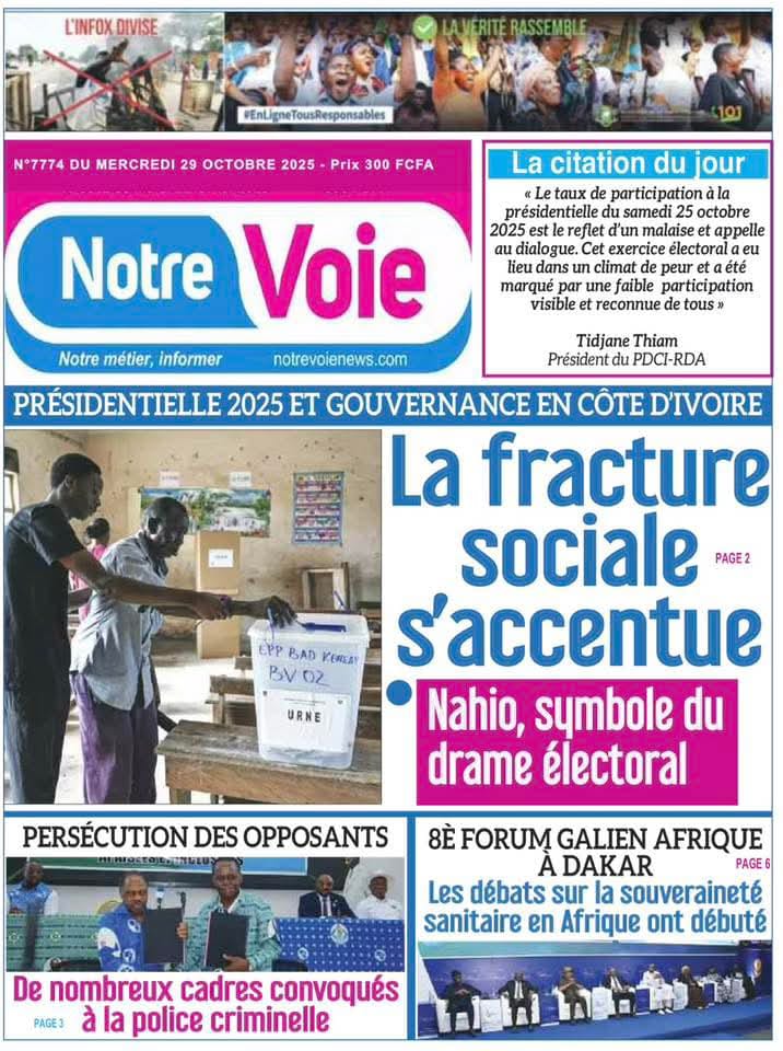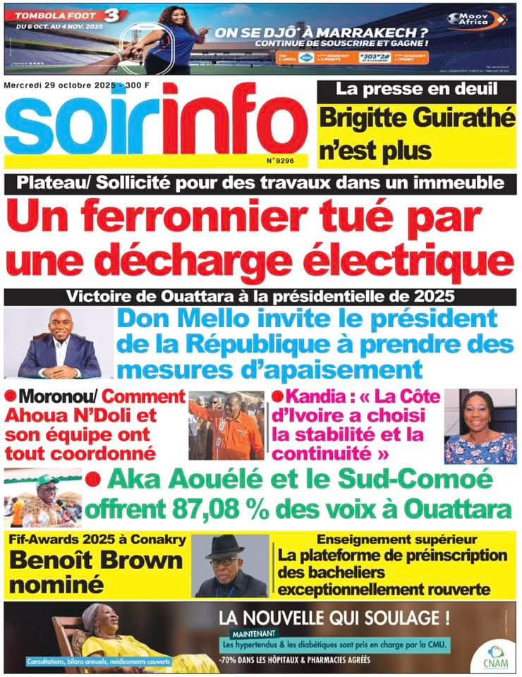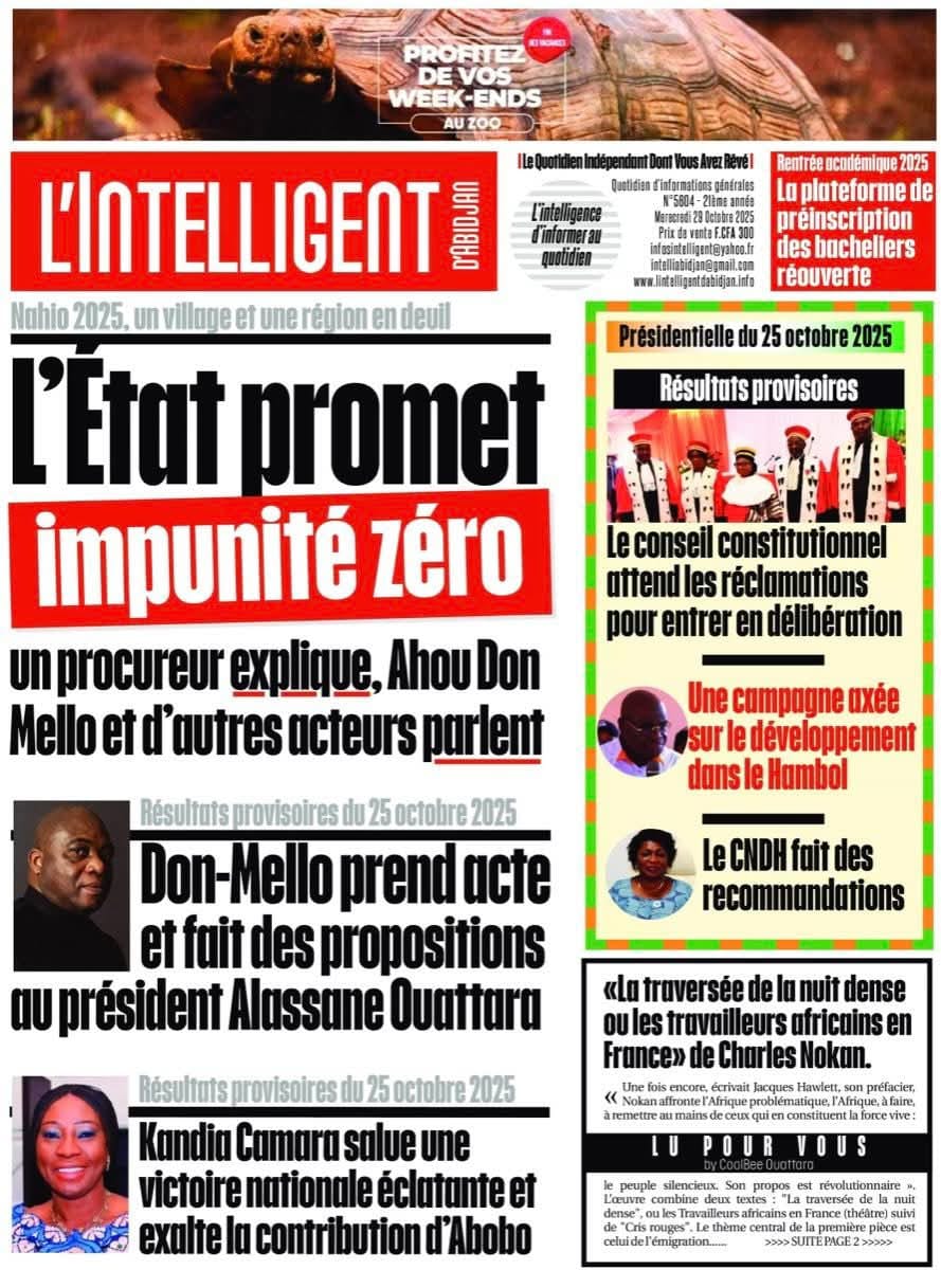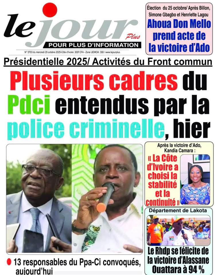 Côte d'Ivoire : la revue de presse du mercredi 29 octobre 2025