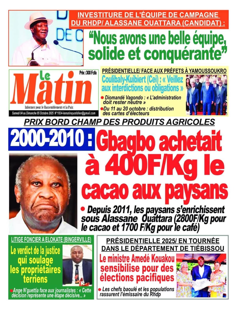 Côte d'Ivoire : la revue de presse du samedi 04 octobre 2025 La revue des titres de Côte d'Ivoire
