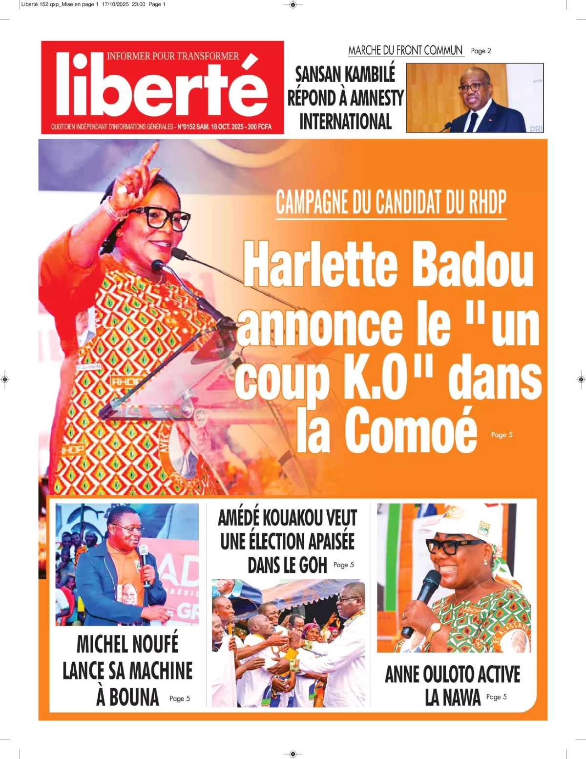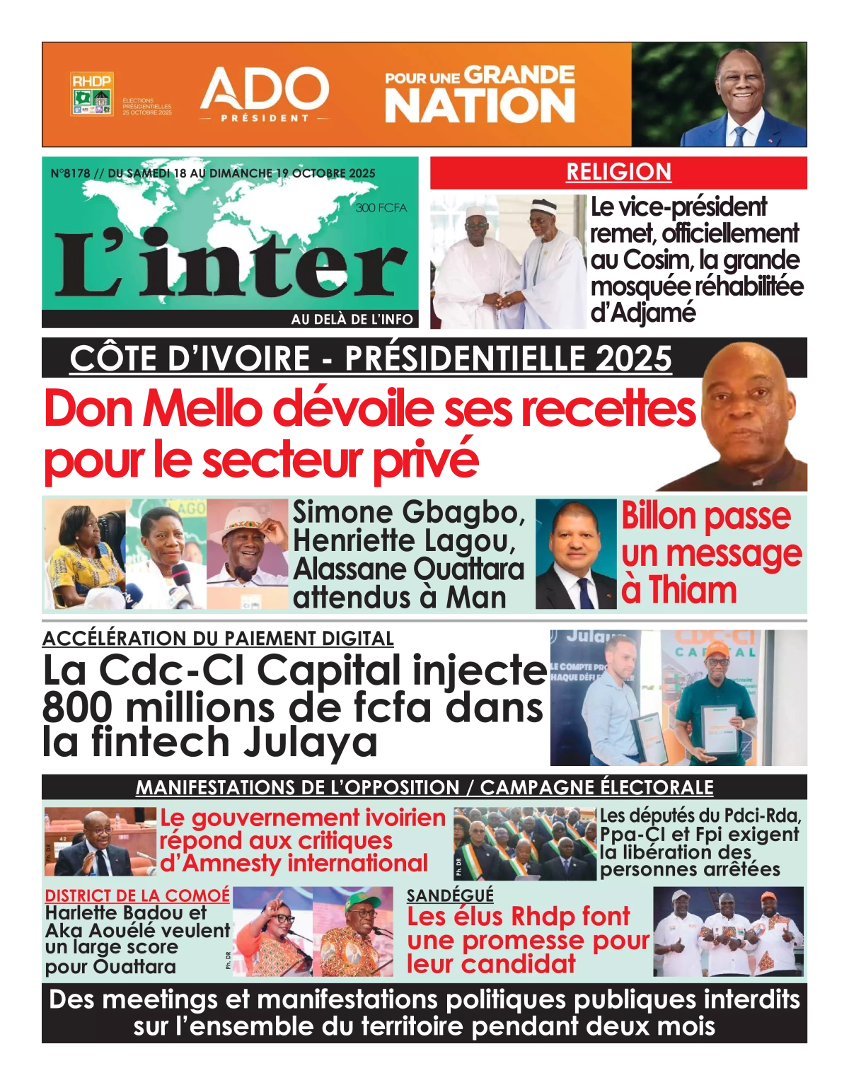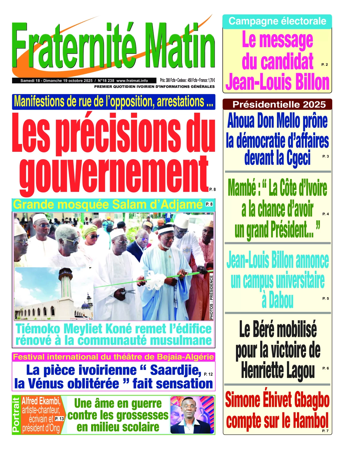 Côte d'Ivoire : la revue de presse du samedi 18 octobre 2025 La revue des titres de Côte d'Ivoire