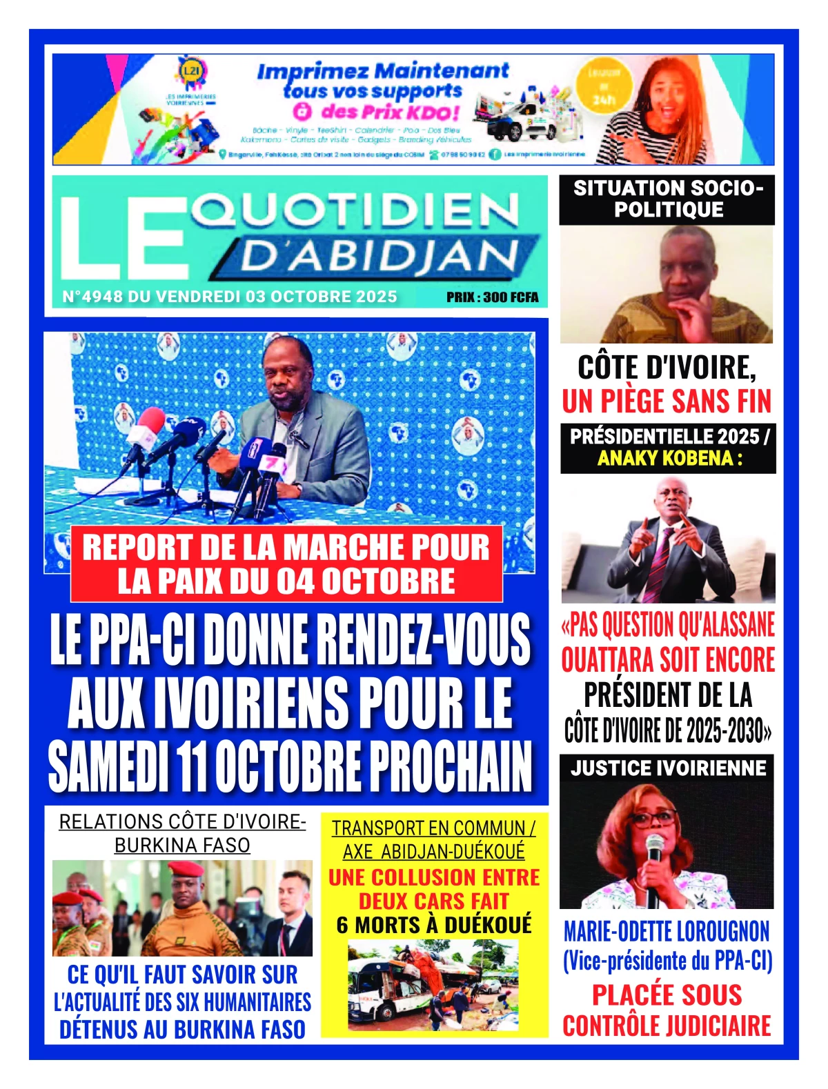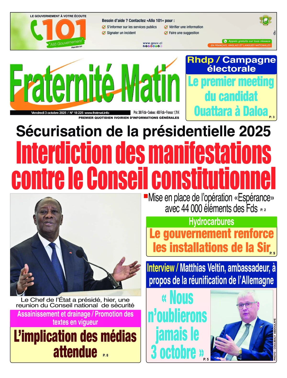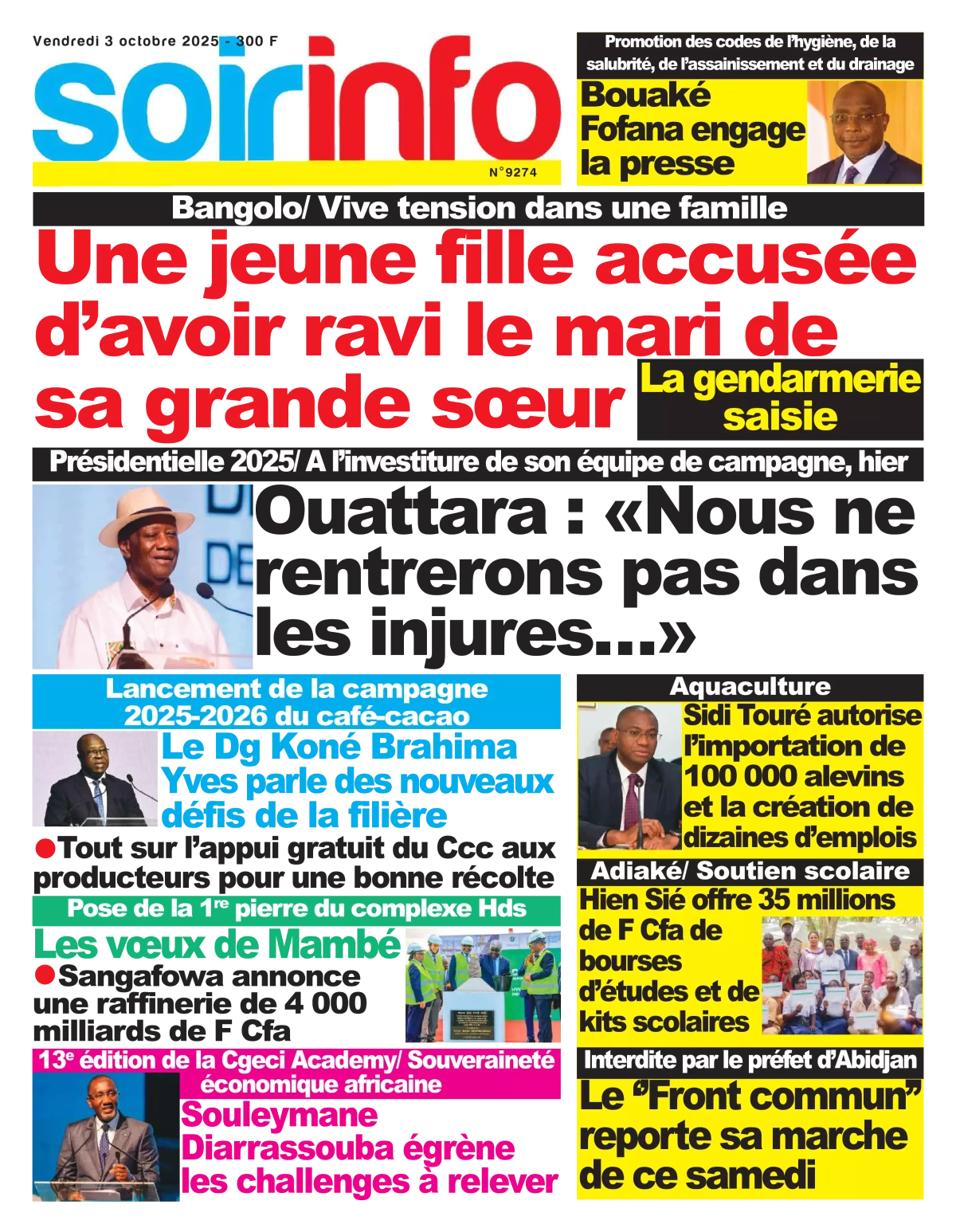 Côte d’Ivoire : la revue de presse du vendredi 03 octobre 2025