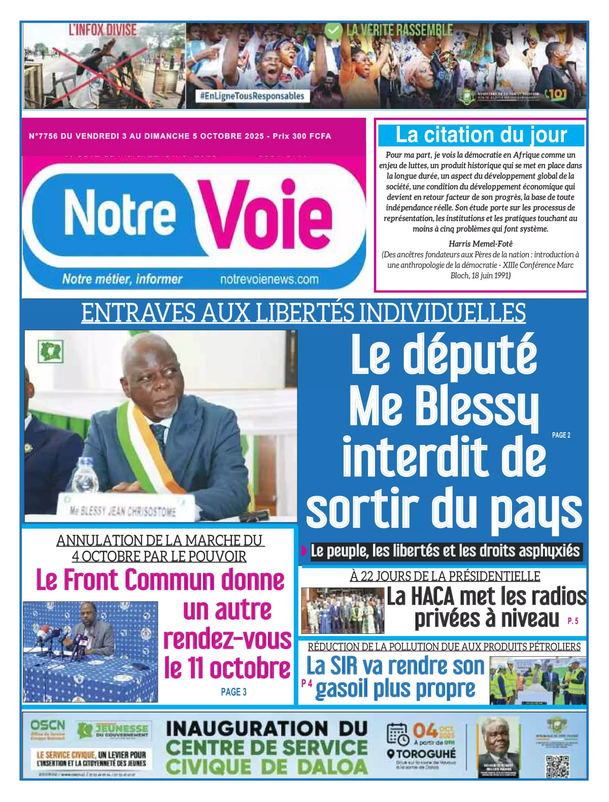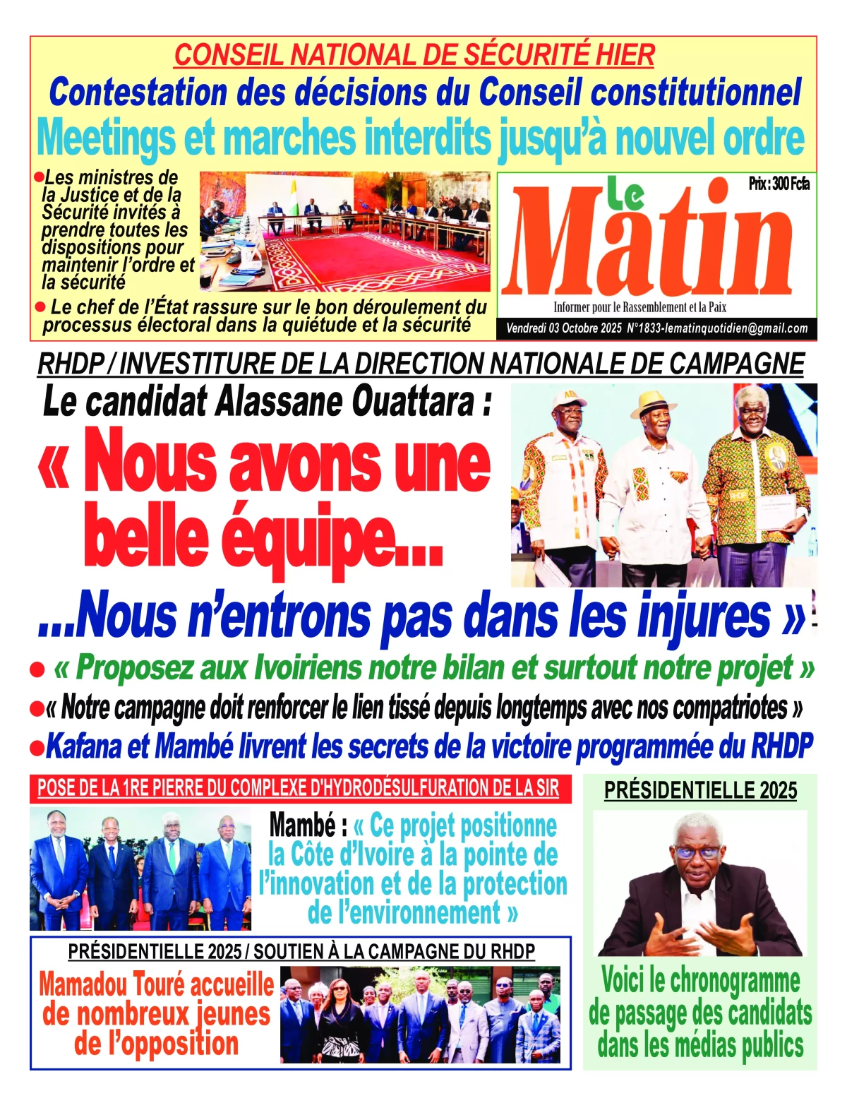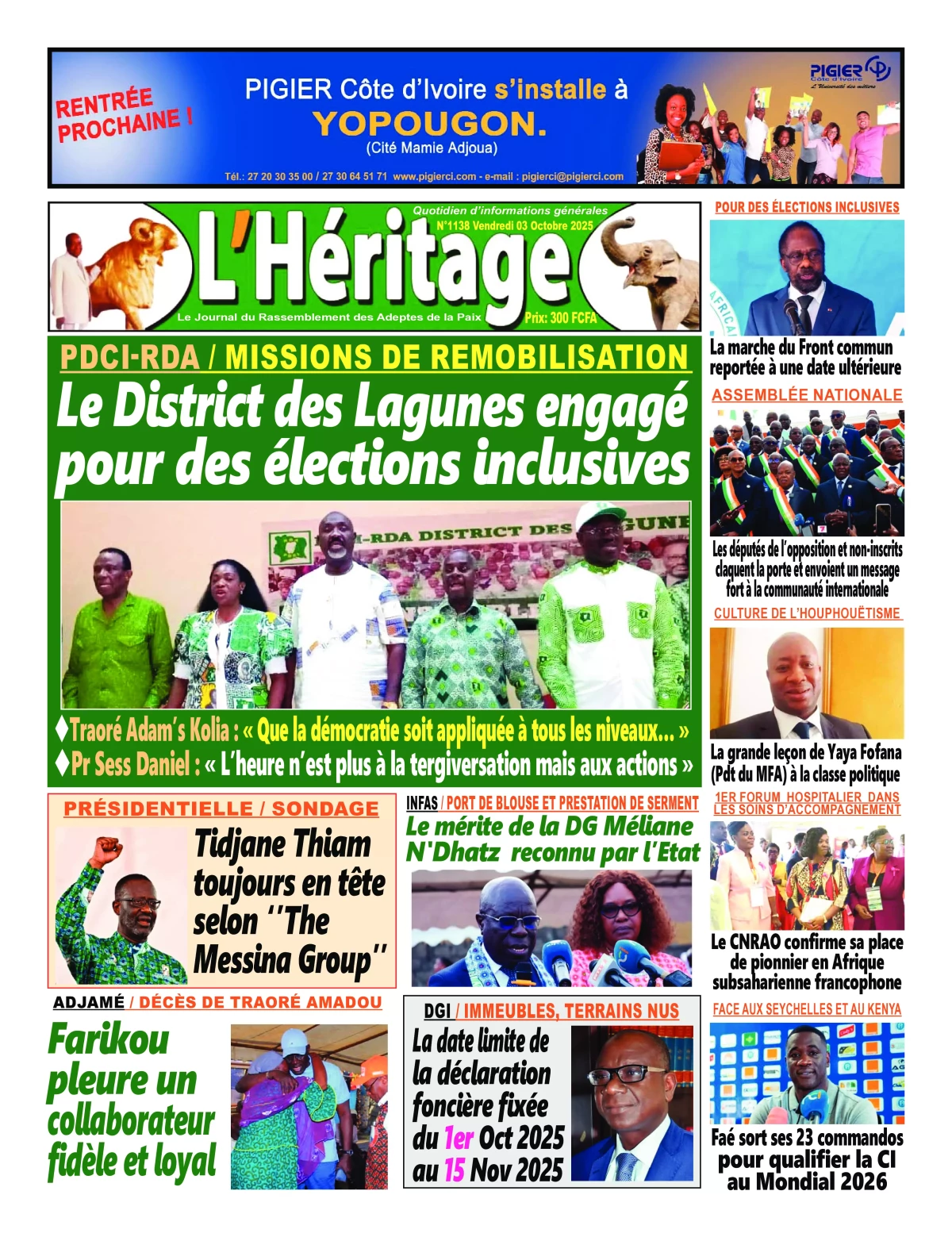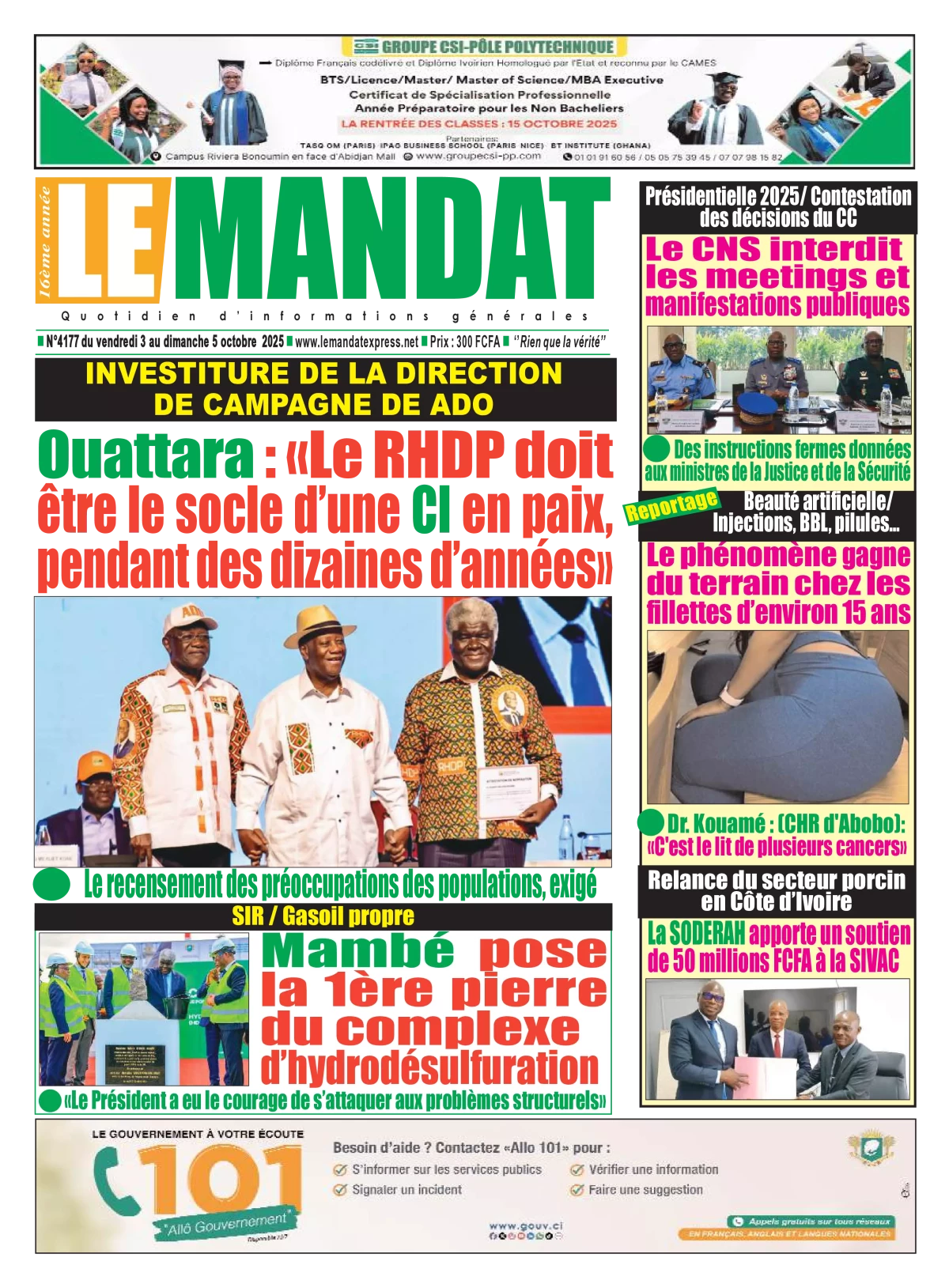 Côte d’Ivoire : la revue de presse du vendredi 03 octobre 2025