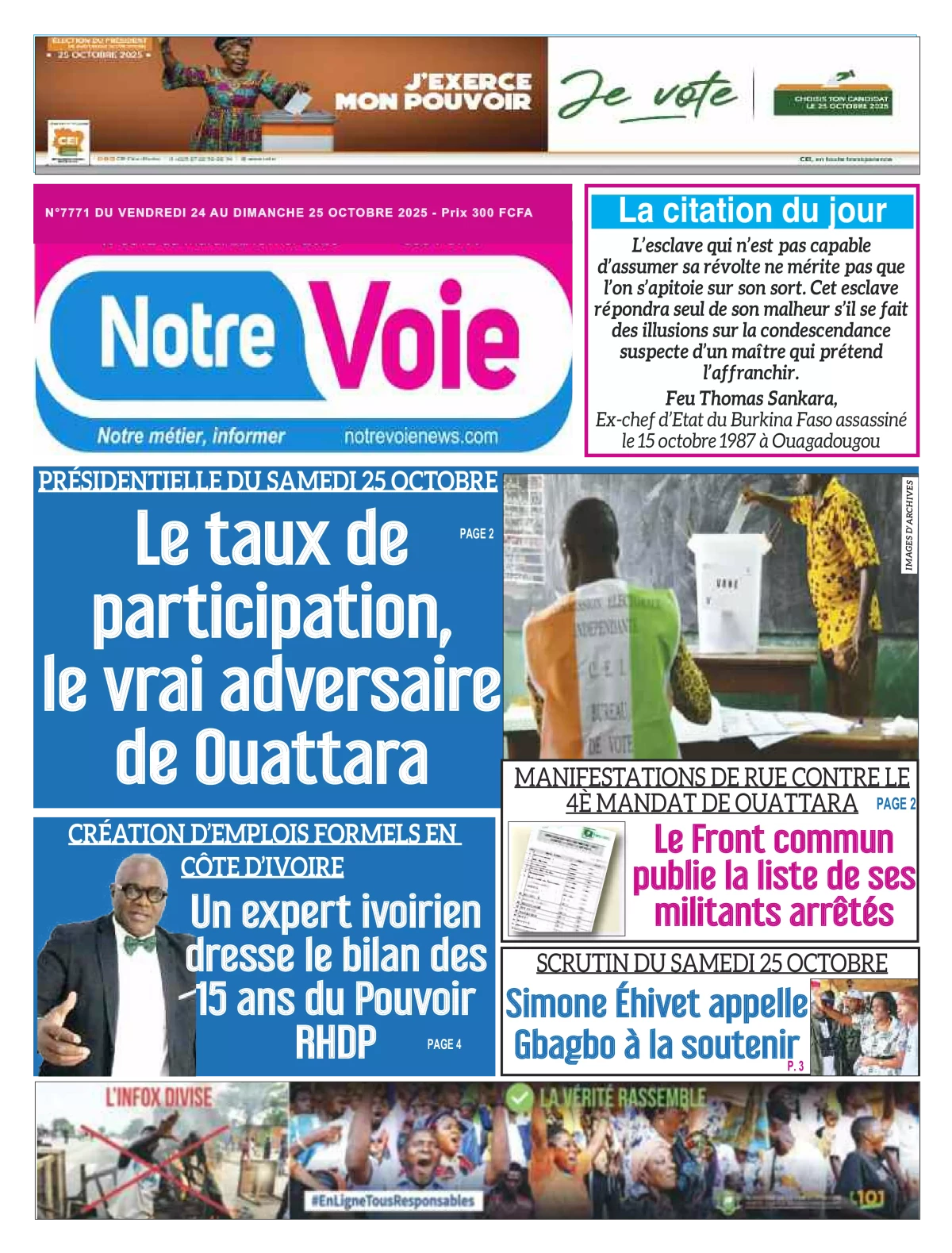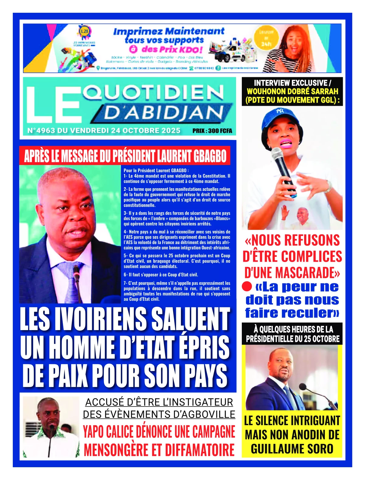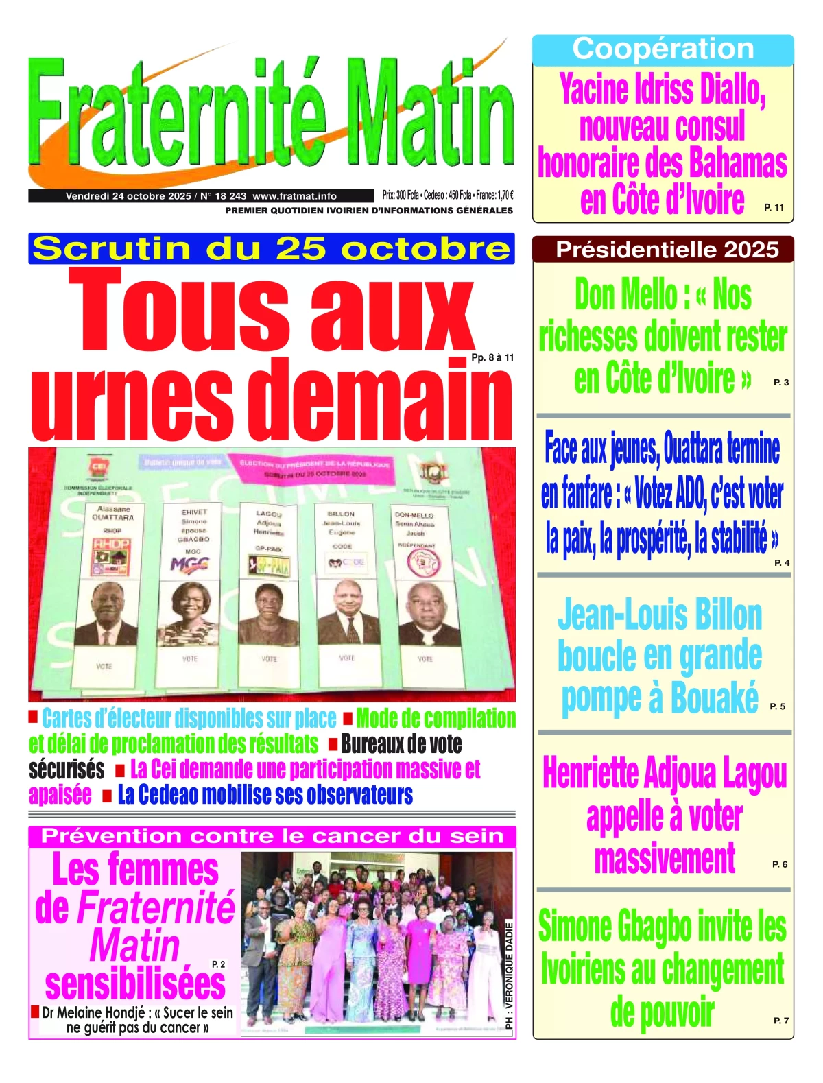 Côte d'Ivoire : la revue de presse du vendredi 24 octobre 2025