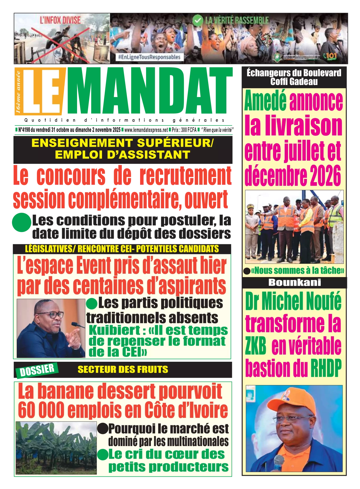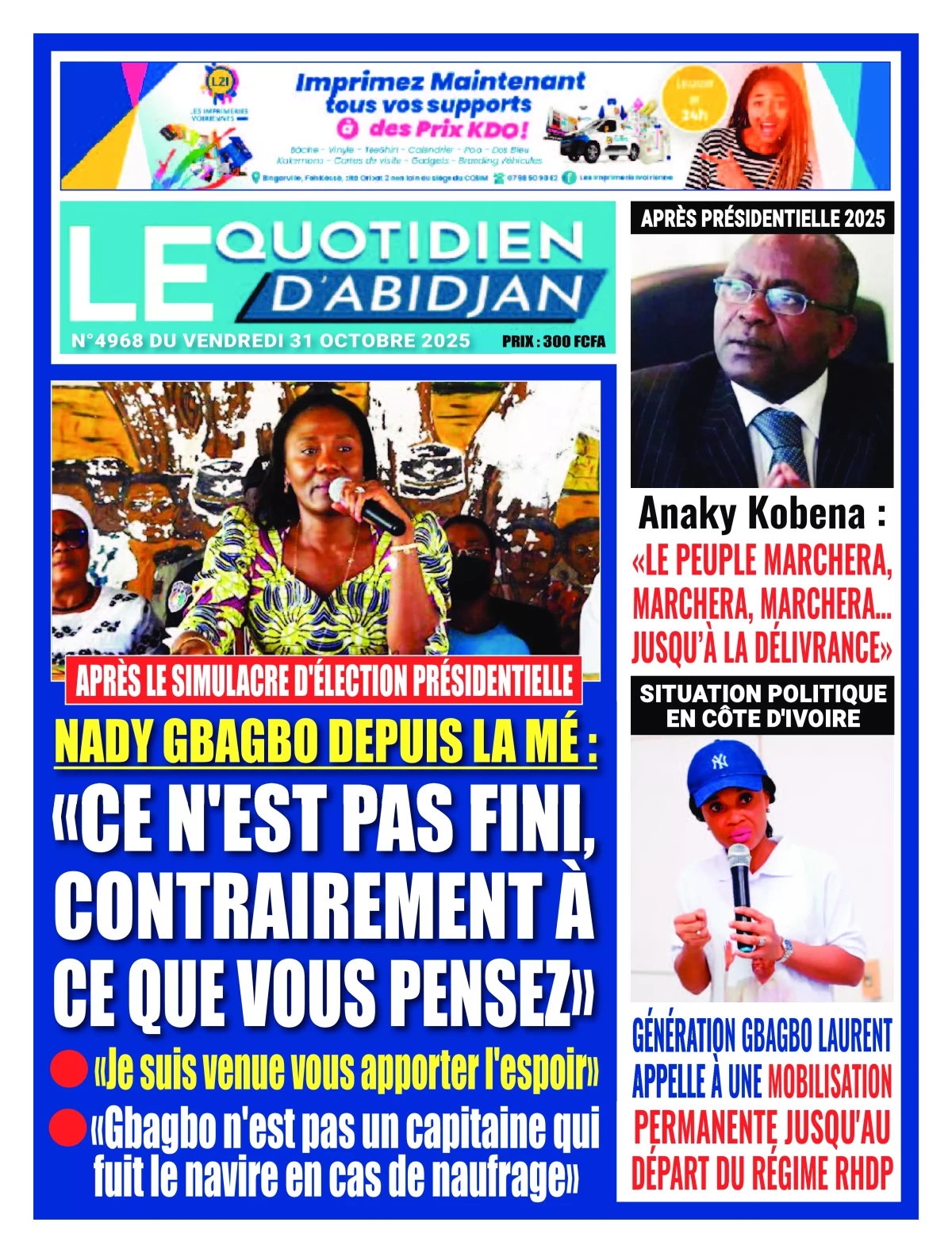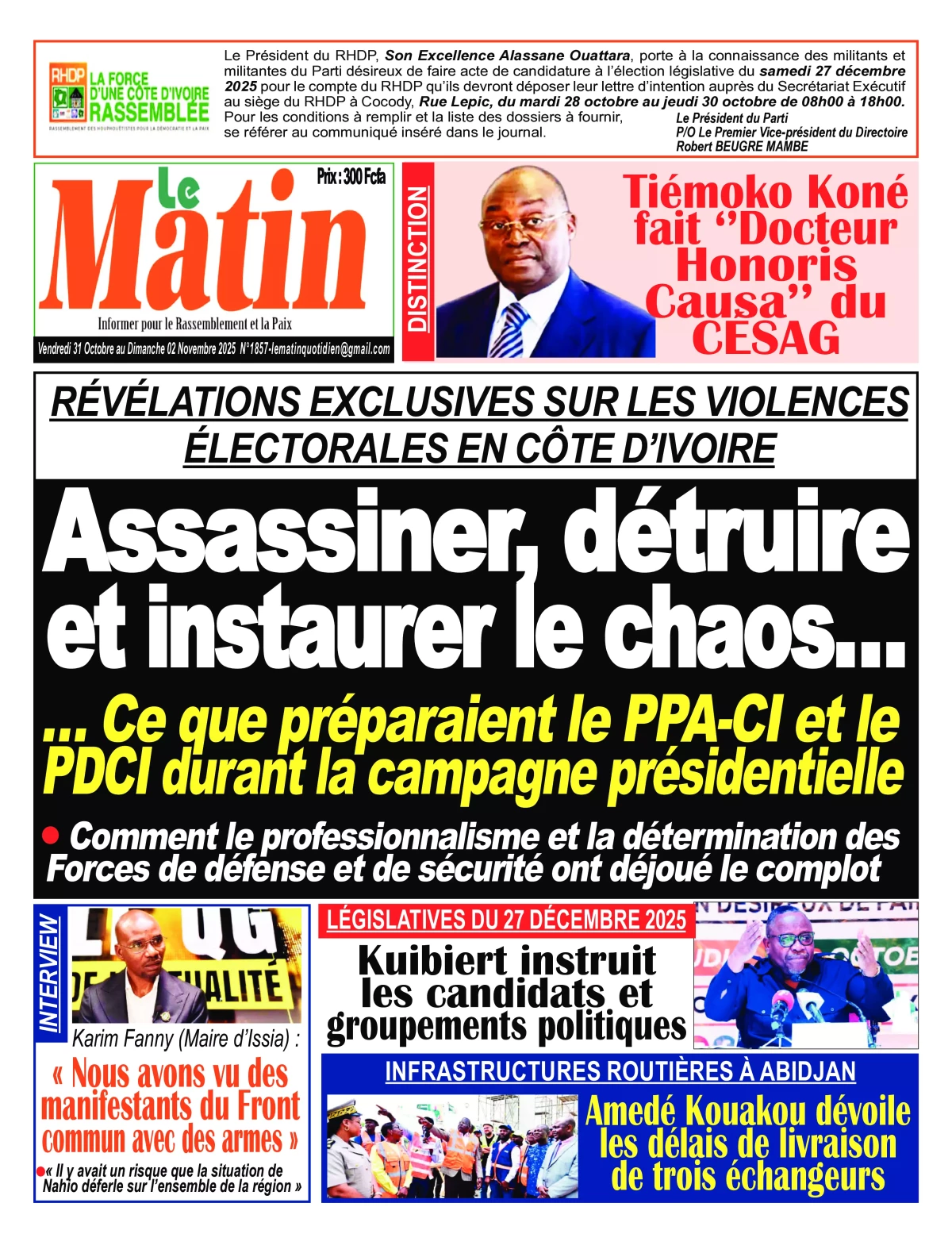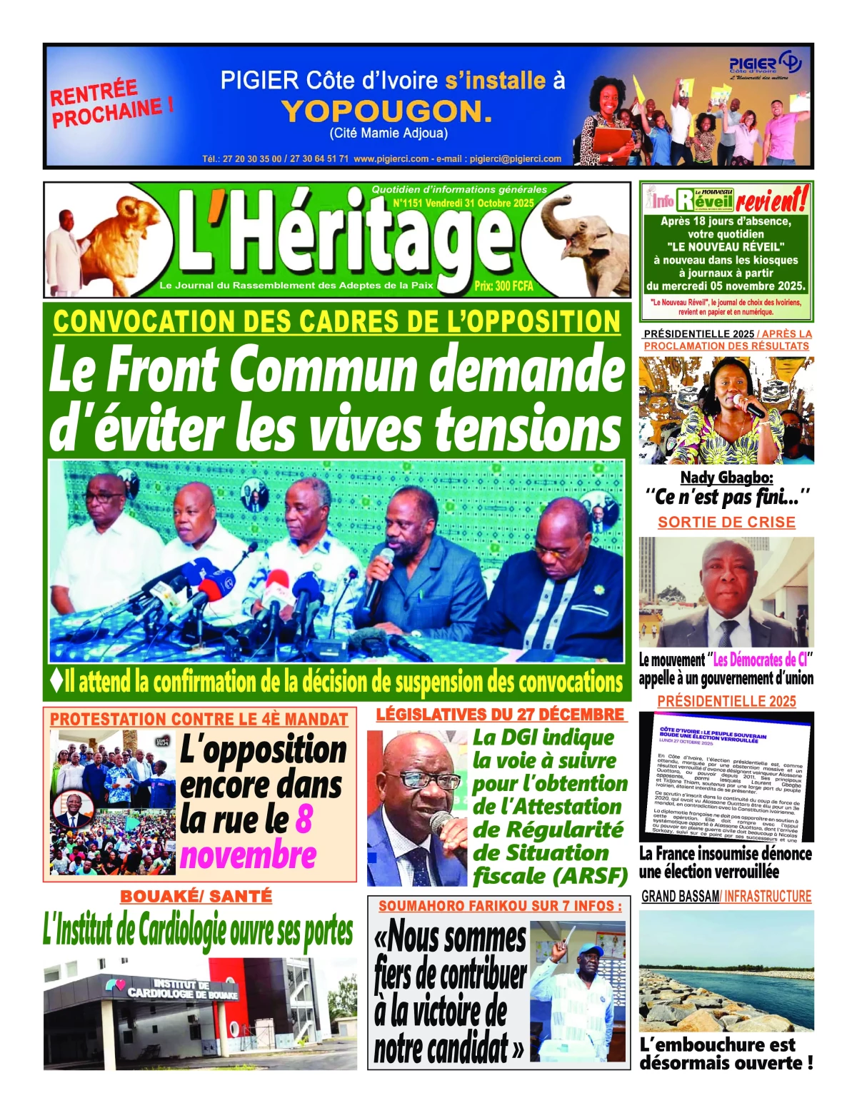 Côte d'Ivoire : la revue de presse du vendredi 31 octobre 2025 La revue des titres de Côte d'Ivoire