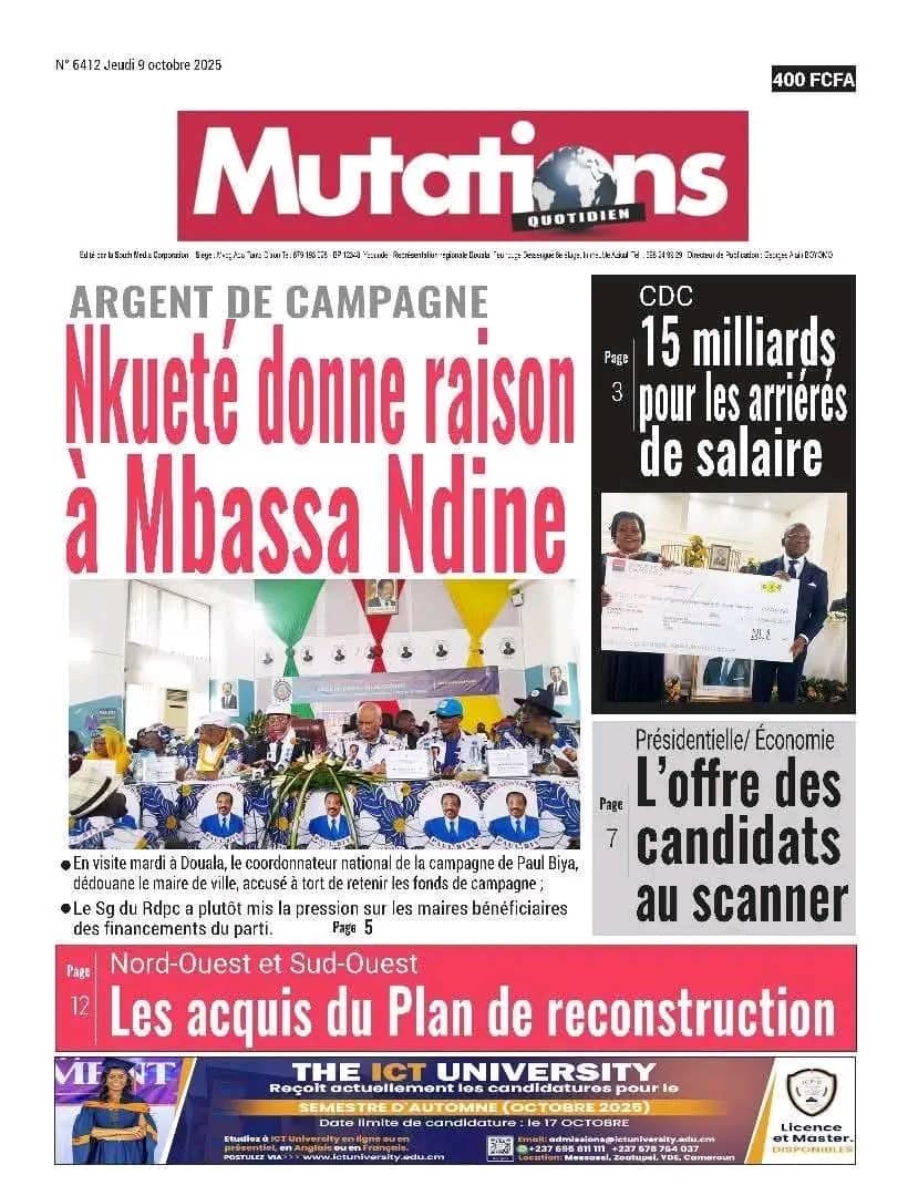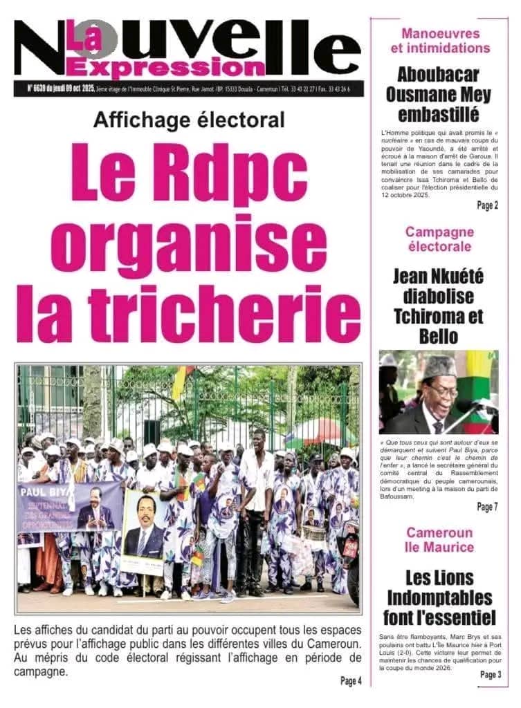 Cameroun : la revue de presse du jeudi 09 octobre 2025