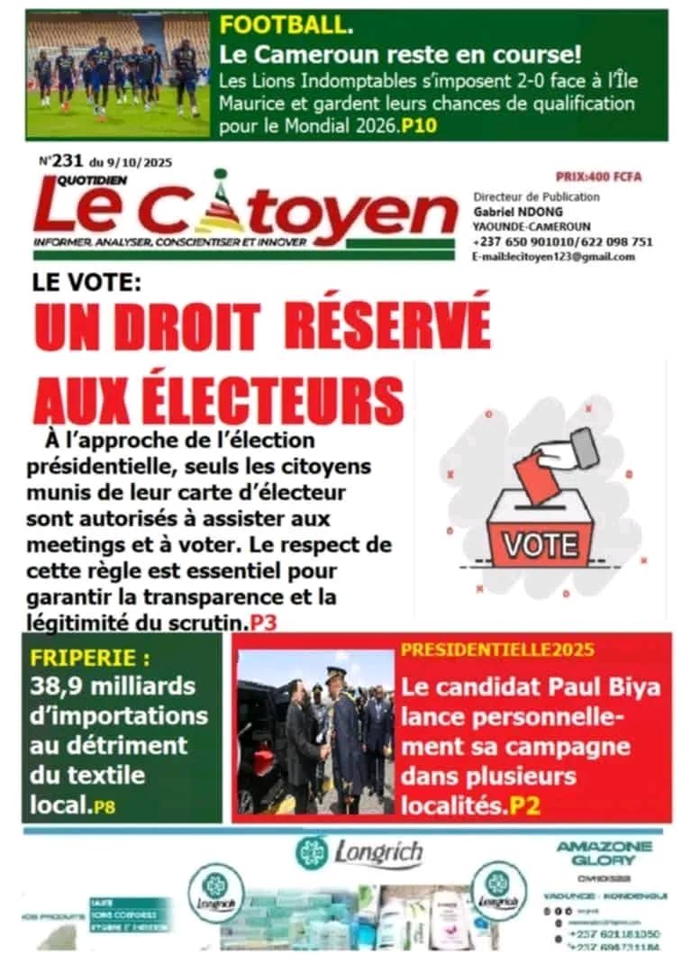 Photos. La revue de presse du Cameroun du jeudi 09 octobre 2025
