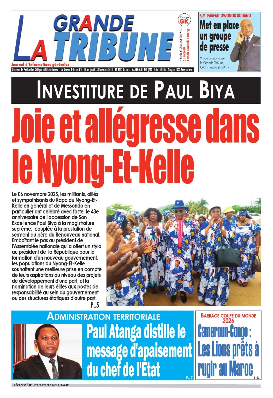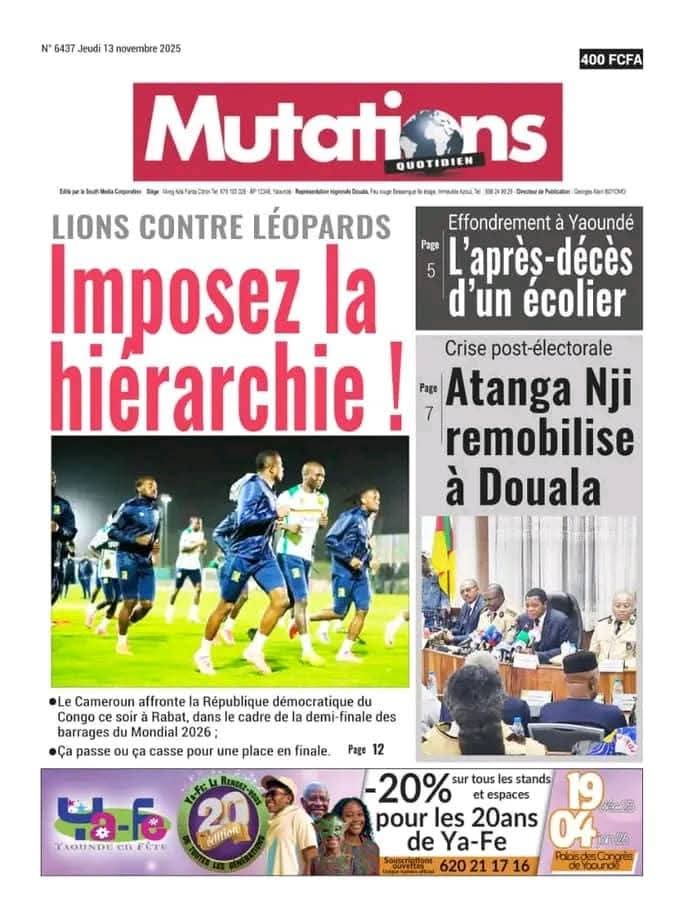 Photos. La revue de presse du Cameroun du jeudi 13 novembre 2025