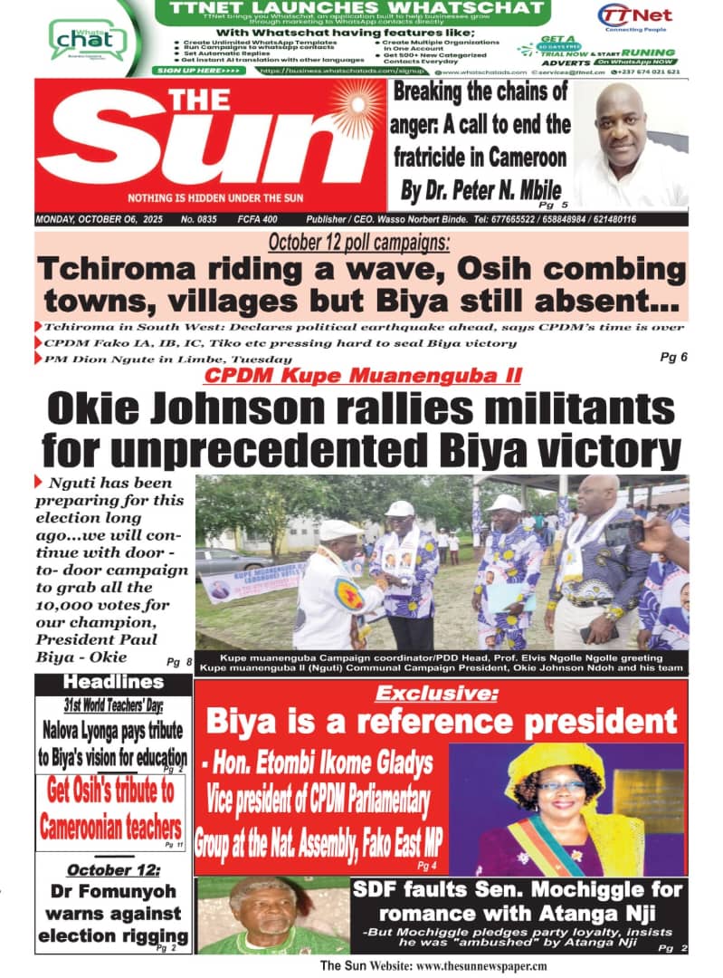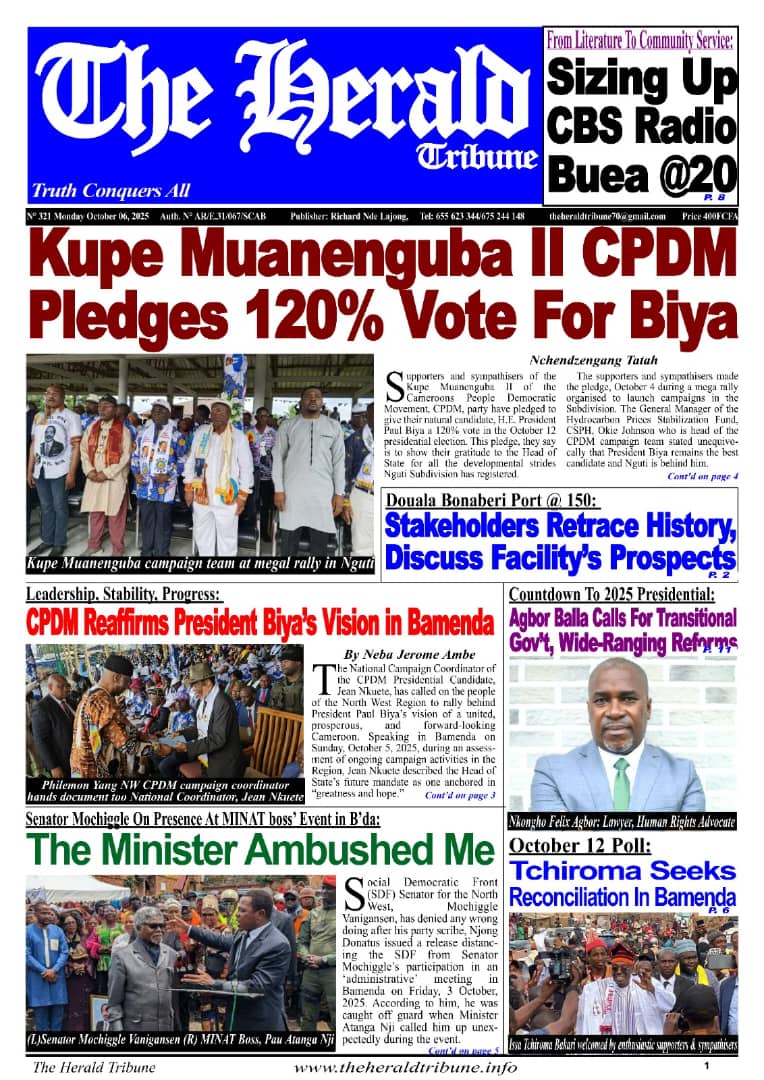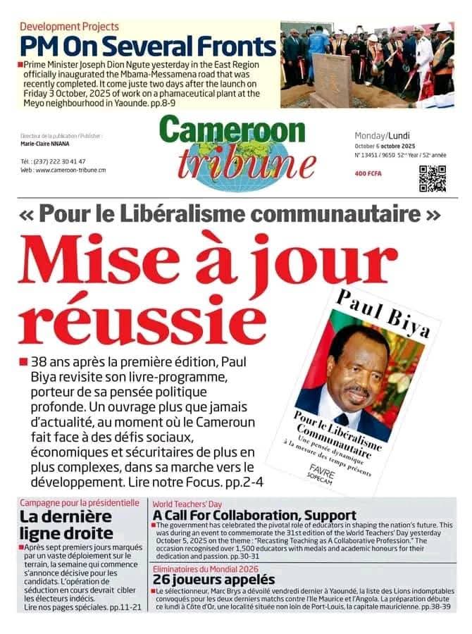 Cameroun : la revue de presse du lundi 06 octobre 2025 La revue des titres du Cameroun