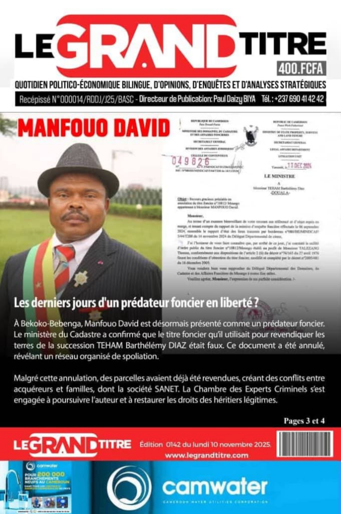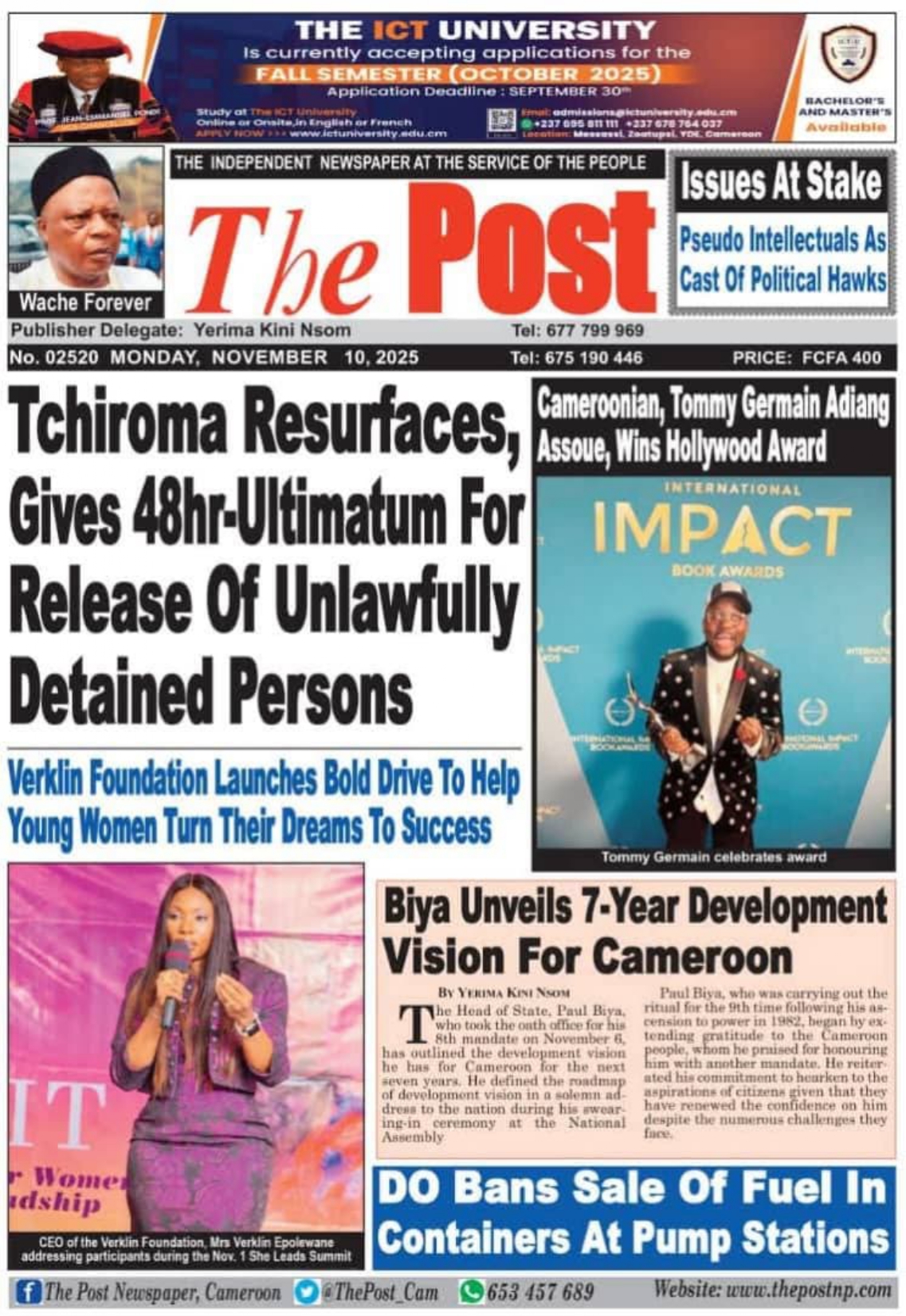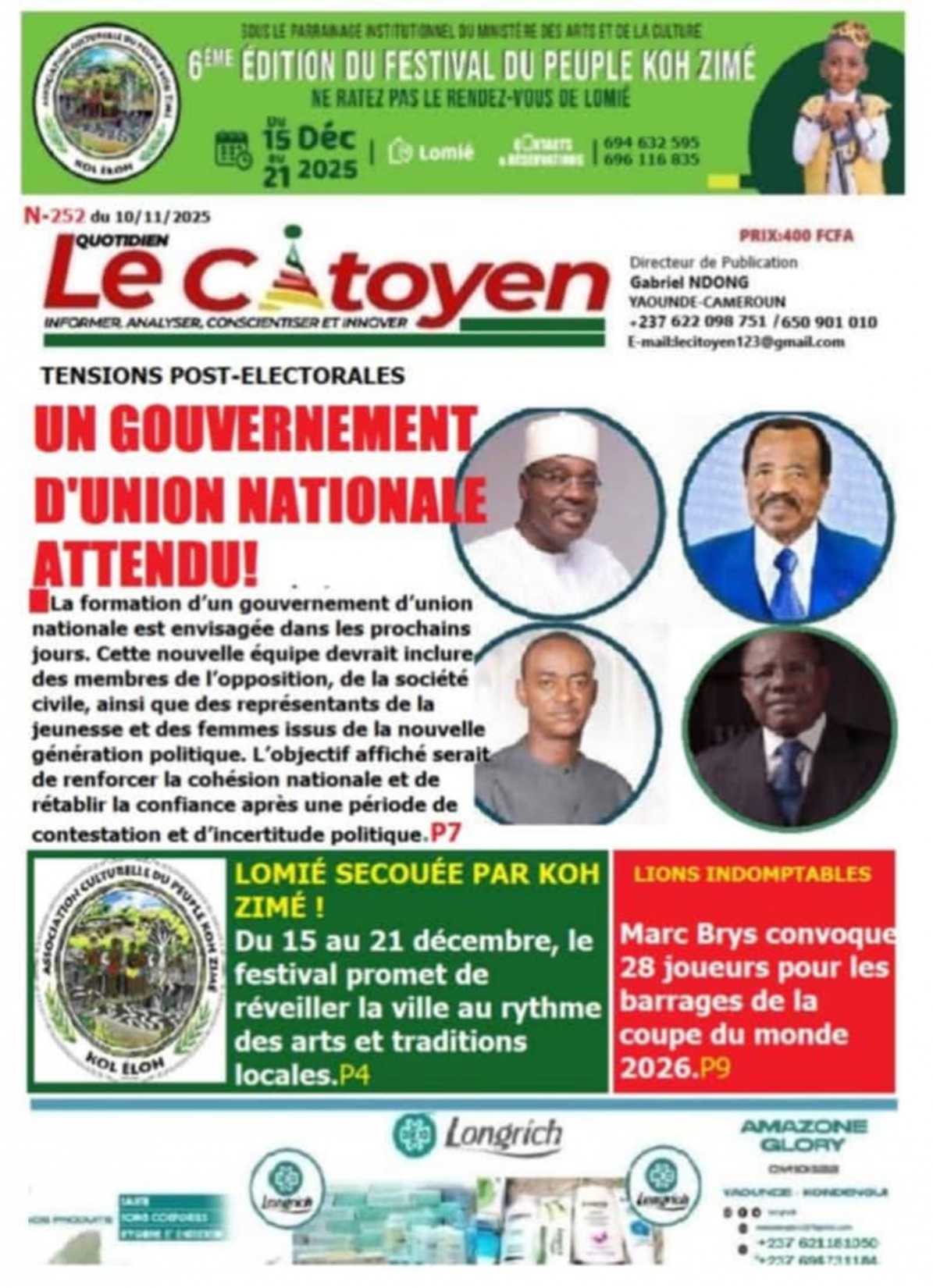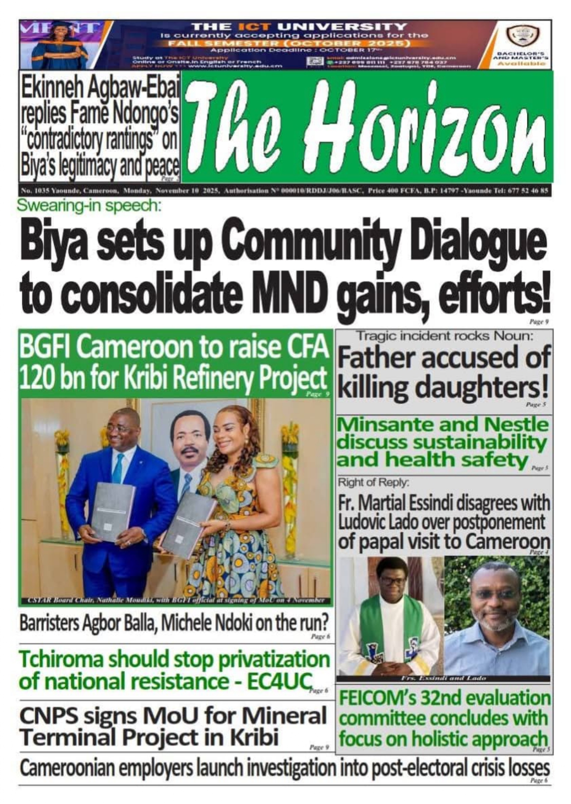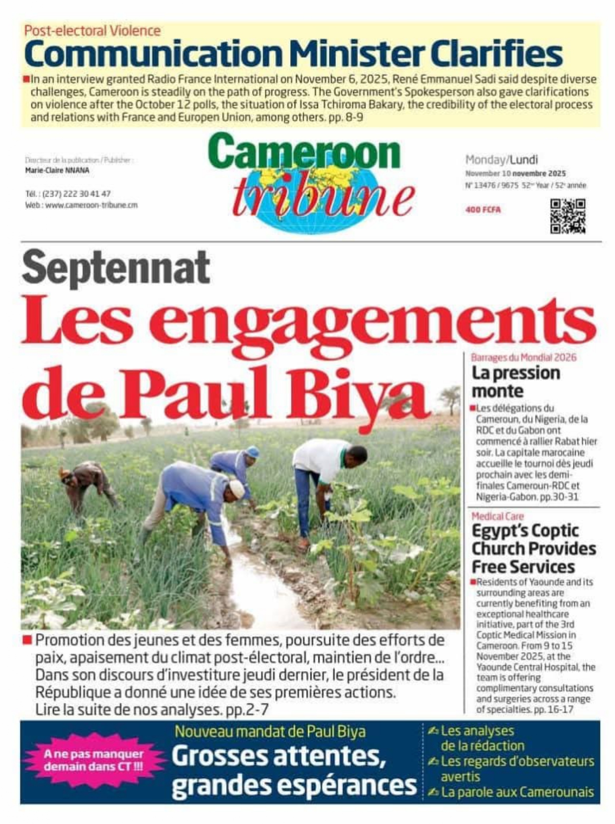 Photos. La revue de presse du Cameroun du lundi 10 novembre 2025