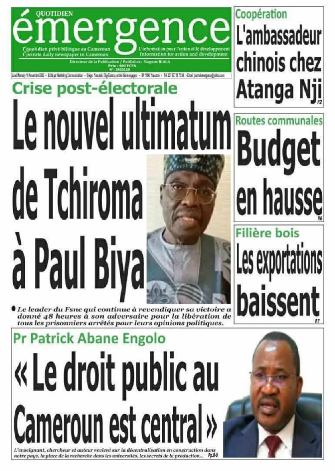 Cameroun : la revue de presse du lundi 10 novembre 2025