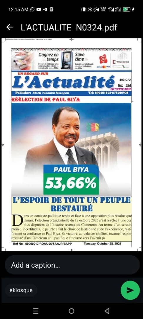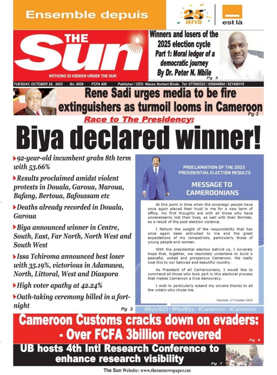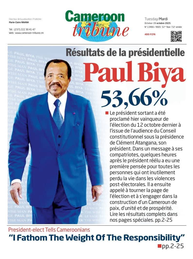 Photos. La revue de presse du Cameroun du mardi 28 octobre 2025