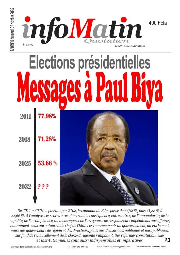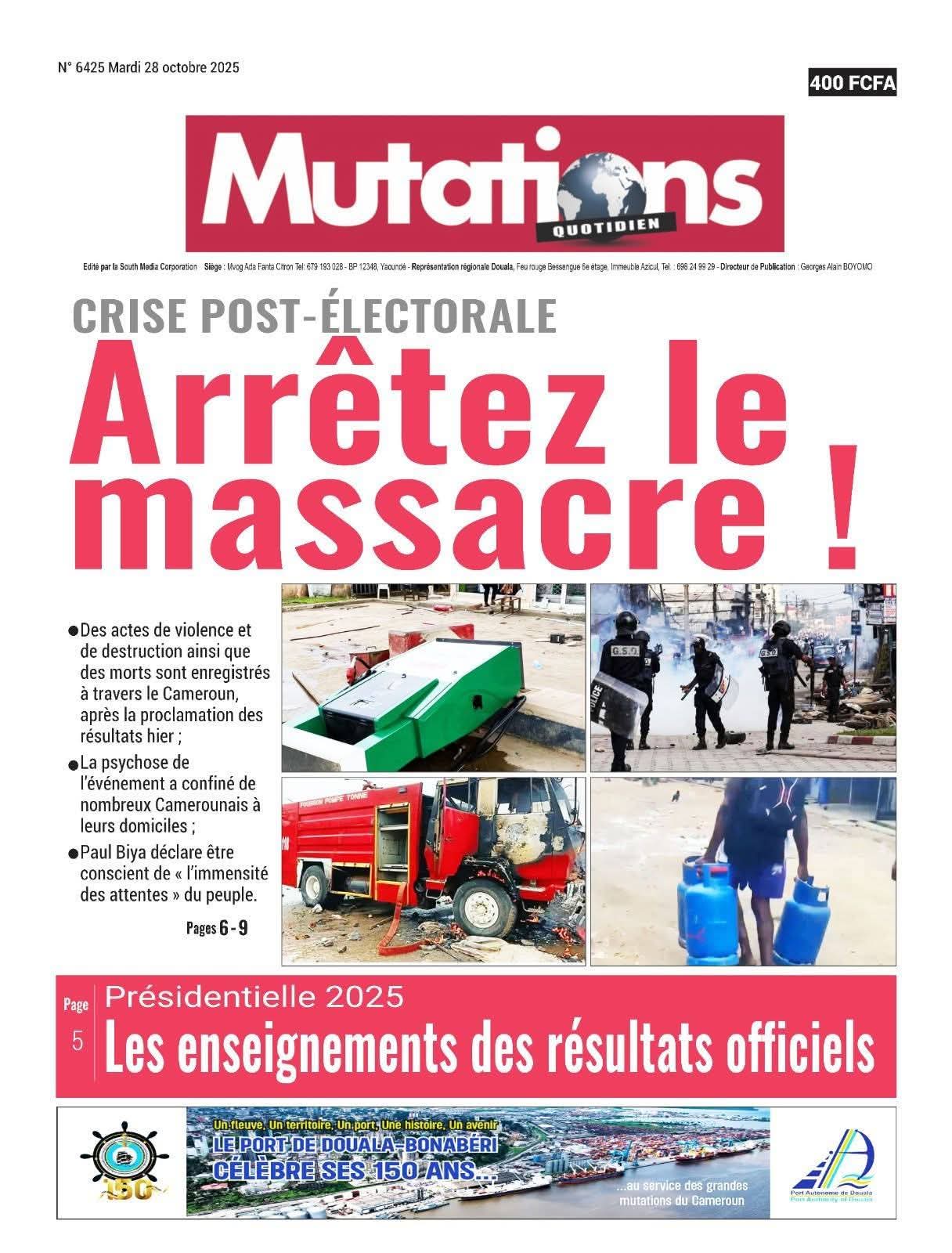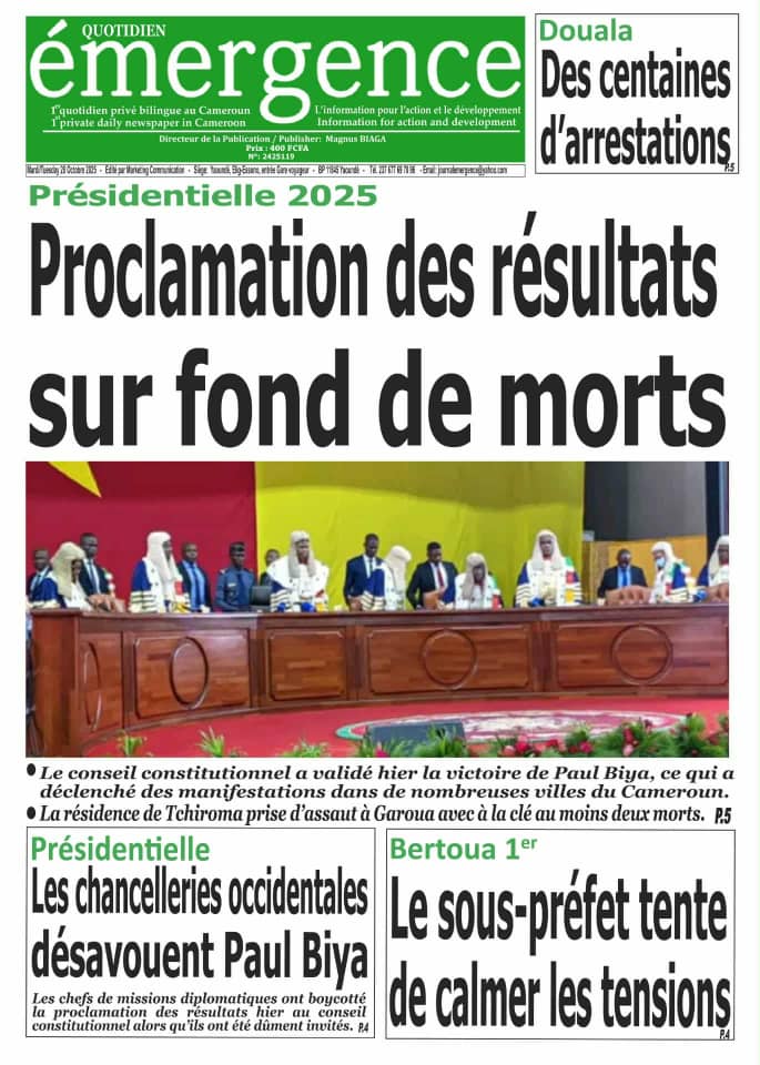 Cameroun : la revue de presse du mardi 28 octobre 2025