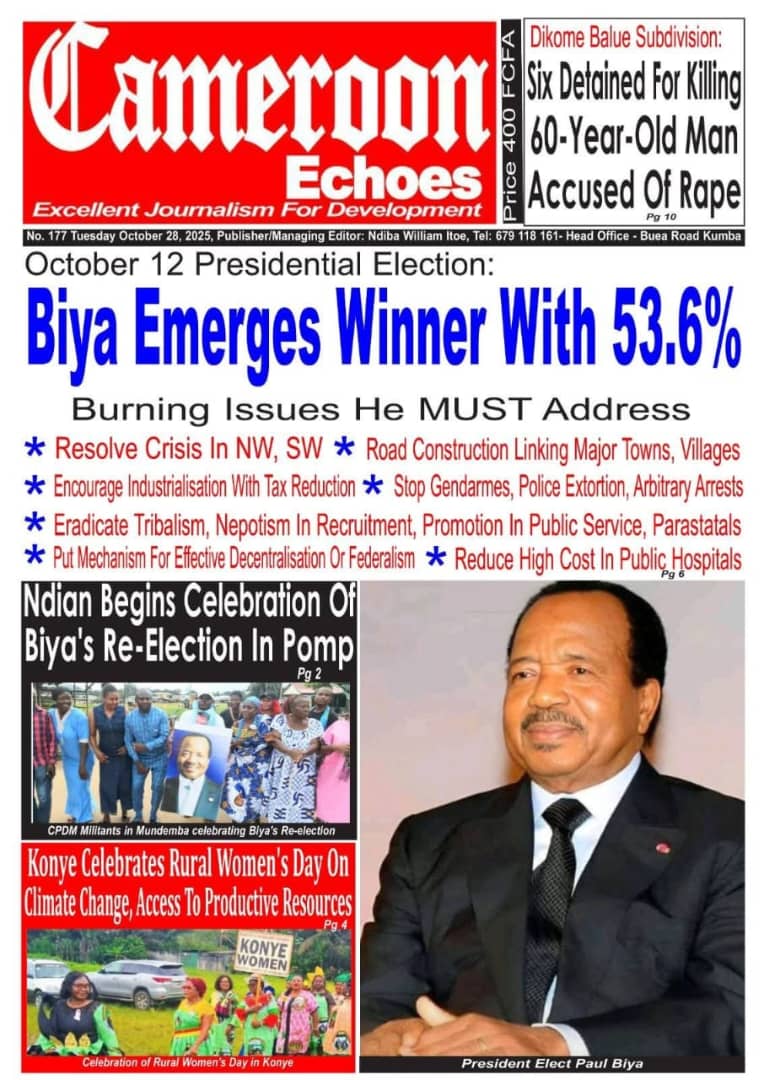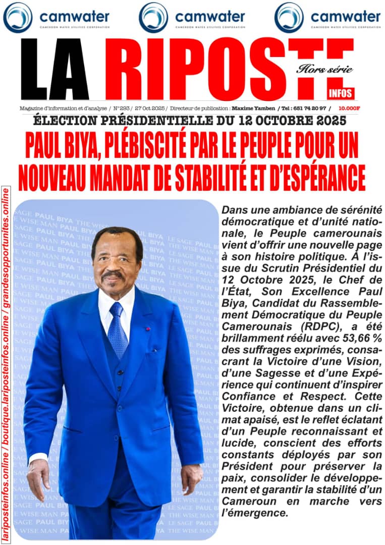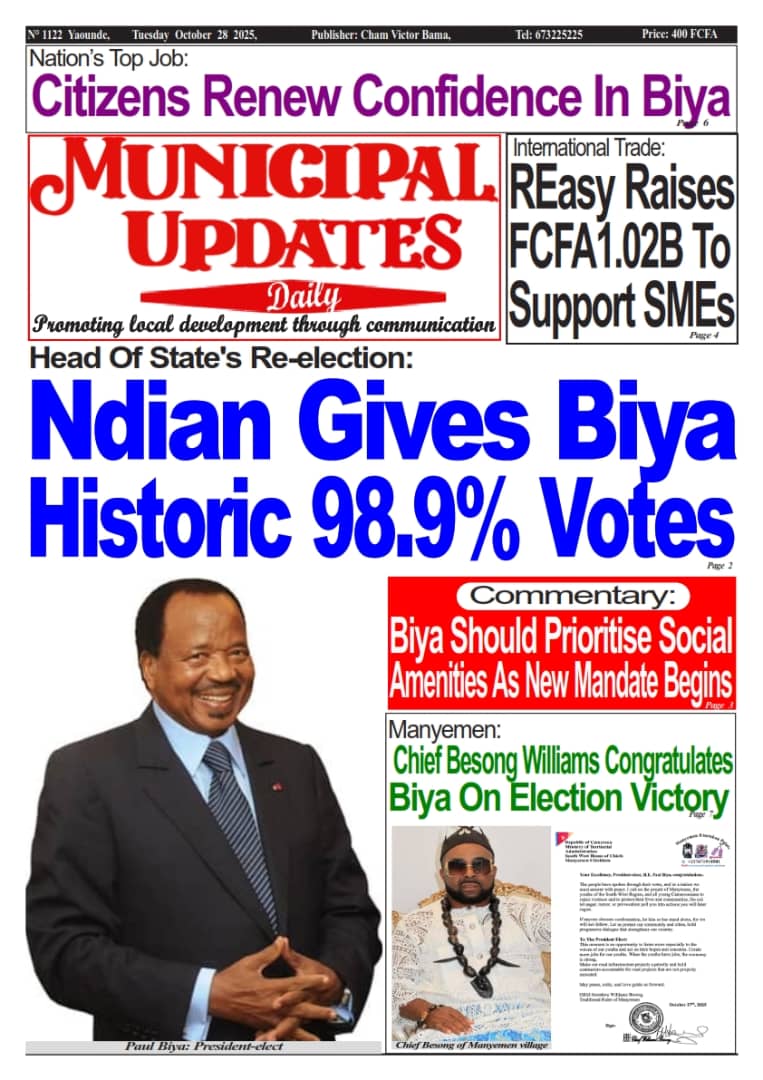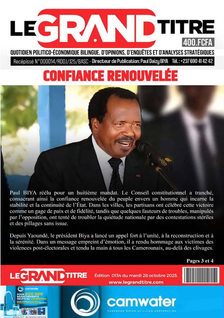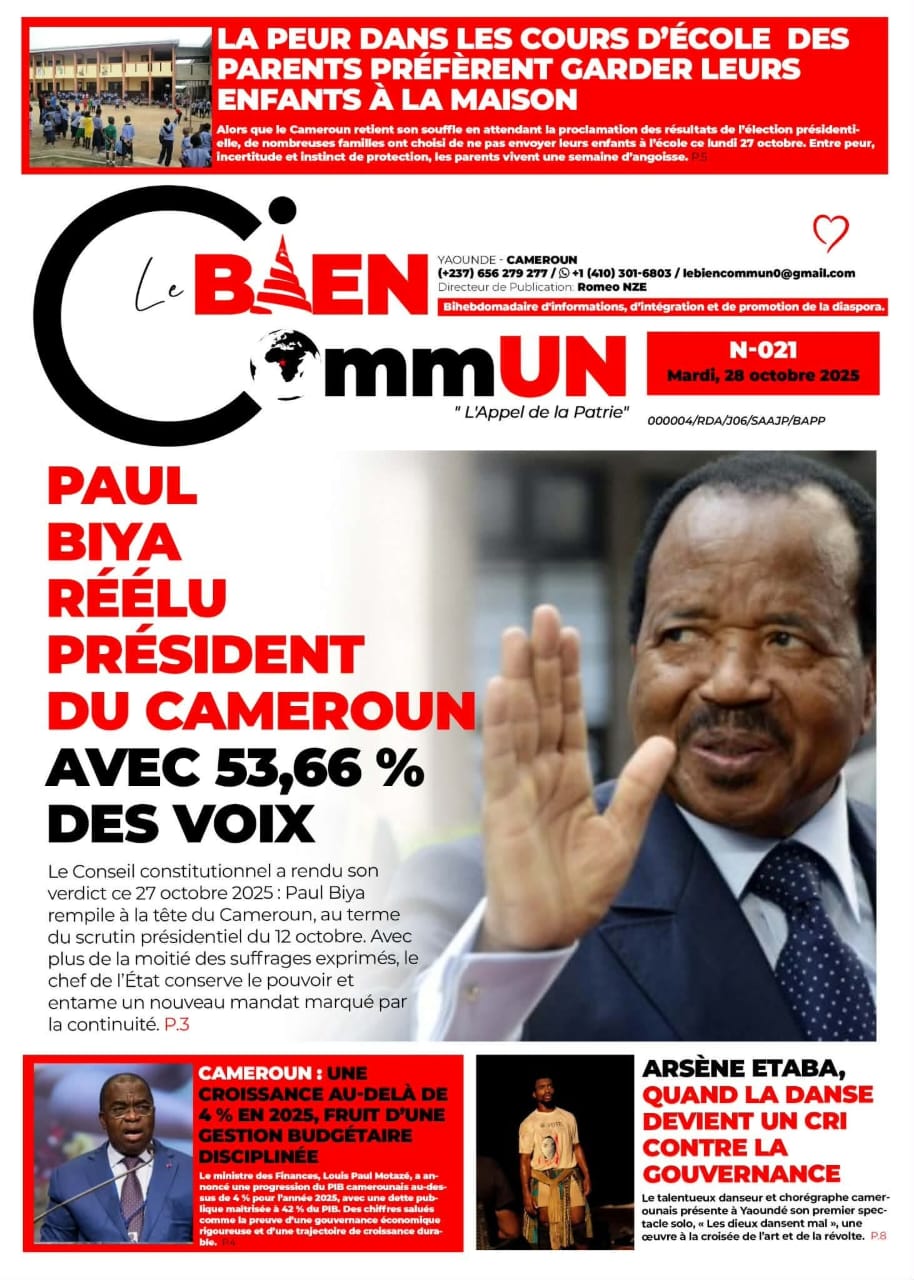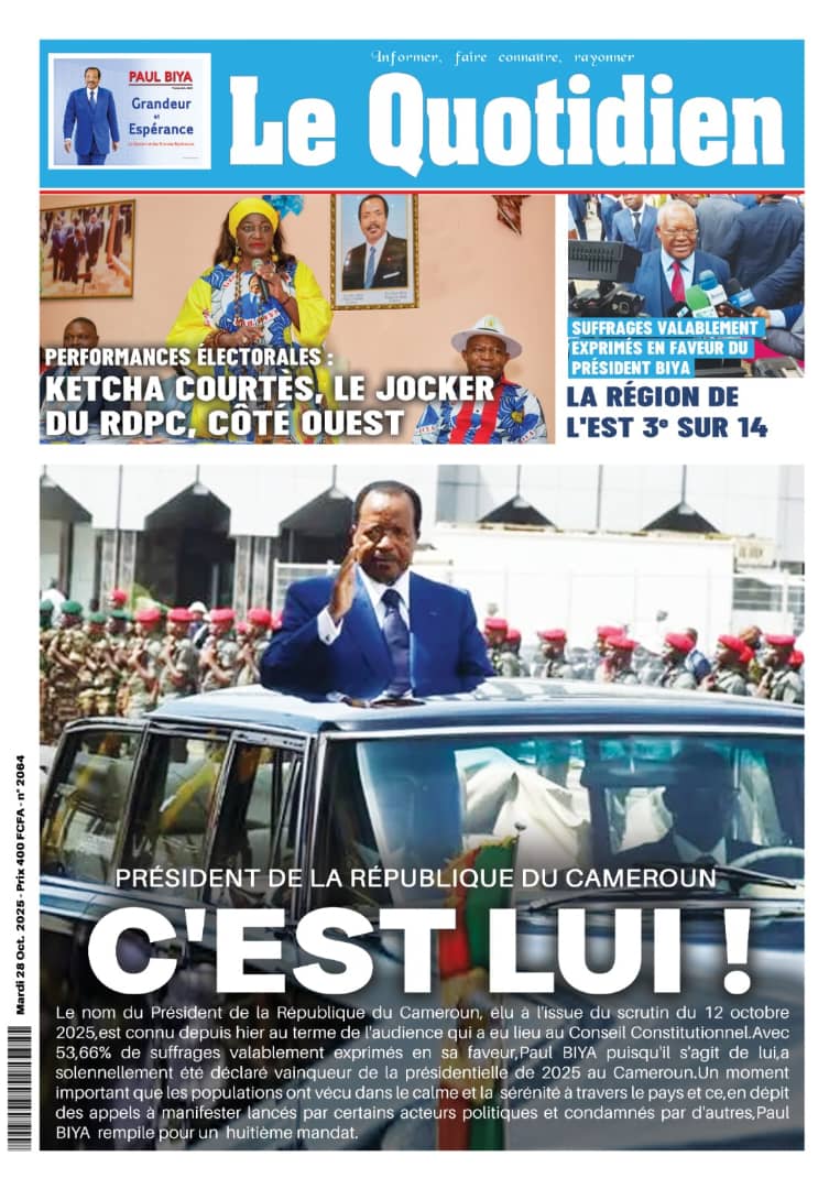 Cameroun : la revue de presse du mardi 28 octobre 2025 revient largement sur la victoire du Président Paul Biya pour un 8e mandat, à l’issue de l’élection du 12 octobre.
