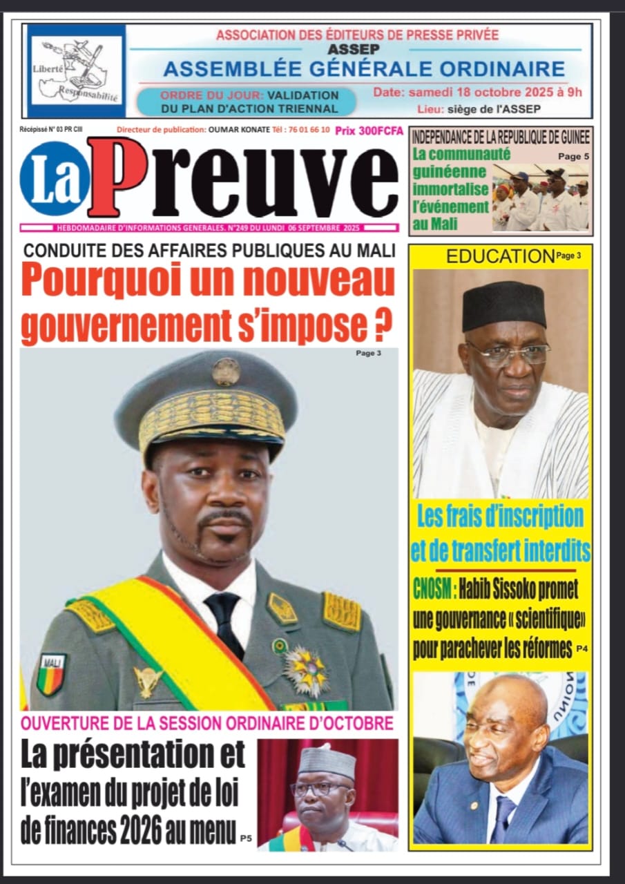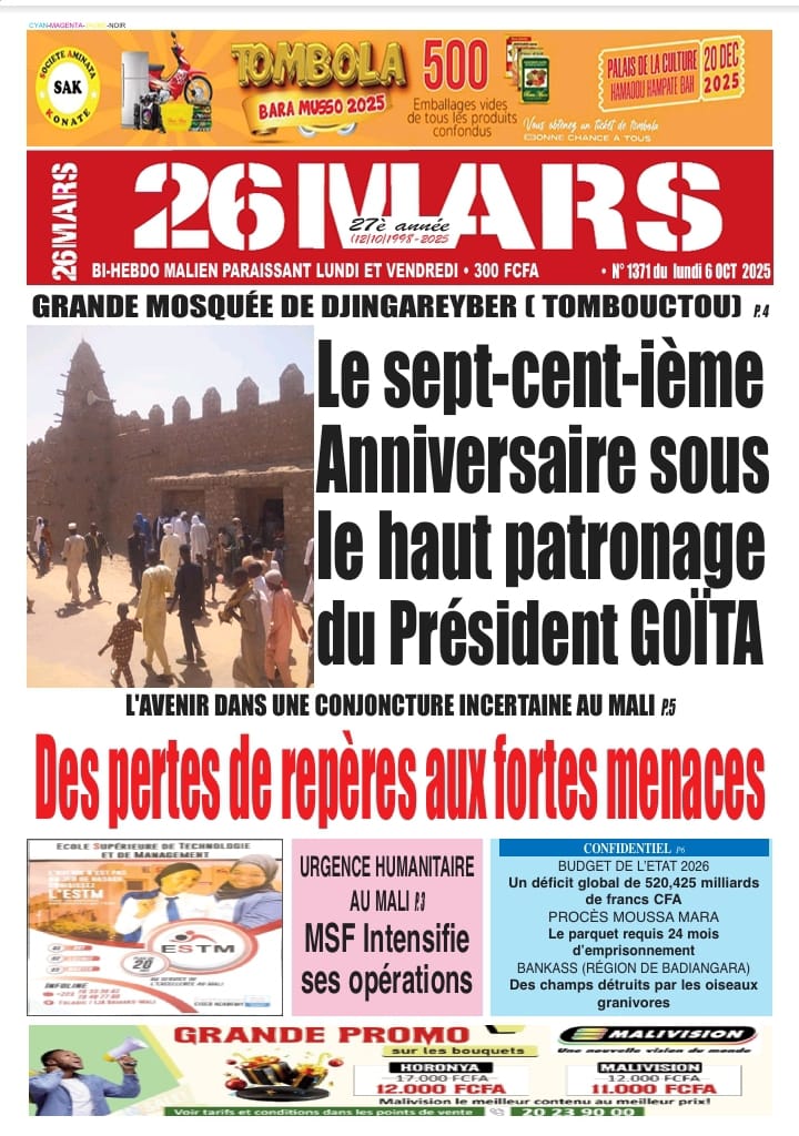 Mali : la revue de presse du lundi 06 octobre 2025